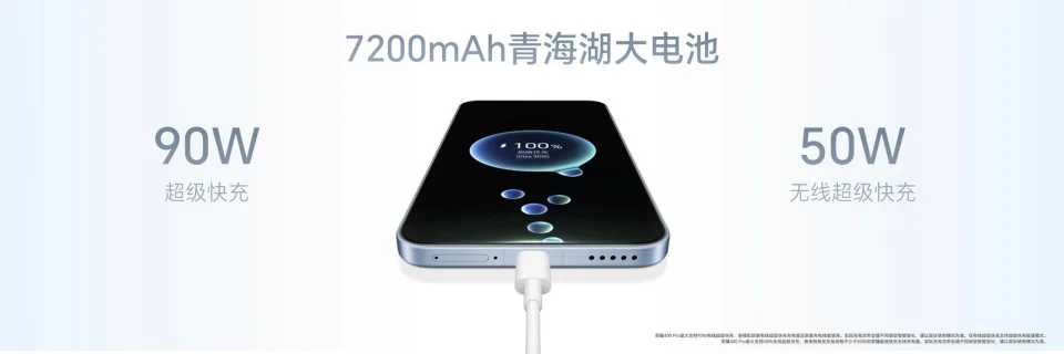在充电方面,荣耀400 Pro提供了90W有线超等快充和50W无线超等快充,荣耀400支持80W有线超等快充。