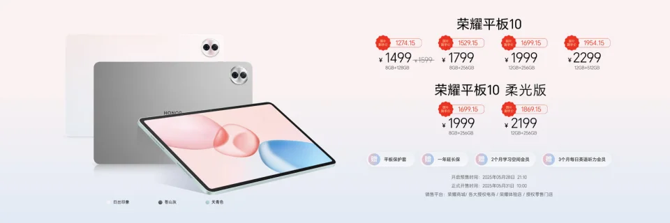 别的,发布会还带来数字系列的平板和全新荣耀手表Fit系列。荣耀平板10通过类纸柔光屏、AI专注眼以及纯净学习空间三大创新,平板秒变学习机,国补得手价1274.15元起,5月31日10:00正式开售。荣耀手表Fit通过期尚浮滑的外观计划、康健能量评估、能量萌宠泡芙24小时陪伴互动以及丰富的AI功能体验,为用户带来“超好玩的能量小圆表”,国补得手价424.15元起,5月28日正式开售。