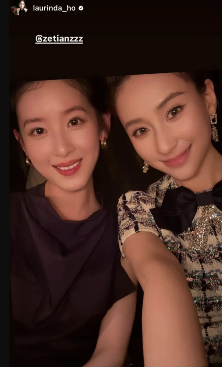 她还和赌王千金何超莲合影了,两个女孩在一起还是很有气质的。