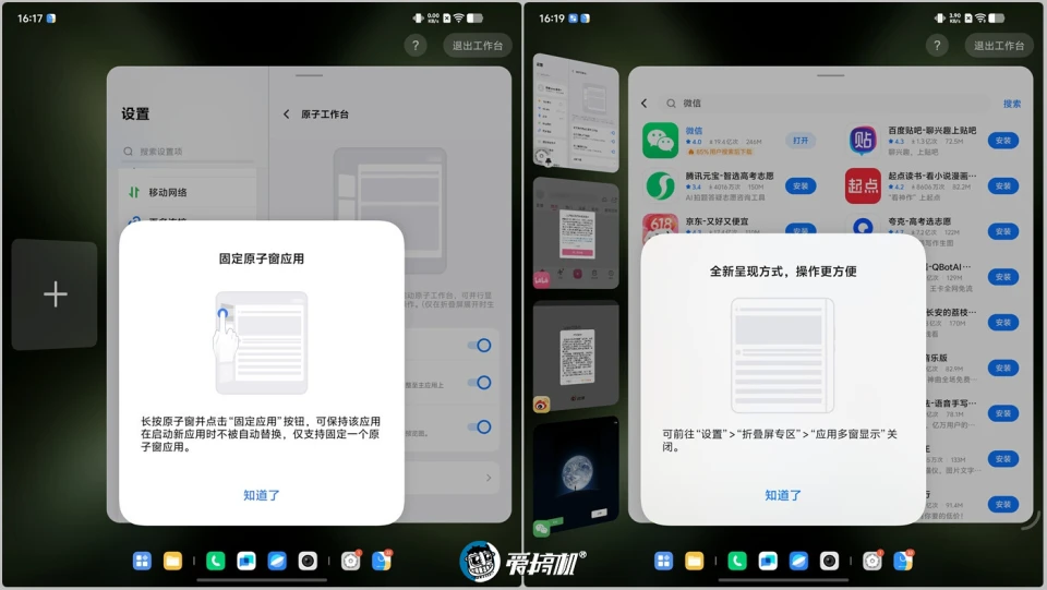 不开打趣,对于重度手机用户来说,这功能比绿厂的假造屏好用,而且5个app也更Geek了(「原子工作台」可以本身决定调理的app个数,1到5个都可以)。