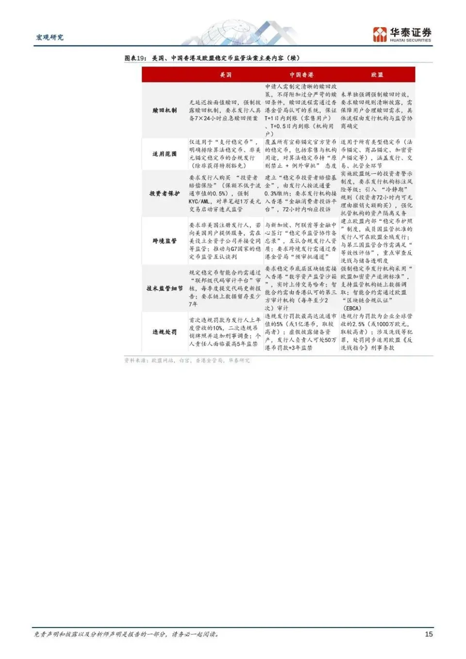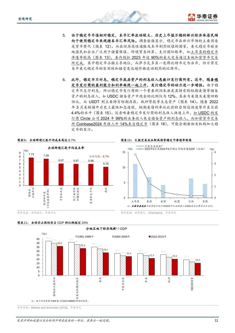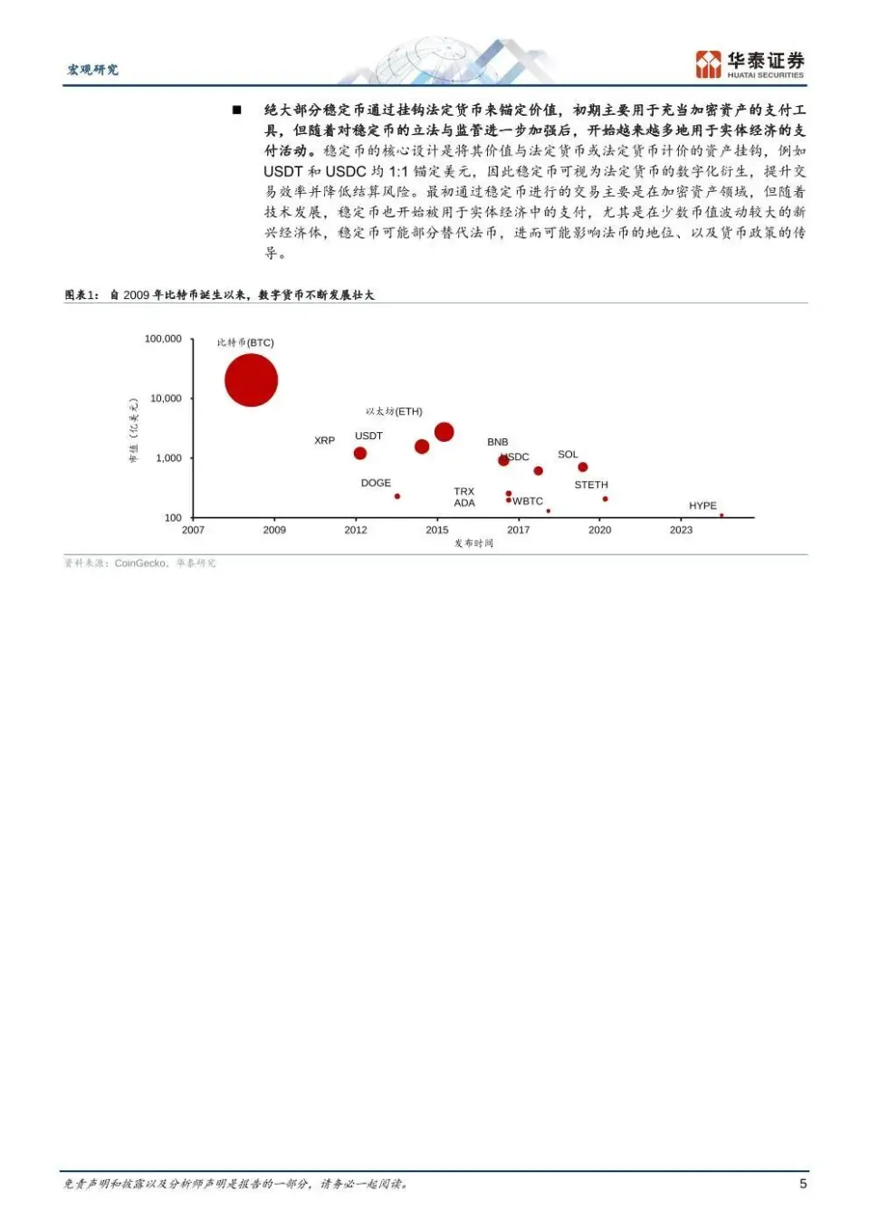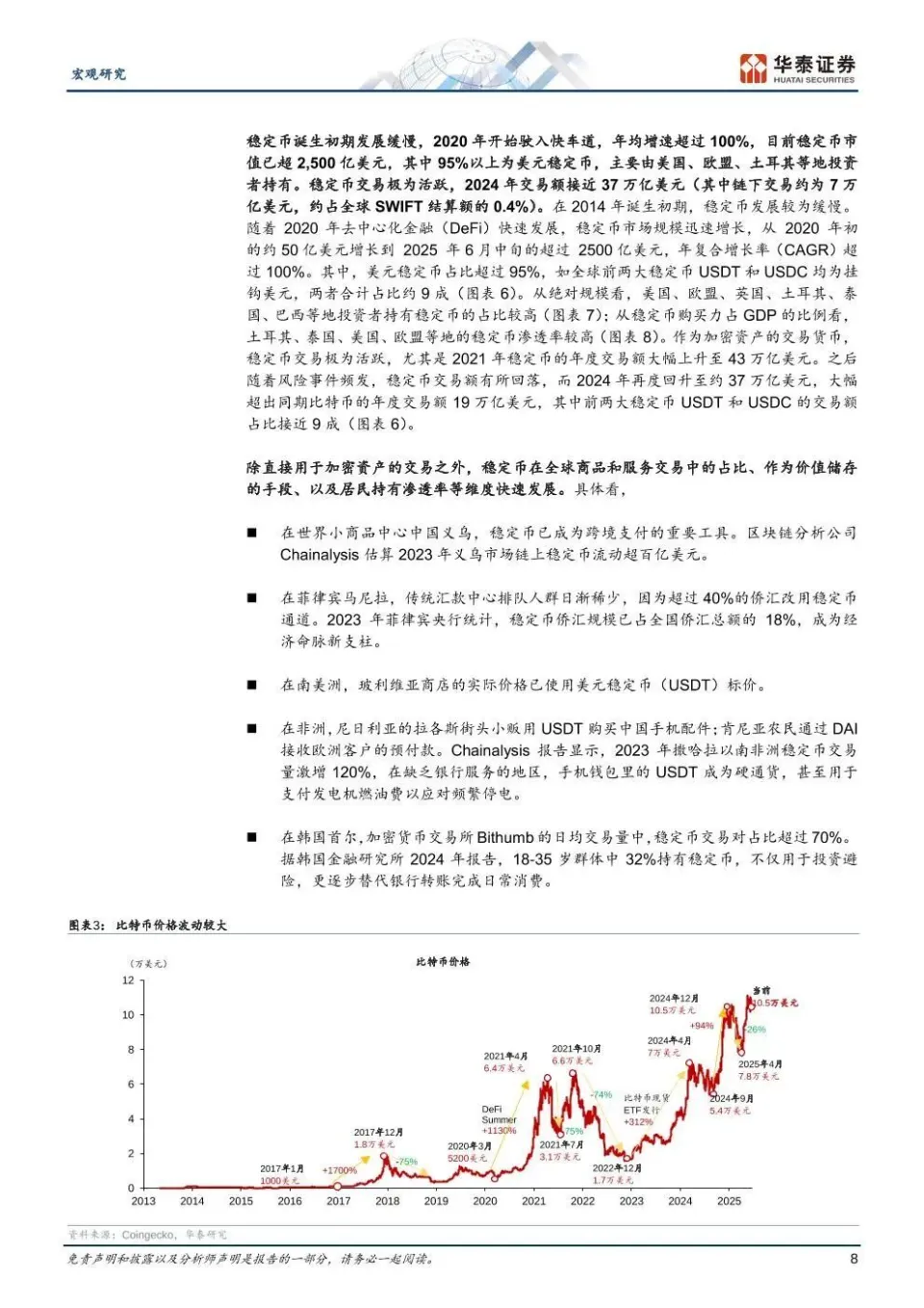 #01# 报告择要 1.稳固币概述 稳固币通过与特定资产或资产组合挂钩来保持稳固代价,介于加密钱币和重要经济体的法币之间。 稳固币具备传统钱币的代价标准、流畅本事和支付本事三大焦点功能,但光荣程度和稳固性相对更弱,如今尚不具备法定钱币的强制流畅性和无穷法偿本事。 2.稳固币发显现状 比年来,稳固币市场规模从2014年的50亿美元增长到2025年6月中旬的凌驾2500亿美元,年复合增长率凌驾100%,交易额靠近37万亿美元。如今,举世95%以上稳固币为美元稳固币,重要由美国、欧盟、土耳其等地投资者持有。 稳固币交易极为活泼,2024年交易额靠近37万亿美元(其中链下交易约为7万亿美元,约占举世SWIFT结算额的0.4%)。 稳固币在跨境支付中的优势日益凸显,在银行体系不发达地域、跨境支付受限地区、非正规经济、以及币值不稳的新兴经济体都有潜伏的增长空间。 3.稳固币快速排泄的原因 稳固币兼具加密钱币的技能优势与传统法币的稳固性,在为加密资产提供交易钱币的同时,也是连接加密资产与传统金融的桥梁。 稳固币支付服从高、尤其在跨境支付中的优势凸显,通过稳固币举行支付时,流程大幅简化,确认时间通常以分钟乃至秒计,且支持7x24小时不中断运行。 稳固币支付无需绑定银行账号,且可以绕开SWIFT体系,在银行体系不发达地域、跨境支付受限地区、非正规经济、以及币值不稳的经济体急速排泄。 比年来,数字钱币、元宇宙等假造经济、以及实体经济中非正规经济的快速发展,给稳固币创造了更多的利用场景。 比年来稳固币发行商的红利本事跟随利率曲线一起上升,其发行稳固币的动力也进一步加强。 4.各国稳固币羁系法案对比 美国和中国香港地域相继推出针对稳固币的全面羁系法案,在稳固币羁系方面具有较强的代表性。 美国的GENIUS法案和中国香港地域的《稳固币条例草案》都针对稳固币的发行准入、运营管理、风险处置处罚的全流程举行全面羁系。 重要相关风险包罗交易、尤其是跨境交易合规性,及肯定程度的兑付风险。 5.稳固币的发展远景和相关风险 稳固币的发展仍大有可为,基准情形下,10年后的市场规模可能到达4万亿美元乃至更高,隐含年度增长到达32%。 稳固币占举世链下结总额的比例在如今约0.4%的基础上有望提拔至3-4%。 然而,稳固币也面对诸多风险,包罗交易合规性羁系、兑付风险、以及缺乏类似存款保障和终极借款人保障的制度安排等。 6.稳固币对举世钱币体系的潜伏影响 当前稳固币并不是严酷意义上、当局认可的狭义钱币。但如果稳固币的储备资产包罗法币现金之外的金融资产、尤其有光荣派生功能的债券资产,如果没有对冲政策,则发行稳固币会推升金融体系总活动性。 稳固币的快速发展将如何影响举世钱币竞争格局? 短期内,美元稳固币发展可能仍占据先机,推动举世部分地域“美元化”。中恒久看,重要币种的稳固币恒久“胜出”的概率较大,其中有“潜力”的币种包罗欧元、日元、英镑、乃至人民币。 7.港币、离岸人民币、以致人民币稳固币的“制胜关键” 香港稳固币立法的落地有望加速港币、离岸人民币、以致人民币稳固币的发展,其中港币稳固币可能率先推出。 做大港币稳固币势须要做大、做深、做“稳”其储备资产池、尤其是港币现金外的资产。 鼎力大举发展跨境业务、数字经济、假造经济,妥当且连续推动人民币国际化,增长稳固币利用场景,是香港稳固币市场乐成的关键。 #02# 报告节选 |