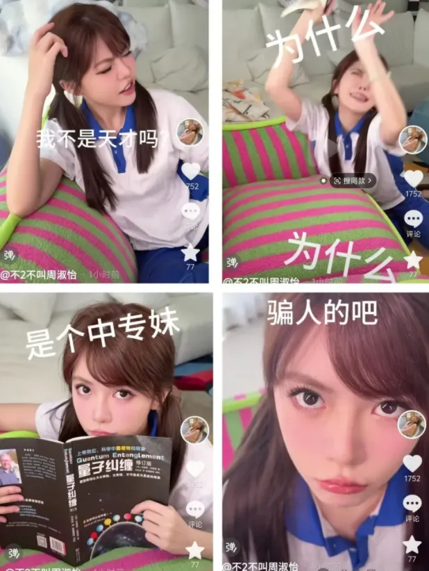 在她最新发布的一条“我不是天才”跟风短视频中,周淑怡稀有地选择了“自黑”路线,视频文案写道:“诶?哄人的吧,我不是天才吗?为什么为什么,是个中专妹!” 这句看似轻松挖苦本身的话语,实际上源于她过去因学历标题饱受非议,有网友以为她在以此方式试图转变公众印象,展示一个更接地气、更“自我挖苦”的人设。