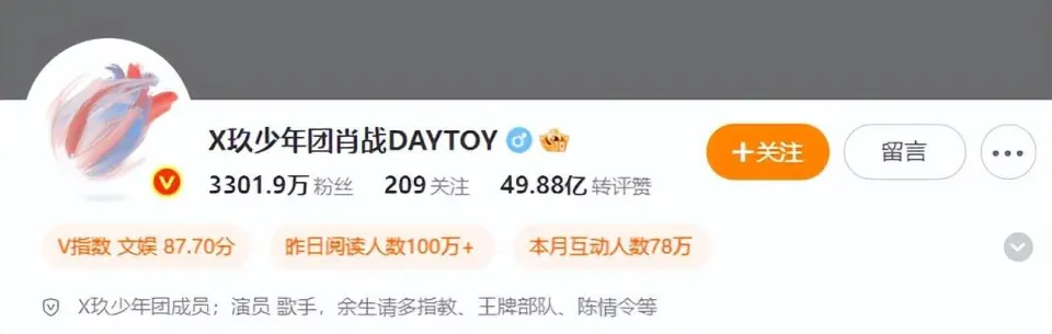 7月18日,演员、歌手肖战微博账号从原名称“X玖少年团肖战DAYTOY”变更为“肖战”,实现个人账号标识的彻底独立。现在该昵称已收效,原ID关联信息全部迁移至新账号。有网友注意到,盛行乐男子演唱组合X玖少年团多位