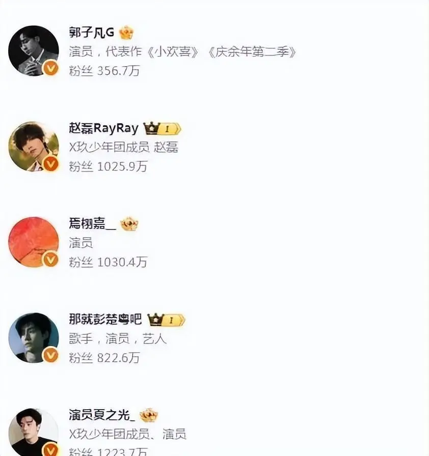 有网友注意到,盛行乐男子演唱组合X玖少年团多位成员一连修改微博昵称,现在@肖战 @赵磊RayRay @演员夏之光_ @那就彭楚粤吧 @伍嘉成 @谷嘉诚 @郭子凡G @焉栩嘉__ 微博名前均已没有“X玖少年团”的前缀。