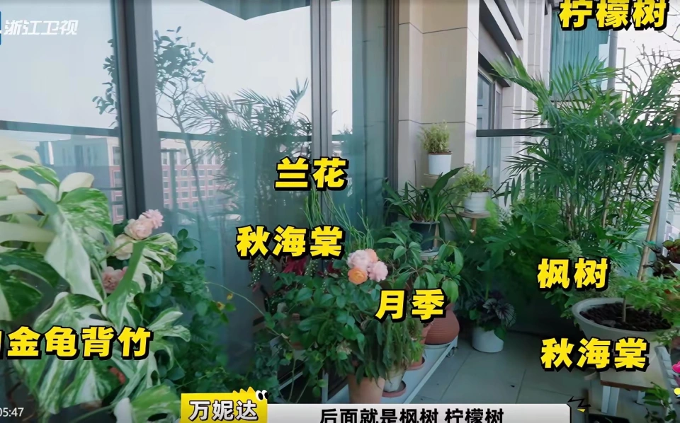 白色的展示柜,放了册本和摆件。阳台上种了枫树和柠檬树,以及各种花花卉草,她每天都会给植物们唱歌。