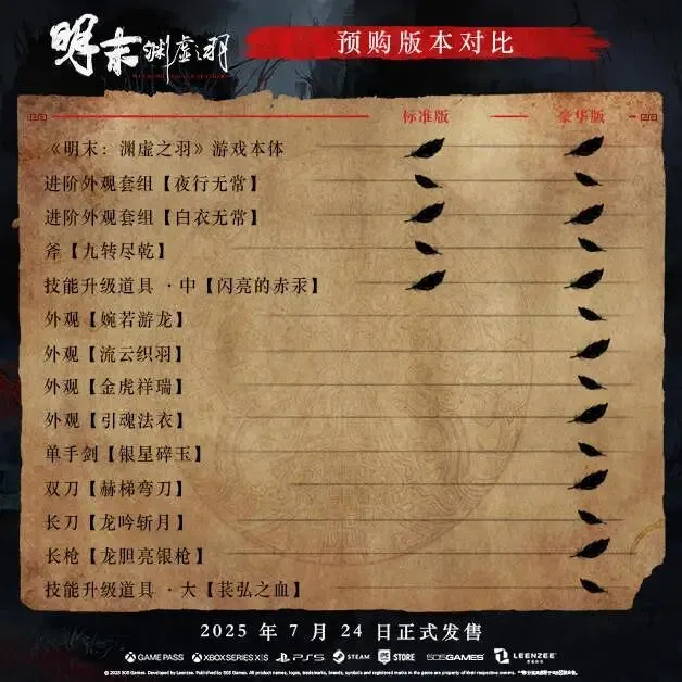 《明末 渊虚之羽》(以下简称 “明末”)作为《黑神话 悟空》(以下简称 “黑猴”)之后又一款高规格国产单机游戏,将于 7 月 24 号上午 10 点正式解锁,登岸 PS5、XSX|S、Epic Games、Steam 平台(NS 独不占),且首发参加微软的 XGP 订阅服务。本期为大家汇总现在明末 PS5 版的告急信息。