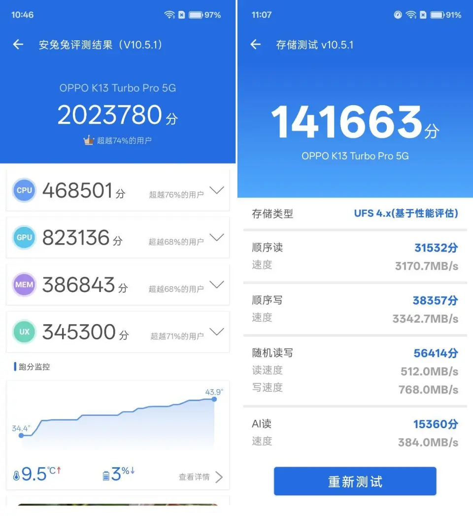 前言 在2025年的如今,险些没有人会质疑一台高性能电脑想要流畅运行,须要风冷等主动散热本领。 但同样在2025年,风冷散热在手机上仍旧是一个“希奇玩意”,每每只有针对游戏玩家,定位颇高的游戏手机,才会为了提高装备在非常工况下的运行稳定性,搭载风扇。 而如今,OPPO成为一众主流大厂中,首个在旗动手机中采用风冷散热技术的厂商,OPPO K13 Turbo Pro也因此而诞生。 作为一款风冷手机,OPPO K13 Turbo Pro在公布之后,就吸引了不少关注,但同时涌现的,也有对风冷散热这一技术的“质疑”。 有部分观点以为,对于手机而言,如许一枚尺寸不大的风扇并不能起到多大的散热作用,反而会平白挤占手机内部空间,影响体验。 那么,对于OPPO K13 Turbo Pro而言,风冷散热毕竟有多少作用?让我们直接通过实测,给出答案。 外貌 在近两年OPPO推出的手机中,OPPO K13 Turbo Pro的外貌计划称得上是“独树一帜”。 从最外层的产物包装开始,OPPO K13 Turbo Pro的视觉计划就在向用户转达“金属”与“呆板”的计划元素。 而以我们拿到的“骑士银”版本为例,手机本体的背板计划也围绕这两个焦点元素睁开。 OPPO K13 Turbo Pro的骑士银版本,在背板上有着多道线条纹理,结合螺丝钉形状的图案细节与银灰色的配色,使其在观感上有着浓重的呆板与科技感。 与此同时,在背板右下角的两条浅蓝色线条装饰,进一步增长了背板视觉上的条理感,并强化了其科技属性。 可以说,固然OPPO K13 Turbo Pro的背板本身并没有升沉布局,但通过独特的纹理计划,赋予了其极强的条理感,与独特的视觉观感。 视线上移,映入眼帘的是OPPO K13 Turbo Pro这款手机最大的卖点,同时也是它最为独特的地方——一枚被嵌在摄像模组中的风扇。 略微凸起的摄像模组,巧妙的为风扇的呆板布局提供了空间,而风扇模组圆形的开孔,也与主摄尺寸持平,形成了同一的视觉观感。 固然,作为“电竞元素”的一部分,OPPO K13 Turbo Pro的这枚风扇,也绝不令人不测的有着一圈RGB光带,可以或许在风冷散热体系开始运转时,同步亮起。 别的,大概已经有读者留意到了,与此前友商运用在手机上的风冷散热体系差别,OPPO K13 Turbo Pro的这枚风扇,本身就负担着进风口的使命。 换言之,它并没有采用左右贯通的风道计划,而是间隔更短的“L”形风道,这一点在从单独拆出的风扇元件中,也可以或许直观看出。 而在布局上,OPPO K13 Turbo Pro的这枚风扇底部直触手机的VC均热板,可以或许直接将均热板的热量吹出,从而提拔手机的散热效率。 假如你以为这套风冷散热的原理眼熟,那我想你应该没有产生错觉—— 是的,OPPO K13 Turbo Pro的风冷散热体系,在导热原理上,与如今条记本电脑的风冷散热较为靠近,只是导热的介质从电脑的导热铜管变成了手机上更常见的VC均热板,并在风扇布局上存在肯定差别。 来到中框部分,OPPO K13 Turbo Pro采用磨砂质感的塑料中框,音量键与关机键均被放置在机身右侧,按键紧实度适中,没有显着的虚位晃动。 同时,在音量键的上方,可以看得手机风冷散热模块的出风口。 来到正面,OPPO K13 Turbo Pro采用一块6.8英寸,1.5K(2800*1200)分辨率的柔性OLED屏幕。 这块屏幕支持120Hz LTPO动态刷新率,以及最高240Hz动态触控采样率,并有着10bit屏幕色深,视觉观感良好。 亮度方面,OPPO K13 Turbo Pro官方标称全局引发亮度1600nit。 总得来说,从OPPO K13 Turbo Pro的外貌计划,我们便不难看出,这款手机无疑是一款对准年轻用户,主打性能与科技感的产物。 性能 就如上文所说,作为OPPO首款风冷散热手机,K13 Turbo Pro最为紧张,也最引人关注的,就是它的性能与散热表现。 OPPO K13 Turbo Pro搭载高通本年发布的骁龙8s Gen4处理器,这颗处理器拥有一颗3.25GHz的X4超等内核,以及七颗A720性能内核。 实测中,OPPO K13 Turbo Pro在安兔兔V10版本中得分2023780分,其中CPU得分468501分,GPU得分823136分,MEM得分386843分,UX得分345300分。 而在存储测试中,OPPO K13 Turbo Pro得分141663分,其中其中顺序读取速率为3170.7MB/s,得分31532分;顺序写入速率为3342.7MB/s,得分383573分;随机读取速率为512MB/s,随机写入速率为768MB/s,得分56414分;AI速率384MB/s,得分15360分。 而在性能实测方面,我们此次仍旧选择《王者光彩》《原神》与《崩坏:星穹铁道》三款游戏,举行30分钟测试。 不外,由于测试期间郑州气温超过40℃,即便有空调,室温也难以低落至原有尺度,此次测试的基准室温只能无奈调解为在27℃(±1℃),相较此前测试略高。 别的,与其他手机测试差别的是,我们将针对开启/关闭风扇,在同样测试环境下,对OPPO K13 Turbo Pro举行两轮游戏实测,以确认其性能开释,是否会受到风冷主动散热的影响。 起首,来看看开启风冷散热后,OPPO K13 Turbo Pro的性能表现。 在《王者光彩》测试中,我们将全部画面选项拉满,举行30分钟5V5对战,模拟玩家一样平常游戏环境。 30分钟《王者光彩》测试竣过后,OPPO K13 Turbo Pro的均匀帧率为120.4帧,1%Low帧为107.1帧,团体帧率表现良好,这也是骁龙8s Gen4这颗处理器的通例表现。 温度方面,测试竣过后,OPPO K13 Turbo Pro正面最高温39.3℃,反面最高温39.8℃,背部发热会合在主板部分,从红外热成像画面中,可以或许清晰看得手机进风口处温度偏低,且中框出风口有显着热流。 在《原神》中,我们将全部画面选项调至高,关闭动态暗昧,于须弥城内举行30分钟跑图测试。 30分钟《原神》测试竣过后,OPPO K13 Turbo Pro的均匀帧率为60.1帧,1%Low帧为46.1帧,游戏全程没