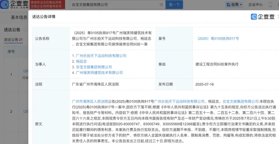 克日,企查查APP表现,广州市海珠区人民法院向合宝文娱团体有限公司、广州乐拍天下运动科技有限公司及杨某某公告送达实行通知书、陈诉产业令等质料,要求五日内向法院书面陈诉现有产业及近一年产业变动情况。案件流程信息表现,本年5月,上述公司及自然人已因此案被规复实行48万余元。合宝文娱团体有限公司建立于2015年,由赵薇等共同持股,此中赵薇持股约4.5%。 此前,2024年4月11日,赵薇名下部分所持股权被冻结,冻结股权标的企业为合宝文娱团体有限公司,被冻结股权金额为500万元人民币。 赵薇名下存在多条股权冻结,冻结股权标的企业涉及芜湖东润发投资有限责任公司、西藏龙薇文化传媒有限公司等,合计金额超千万元。企查查APP表现,赵薇担任的3家公司法定代表人,此中仅赵赵(上海)影视文化工作室一家存续,别的两家已吊销、注销。同年11月,赵薇、西藏龙薇文化传媒有限公司、祥源文旅(600576)新增一则被实行人信息,实行标的8488元,实行法院为浙江省杭州市中级人民法院。别的,上述两公司还被欺压实行5689元。 公开资料表现:赵薇(Vicki Zhao),1976年3月12日出生于安徽省芜湖市,中国内地影视女演员、歌手、导演、监制,毕业于北京影戏学院演出系,并取得北京影戏学院导演系硕士学位。 来源:江苏消息、南昌晚报、企查查 (来源:江苏消息、南昌晚报、企查查) 更多精彩资讯请在应用市场下载“极目消息”客户端,未经授权请勿转载,接待提供消息线索,一经采取即付报酬。24小时报料热线027-86777777。 |