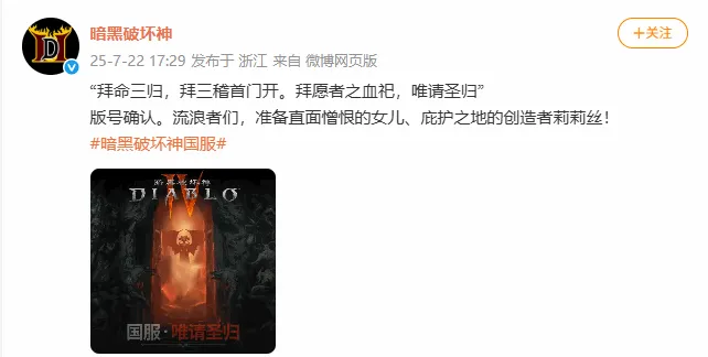 本日2025年入口网络游戏审批信息公布,《暗黑粉碎神4》过审。 《暗黑粉碎神》官方微博发布动态,预热未来上线的国服。“拜命三归,拜三稽首门开。拜愿者之血祀,唯请圣归”版号确认。流离者们,准备直面悔恨的女儿、保护之地的创造者莉莉丝! |