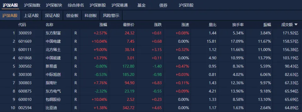 7月24日,市场全天震荡走高,三大指数均再创年内新高,沪指收盘报3605.73点。停止收盘,沪指涨0.65%,深成指涨1.21%,创业板指涨1.5%。 盘面上,市场热门较为紊乱,个股涨多跌少,全市场超4300只个股上涨。从板块来看: 海南自贸区概念股团体爆发,海南机场等20余股涨停。 稀土永磁概念股再度大涨,广晟有色涨停。 超级水电概念股探底回升,中国电建等多股涨停。 沪深两市全天成交额1.84万亿,较上个交易业务日缩量199亿。个股方面,东方财富全天成交额近172亿元居首,中国电建、北方稀土、中国能建的成交额均在100亿元以上。 |