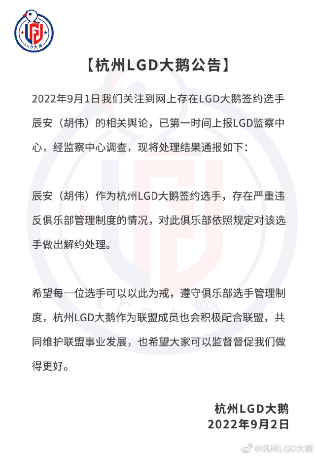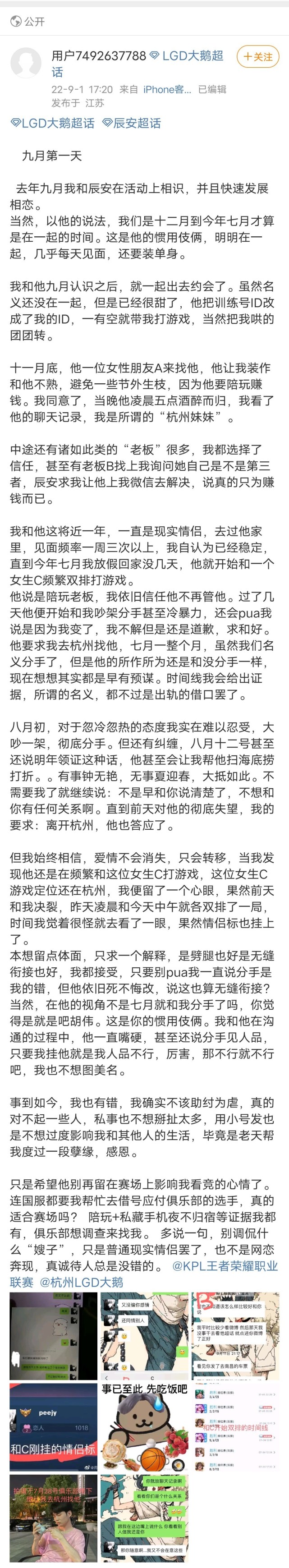 昨日有网友在杭州LGD大鹅超话中发布长文控诉LGD大鹅选手辰安Pua女朋侪,热恋期间冒充只身,在职期间当陪玩赢利,后续冷暴力无缝衔接陪玩老板。对此杭州LGD大鹅俱乐部发布辰安选手处置惩罚结果:辰安存在严肃违背俱乐部管理制度的情况,对此俱乐部依照规定对该选手做出解约处置惩罚。 舆论变乱从9月1日开始渐渐发酵,但着实流传范围并没有太广。而LGD俱乐部在第一时间就上报了监察中央,随后在9月2日也发布了关于辰安选手的处置惩罚结果。LGD俱乐部以辰安存在严肃违法俱乐部管理制度的情况,依照规定对该选手做出相识约的处置惩罚。着实一开始看到辰安的嫂子变乱,本以为LGD俱乐部会冷处置惩罚大概扣除选手一两月的工资,但是没想到末了会直接迎来了一个解约处置惩罚。信任看到这个结果,观众们都是大吃一惊吧。 从爆料来看,辰安的私生存也有庞大题目,以致PUA女友。而之以是违背俱乐部的规定,那就是代练和陪玩的缘故。辰安固然从EDG.M战队来到LGD俱乐部,但是职业生存中首发的日子寥寥无几,大多数时间都是坐在替补席上。以是在这种情况之下,大概辰安以为陪玩的收入更高吧,终极触及了LGD俱乐部的红线。固然说KPL似乎没有说职业不能陪玩,但是俱乐部都有自己的规定,以是在没有服从要求的情况下,遭到俱乐部处罚也是情理之中。但着实只能怪辰安力气不敷,对于LGD而言没有使用代价,要否则多少也会保一保的,也不会这么快直接处置惩罚而且解约。 固然说LGD辰安被开除,观众们除了大吃一惊以外,心中也不会有多少波涛,究竟只是替补选手,说一句无人在意都丝绝不为过。而辰安被解约,着实也执偾KPL第二位被开除的选手,此中第一位至少在名气上逾越辰安,而他就是曾经JC(现DYG俱乐部)的边路选手倾城。倾城被JC俱乐部开除同样也是违背了俱乐部的规定,但是后续倾城的发文,也让这件变乱有了一些争气,也有网友以为这是卸磨杀驴,究竟力气不在之后,俱乐部也不想白养一个闲人。但是从结果上来看,KPL已经有两位选手遭到俱乐部开除。而且陪同着竞圈的嫂子变乱愈演愈烈,感觉第三位选手也不远了。 |