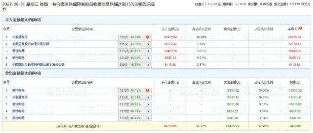 中国经济网北京8月31日讯 固德威(688390.SH)停止本日收盘报312.00元,跌幅20.00%。 龙虎榜数据表现,买入固德威金额最大的前五名中,有2家机构专用席位;卖出固德威金额最大的前五名中,有4家机构专用席位。经统计,固德威的机构席位卖出净额为28502.81万元。 |