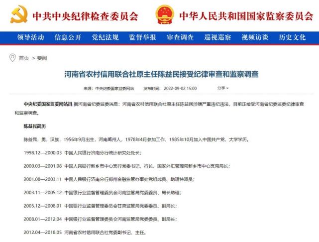 中国经济周刊—经济网讯又是周五。据中纪委网站消息,河南省纪委监委消息称,河南省农村名誉团结社原主任陈益民涉嫌严肃违纪违法,如今正继承河南省纪委监委规律检察和监察观察。 近期,河南严肃彻查违背金融政策大搞权钱交易业务的腐败分子,7月尾至今,河南金融体系已有多名干部于周五被公布继承检察观察。7月29日,中国银保监会河南羁系局非银二到处长郭琴、开封羁系分局局长夏军,中国人民银行郑州中心支行金融稳固到处长赵德旺被查;8月5日,省农信联社原副主任关奇峰、中国银保监会信阳羁系分局二级巡视员王献军被查;8月12日,中国银保监会河南羁系局政策法规到处长蒋红华,案件稽查处副处长杜其文被查;8月19日,河南省政协常委、民族和宗教委员会副主任王勇…… 此中多人任职银保监体系,涉及河南羁系局、信阳羁系分局、开封羁系分局,以及中国人民银行郑州中心支行、农村名誉团结社等单元。除落马时间相似,他们的履历也多有交集,除多在金融羁系体系长期任职外,他们之中的多人均涉及农村金融范畴。 《中国经济周刊》记者查询河南纪委监委网站发现,2022年初至今,共有13名金融体系官员落马;而在2021年、2020年和2019年一连3年,河南金融体系无官员落马信息。 陈益民简历 陈益民,男,汉族,1956年9月出生,河南禹州人,1978年4月到场工作,1985年10月参加中国共产党,大学学历。 1998.12—2000.03 中国人民银行济南分行统计研究到处长; 2000.03—2001.08 中国人民银行新乡市中心支行党委书记、行长、国家外汇管理局新乡市中心支局局长; 2001.08—2003.11 中国人民银行济南分行郑州金融羁系服务处党构成员、助理特派员; 2003.11—2005.12 中国银行业监视管理委员会河南羁系局党委委员、局长助理; 2005.12—2008.01 中国银行业监视管理委员会甘肃羁系局党委委员、副局长; 2008.01—2012.04 中国银行业监视管理委员会河南羁系局党委委员、副局长; 2012.04—2018.05 河南省农村名誉团结社党委副书记、主任。 新媒体编辑:崔晓萌 一审:崔晓萌 二审:何颖曦 三审:周琦 |