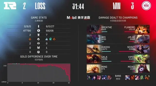 2022年9月2日,S12地区选拔赛LPL赛区第一轮,EDG对阵RNG,前四场比赛双方战成2比2平,EDG在启用Jiejie后连下两城,圣枪哥的发挥成为了EDG在绝境中将比赛拖入决胜局的关键,个人也是连续两场比赛劳绩MVP。 第一局:LPL冒泡赛:呼吸哥武器无敌单带 RNG碾压复仇EDG拿下首局 第二局:LPL冒泡赛:虎掌门岩雀一抬三带队翻盘!RNG再胜EDG拿到赛点 第三局:LPL冒泡赛:圣枪哥抗压乐成Jiejie临危救主EDG力克RNG扳回一城 第四局:LPL冒泡赛:圣枪哥二连MVP!EDG逆转7K经济掉队翻盘RNG! 决胜局BP: 最大的看点在于EDG为了保双人组和打野的优先级第二轮才给Scout出中单点出了妖姬,也是当前版本不太常见的选择,更多的是自己玩的选择,双C机动性拉满,但要说又什么联动之类的根本没有。末了一手上单的选择,圣枪哥也是顶着剑魔出纳尔,确实是反向Counter了。 比赛阶段: 前期节奏双方打得相当安稳,第一轮资源RNG拿到先锋,EDG则是拿到小龙。一血不停到15分半才发作,EDG双TP断后拿到轮子妈一血,顺势收下小龙,RNG则是交换到二先锋。 21分半小龙团,Jiejie波比大招锤走RNG野辅,资助EDG顺遂收下听牌火龙。双方的阵容确实决定了确实是比力难打得起团战,EDG双C相当机动,尚有波比保排,RNG这边的先手也不敷硬,没有泰坦蔚如许的锁头机制。 27分钟小龙团,RNG依靠上野在龙坑内的肉搏硬是抢下了小龙,断掉EDG的龙魂节奏,给自己阵容夺取到了发育时间,不外剑魔照旧被波比壁咚留下人头。 29分钟,双方夺取大龙坑附近视野,Scout妖姬先手打残沙皇,正面RNG的前排顶不住伤害女坦白先阵亡,泽丽出场后完成收割,EDG完成0换3的完胜,顺势收下大龙,经济差敏捷被拉开到7K。 30分半,双方夺取小龙区视野,又是Scout的妖姬负担了开团任务,链子留住剑魔共同泽丽长途的W技能率先打出击杀,EDG顺势完成追击打出一波0换3的完胜,顺势一波竣事了比赛,完成让2追3!成为LPL赛区的三号种子进入S12天下赛! 赛后数据,Scout妖姬打出了全场最高的输出,而且还负担起了开团的重任。 |