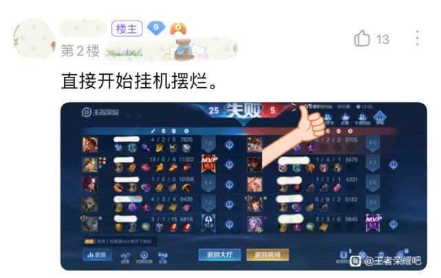 媒介: 各位小搭档各人好,这里是不光游戏打得6,长得还很帅的熊猫哥哥~ 如今,越来越多玩家都在吐槽的一点,就是王者光彩的游戏情况越来越差,尤其是野队排位! 很多玩家由于一点鸡毛蒜皮的小事,就开始吵架,摆烂故意不让队友赢。 这几天就有一个玩家体现,打排位赛时,碰到一个“网络公主”,不预选也不说自己想玩什么。 然而队友禁了貂蝉后,立马开始犯公主病,直接当演员摆烂。到底怎么回事?快来和熊猫哥哥一起相识一下! 玩家打排位赛碰到网络公主,因选好汉发生辩说后直接摆烂 这位玩家体现,自己单排打排位赛,进入预选好汉界面时,某队友不说自己要玩什么好汉,也完全没有发言沟通。 由于在五楼必要禁用好汉,该玩家按自己的想法来禁用了貂蝉。 然而刚禁用完,就有一个队友炸了锅,说要重开,体现“看到五楼就恶心”。 这个队友之以是喷该玩家恶心,来由也很奇葩,正是由于该玩家禁用了她想玩的貂蝉。 对此,该玩家体现无语至极,由于这个队友没说自己想玩什么,也没沟通过,自己根本不知道她想玩貂蝉,妥妥的网络公主。 两人发生辩说之后,这队友选了一个重复的射手位:公孙离,全局摆烂挂机,打出的战绩很辣眼睛。 对局竣事以后,该玩家举报了这名队友,扣分乐成,但仍旧以为很不解气,碰到如许的事故还真是太无语! 吃瓜群众:匹配到网络公主太可骇了,玩个游戏还得学会读心术 看完该玩家发出来的纪录,吃瓜群众们纷纷体现,如许的网络公主队友太令人无语,想玩什么又不说,被禁了就摆烂,岂非还真要学会读心术才气玩游戏了? 像如许反面队友沟通的举动,引起了路人们的反感,纷纷体现:这就是网络公主吗? 不得不说,假如有想玩的好汉,最好是进入选好汉界面就开始沟通,一声不吭的,别人也不大概知道你想玩什么! 王者摆烂的玩家着实是太多,因选好汉发生辩说已经不是怪事 路人们还说道,看起来很离谱,但如许的队友着实还不少,自己也曾碰到过。 同一的特点:选好汉时不吭声,不沟通,等别人选完了突然发公主病,要么乱选要么摆烂。 着实撞位置这码事还真的是常见,假如遇上了,最好是多沟通,宁静办理,一言不合就骂街、摆烂,还真是搞心态。 只能说,林子大了什么鸟都有,风俗就好,气愤只能气坏自己。假如碰到摆烂的,直接屏蔽+举报,不消过多盘算。 熊猫有话说: 熊猫哥哥以为,假如有非玩不可的好汉,最好是一进去就直接表明,否则各人都是不期而遇,没人知道谁想玩什么。 尤其是在路人局中,沟通黑白常须要!假如不沟通,还选不到想玩的好汉就摆烂,那可真是不讲原理! 好了小搭档们,对于上述事故,你有什么不一样的看法呢?欢迎来品评区留言讨论,大概你有别的故事也可以私信告诉熊猫哥哥噢,爱你萌,比心~ |