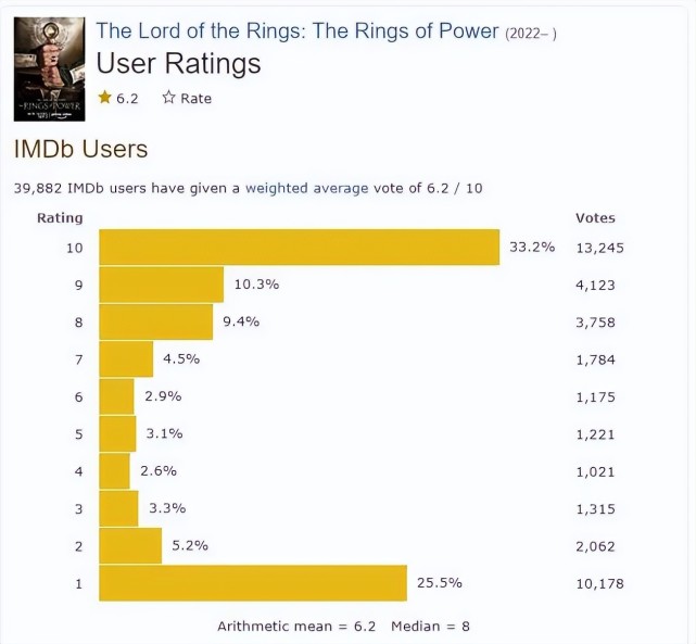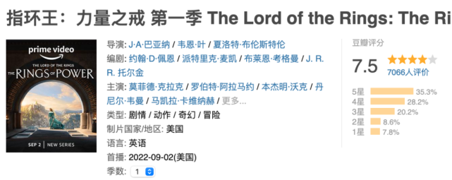 中土大陆,又返来了。 《指环王》系列,21世纪第一神作。 这回由亚马逊斥巨资拍摄剧版,光版权费就花掉2.5亿美元。 第一季共8集,制作经费高达4.6亿美元(约31.8亿人民币)。 毫无疑问,这绝对是本年最值得等候的史诗奇幻大戏。 然而,本剧近来刚一上线,就遭到了无数吐槽。 豆瓣7.5,相称不尽人意。 要知道,观众可都是冲着神作去的。 国外口碑,则南北极化非常严峻。 IMDB,直接出现C形。 亚马逊流媒体平台上,该剧的品评区以致迟迟未开放表现。 各人推测,是被喷怕了,直接关评。 到底怎么了? 鱼叔本日就来聊聊它—— 《指环王:气力之戒》 The Lord of the Rings: The Rings of Power 在无数民气中,《指环王》系列是近乎美满的。 爱上这部雄伟史诗,可以有多种打开方式。 起首是无与伦比的视觉异景。 总有一副极致的画面,击中你的心。 有人是从一开始,霍比屯的故乡画卷。 有人是在影戏中段,精灵王国的震撼浮现。 另有人偏幸故事的高潮,气吞山河、动民气魄的万军征战。 固然,除了局面称奇,片中的各个人物也叫人终身难忘。 俊朗飘逸的莱戈拉斯一登场,俘获了多少迷妹。 集刚勇聪明于一身的人皇阿拉贡,感染了多少男儿。 另有优雅美丽又充满风格气派的精灵公主。 聪明、慈祥,又充满安全感的巫师甘道夫。 鸠拙、固执,却充满公理感的大胡子矮人。 以及,体态矮小又灵活乐观,继承大任的霍比特四人组。 影戏紧张以护戒小队为视角,为我们拉开这个奇幻大陆的漫长旅程。 为了扑灭魔君索隆的至尊魔戒,各大种族空前地团结起来。 挑选出数位身怀特技的勇将,护送持戒的霍比特人踏上征程。 这便开启了《指环王》三部曲的紧张故事。 之后,又拍了《霍比特人》三部曲。 报告与魔戒干系的更早一段汗青:孤山屠龙+五军之战。 六部影戏,依然还是不敷看的。 于是,空前投资的剧版开拍了。 故事的期间更早。 还记得影戏三部曲的开篇那场「末了的同盟大战」吗? 魔君索隆依赖一枚魔戒,大杀四方无人可挡。 然而,他的手指被不测砍断,丢失了魔戒。 终极败北失去肉身。 这枚魔戒,是20枚「气力之戒 」中至高无上的一枚。 苍穹下,精灵众王得其三。 石殿中,矮人诸侯得其七。 尘凡间,必死凡人得其九。 魔多翳影,王座乌沉,暗中魔君执其尊。 索隆通过诱骗精灵,传授其武艺,令其铸造了19枚气力之戒。 而他自己则藏于魔山中,偷偷铸成了另一枚至尊魔戒。 他计划利用这些「气力之戒 」控制三族,将整个中土收入囊中。 剧版的焦点剧情,就是关于这 20 枚戒指的铸造、索隆的崛起和覆灭。 并显现了各大种族之间的明枪暗箭,从而引发中土的风起云涌。 剧方在视觉殊效方面,简直下了狠功夫。 宛若瑶池的精灵王国。 鬼斧神工的矮人矿洞。 30亿的真金白银,都出如今了屏幕上。 而剧集终极,更是拉满等候值。 在影戏中,「末了同盟大战」仅以旁白的情势一掠而过。 而电视剧《气力之戒》的收尾,则无缝衔接了影戏三部曲的开头。 大概在剧会集,这场史诗大战将得到完备的出现。 《气力之戒》一上线,就成为了万众瞩目的焦点。 然而,云云大的阵容,如今却遭到了如潮的差评。 首当其冲的,便是选角。 审美降级,一度登上了热搜。 好比,本剧的主角之一,埃尔隆德。 他是精灵族的首脑,也是抗击魔君索隆的关键人物。 影戏版中,气力演员雨果·维文美满地解释了这一人物形象。 而在本剧中,埃尔隆德则负担了帮忙铸造「气力之戒」的重任。 然而,他一出场便让观众傻了眼。 有没有首脑气质,临时岂论。 光是一张脸,就着实让人出戏。 同样被降级的,另有精灵至高王,吉尔·加拉德。 精灵的脸,应该修长立体,要仙儿,要灵儿。 而这位大叔,把雷区全踩了。 圆润平展,完全没有精灵的气质。 倒是碰瓷了达芬奇的名画。 还是看看瑟兰迪尔,洗洗眼睛吧。 同样被诟病的,另有无处不在的政治精确。 剧中,被「硬塞」进了不少黑人脚色。 以致,还穿插了一条原创的感情线。 黑人精灵爱上白人姑娘。 黑夜中,他弯弓搭箭,奇妙地融入夜色。 假如不调高屏幕亮度,还真有点费眼力。 真·暗夜精灵。 相比之下,矮人脚色的形象还算是还原。 好比都林四世王子,就很有影戏版的味道。 然而,镜头转向他的老婆,又不短冖了。 固然,观众之以是愤怒,也并非出于单纯的审美。 《指环王》脱胎于欧洲文化,这本就是一个白人间界的故事。 假如文化配景不被恭敬,那么根基也就不稳了。 魔改,自然也绝不不测。 此中,主角加拉德瑞尔,可谓履历了回炉重造。 原著与影戏版中,她是最具聪明与本事的精灵。 在「大魔王」凯特·布兰切特的演绎下,她冷艳优雅,宛若天人。 究竟有大魔王珠玉在前,观众对新晋演出者的要求倒也不算苛刻。 剧版的加拉德瑞尔,也劳绩了不少好评。 她身着一身坚固的铠甲,英气十足。 但,画皮难画骨。 脚本的硬伤,让人物的形象趋于单薄。 她被塑造成了精灵族中的孤勇者。 幼年时,中土发生了「愤怒之战」。 魔君魔苟斯,在精灵族联军的围攻下溃败。 然而,他尚有残存的部下。 妖师索隆,带领残党退回了老巢魔多。 精灵族在上千年的探求后,仍不知其踪。 但,时间冲淡了族人的鉴戒。 险些全部人都以为,魔君已被打败,刻意拥抱平静年代。 唯独加拉德瑞尔始终坚信,索隆仍然存活着。 因此,她不停超过中土大陆,对峙不懈地追寻。 这本该是一个心怀天下,有预见远谋的人物