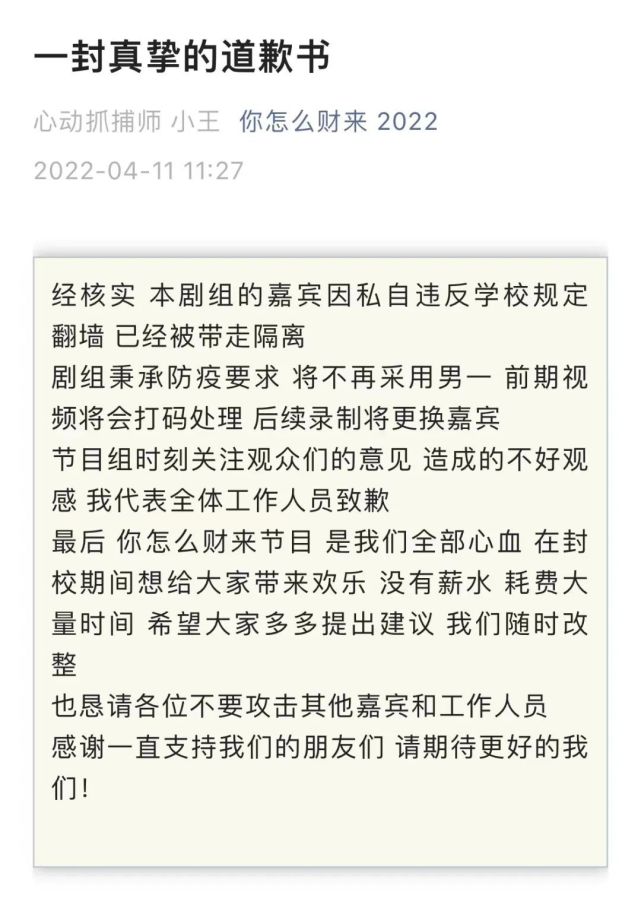 内娱的恋综越拍越多,观众的满意度却在逐年走低。 平台自制恋综陷入了高朋的“怪圈”:高朋登上节目就能成为“明星”,分分合合也能占满热搜榜单。于是越来越多的高朋把这类节目当作造星的跳板,而非谈一场让认真的爱情。 大众的号令声愈演愈烈:我们要看素人认真甜蜜的爱情,不要看网红的演出! 那里有最多纯素人的甜蜜爱情?答案是大学校园。据不完全统计,已经有高出20所高校的弟子团队推出了校内自制恋综,尚有不少仍在拍摄之中。 在“早恋”的闸口放开之后,升上大学的年轻人们拥有了充足多感受爱情甜蜜的时机。而对比平台自制的恋综,大弟子们的爱情没有太多极重的现真话题,更多的是在这个乌托邦的情况里,制造出充足甜蜜的心动时间。 高朋牵手乐成朋侪圈,由受访者供图 毒眸(ID:DomoreDumou)找到了华中科技大学《我想和你在一起》、浙江传媒学院《逐步喜欢你》、东北财经大学《你怎么财来》三档高校恋综的主创团队,和他们聊了聊做恋综的故事与劳绩。 高校恋综,也得拉赞助 在与我们对话的三所学校中,各人拍摄恋综的因由各不雷同。 华科拍摄恋综是为了完成学校摆设的大作业;浙传是主创地点社团cuXz自发构造的社团运动;东财则是在学校封闭两个多月后,主创团队为了给同砚们的校园生存增长一些爱好,而自发构造的拍摄。 《你怎么财来》剧照 浙传《逐步喜欢你》的监制何丁然告诉毒眸,节目主创们来自学校一个名为cuXz的社团,该社团通常里负责采访校表里一些着名士士,给同砚们分享可用履历,也负担一部分学校的宣传工作。“这次恋综拍摄就是社团成员发起的,相称于我们构造的社团运动。” 浙传作为向影视圈运送台前幕后人才的基地之一,大部分主创都曾在影戏、综艺剧组练习过,认识工业化的制作流程,以是在筹办《逐步喜欢你》时,团队的设置根本是向专业综艺节目组看齐的,导演组、编剧组、摄像组、宣传组等应有尽有,因此《逐步喜欢你》的拍摄团队也是三档节目中最巨大的。 除了社团内的核心成员,团队还在全校范围内举行了招募。“我们险些吸取了校区内的各个专业的弟子,好比影戏制作、影视演出,尚有文学院,文化创意与管理学院等等专业,终极组建了一支70人的队伍。” 与《逐步喜欢你》剧组人数形成光显对比的是华科《我想和你在一起》剧组。“我们拍摄恋综告急是为了完成系里摆设的小组大作业,以是从前期到后期都是我们5人完成的。”出品人肖司雨告诉毒眸。 《我想和你在一起》拍摄操持安排 此中唯一和传媒毫无交集的东财,主创成员大多来自于财经类专业。“《你怎么财来》整个团队有30-35个人,大概分为脚本、平面、宣发、后期、场务、摄像6个组。”只管相比于其他院校,东财的团队没有担当过传媒专业干系的练习,“但拍摄组的同砚根原来自于各学院的新媒体部分,过往都负责过学校的微影戏拍摄、剪辑,大概一些平面类的拍摄,以及学校公众号的运营,多少有一些干系履历。” 搭好了台子,接下来三所学校遇到了同样的标题。众所周知,现在的综艺市场,最难的标题莫过于招商,而校园恋综也同样面临着这个标题。 《你怎么财来》的星回坦言,“毕竟各人都是弟子党,假如让同砚们自己出钱‘为爱发电’的话也不太现实。”因此,拉赞助成了三档节目标主创们不谋而合的选择。但拉赞助又面临着新的困难,“你去跟别人谈,人家很难信赖一个弟子团队,怎么做出如许的节目?再加上我们团队已往也没有做出什么有流量的作品,以是对方确实很难信赖你。”《逐步喜欢你》的总制片李沁宜以为,怎样让赞助方信赖团队的本领,是拉赞助最难的地方。 但幸亏,同校的师生大多都乐意伸出援手,为节目组提供园地或职员上的支持。《我想和你在一起》剧组说服了学校咖啡厅,提供了园地赞助。“我们没有去拉什么资金赞助,但和学校咖啡厅谈下了免费的拍摄园地。咖啡厅是弟子谋划的,我之前做过那边的市场主管,我们就去和对方谈免费使用,毕竟这也是一个宣传方式,对方也很乐意我们拍。”肖司雨追念。 《我想和你在一起》拍摄现场 而《你怎么财来》剧组和《逐步喜欢你》剧组,都拉到了数额不等的资金赞助。 《你怎么财来》剧组主创曾有社团和弟子会工作的干系履历:“我就接洽了一个比力认识的教导机构品牌,拿着相助方案去跟对方谈。好比我们一期必要多少钱,一共必要几期,而且告知对方不涉及商用,末了拿到了靠近2000块钱,刚好够覆盖拍摄本钱,末了尚有一点点余额请各人喝个奶茶。” 作为财经类专业的学子,东财团队的本钱控制恰当,假如平移到现在的综艺市场,他们大噶?鲱受“金主爸爸”接待的那种团队。 《逐步喜欢你》团队就没有这么好运了,剧组拉到了一个服装品牌做总赞助商。“是导演彭慧前期不停在和对方做沟通,终极说服了对方,给我们提供了近1万的资金,别的尚有一些品牌的小额赞助。”李沁宜告诉我们,因剧组人数巨大,摄制规格也更高,赞助还是不敷以覆盖本钱,“前期真的黑白常困难,到之后我们根本上都是在垫钱。” 不但会翻车,还会翻墙 节目拍摄的困难,从选人的那一刻开始。 三个主创团队的选角都是通过做招募海报、发放问卷的情势。平台恋综提供了“海选”问卷的样本,主创们略加修改,等候意向者上门,内部筛选“简历”,再对剩下的高朋做一对一的