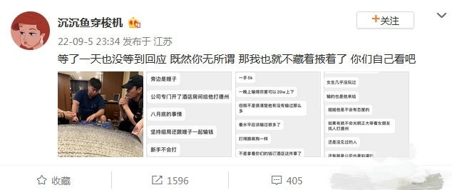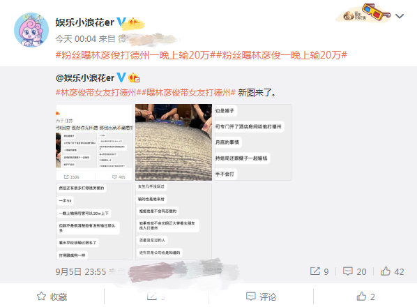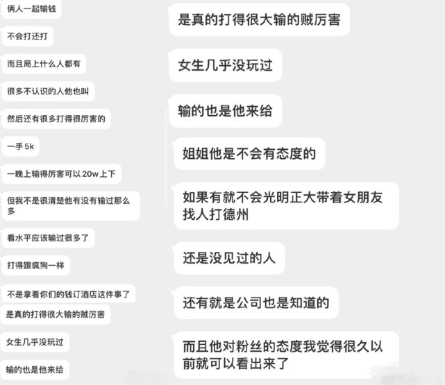 9月6日破晓,林彦俊终于发声回应,他称本身现在是只身,因没处置惩罚好个人关系向各人致歉。 9月5日,林彦俊的恋情瓜仍旧热度不减,粉丝们都渴望他能朴拙地回应这个题目,然而林彦俊仍旧选择举行冷处置惩罚,粉丝们便开始爆林彦俊的猛料,有粉丝晒出了林彦俊疑带绯闻女友赌博的现场照,还称林彦俊输的许多,林彦俊的那种玩法,一晚上可以输20万元上下。 爆料的粉丝在文中称等了一天,都没有比及林彦俊的回应:“既然你无所谓,那我也就不藏着掖着了,你们本身看吧”,看来这位爆料粉丝真的是扫兴透顶了,不外,这位粉丝爆料后没多久,便搜索不到该用户了,不知是更改了账号名称,照旧注销了账号。 在曝光的照片中,林彦俊坐在牌桌前和其他几位男士一起打牌,桌子上还放着大量的筹码,而在林彦俊的旁边坐了一位密斯。 据爆料网友透露,林彦俊旁边的密斯就是他之前被曝光的绯闻女友,可以看到她手上的纹身和网友扒出的女网红手上的纹身是一样的,别的网友还透露照片中的内容是8月尾发生的,照旧公司特意为林彦俊开的旅店房间,还称林彦俊是新手不会打,和绯闻女友一起输钱。 粉丝还透露,林彦俊的牌局上什么人都有,以致不认识的人,林彦俊也会叫来一起打牌,还称一手的胜负是5000元,如果一晚上输的很锋利,可以输20万上下,林彦俊的程度很差,输过许多,更浮夸的是这件事公司也知道。 爆料一出,网友们立马就炸锅了,纷纷留言表现这已经是赌博,违法了,以致另有网友直接称其是违法咖,爆料网友在爆料后就搜索不到了,固然有现场照,但是并不能证明这个牌局就是赌博性子的,另有待更多的证据,不外,粉丝们令民气疼倒是真的。 不光是网友们心疼林彦俊的粉丝,就连林彦俊的前助理也发文心疼林彦俊的粉丝,林彦俊的前助理先是在微博发文写道:“Four姐”,配图上写着“齐备有为法,如梦幻泡影,如露亦如电,应作如是观”,同时又在品评区留言称本身已经不是林彦俊的工作职员,表现本身没有办法多说什么:“ej,谢谢你们,谢谢ej four years”,林彦俊的粉丝真是实惨。 林彦俊的黑料是越扒越多,他的许多微博文案也被扒出是照抄别人的,险些全都是一字不落的抄袭,而且险些都是照抄同一个人的,逮着一个人使劲的薅羊毛。 林彦俊原来只是恋情被曝光,许多艺人都履历过这种事变,之以是他会翻车,是由于他在声明中没有直接否认恋情,声明中的回应模棱两可,导致许多粉丝的不满,然后网友们又扒出绯闻女友是一名女网红,而且这位女网红还在林彦俊的粉丝群里,不绝藏在站姐们的身边,让粉丝们更加气愤。 然后就是阿沁的神助攻了,阿沁原来是心疼本身作育的门生负评缠身,想发文替他说两句话,让各人看到他之前的付出和积极,没想到却由于艺人都可怜的不当语言引发争议,让林彦俊的恋情的热度更上一层楼,固然之后阿沁发文举行了致歉,但是林彦俊的热度已经被推上来了。 当晚另有林彦俊的站姐直播,直播间人气高达2000多万,就连林彦俊本身直播都没有这么高的人气,然后各人没有看到林彦俊有多积极,反而看到了他带绯闻女友疑赌博的照片,事变开始向着林彦俊凉凉的方向发展。 |