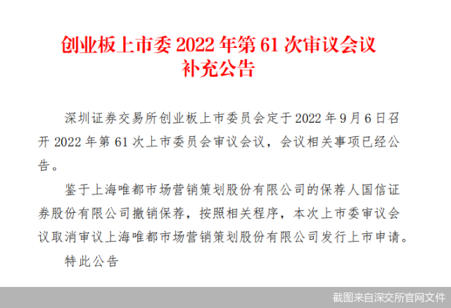 厚交所会集约谈保荐机构后,首个取消IPO保荐案例来了,原定于9月6日上会的上海唯都市场营销策划股份有限公司(以下简称“唯都股份”)IPO取消稽核。厚交所官网体现,唯都股份的保荐人国信证券股份有限公司(以下简称“国信证券”)取消保荐,按照干系步伐,上市委审议集会会议取消审议唯都股份发行上市申请。 上会前夕取消稽核 又有IPO企业上会前夕被取消稽核。 厚交所官网体现,创业板上市委员会定于9月6日召开2022年第61次上市委员会审议集会会议,稽核唯都股份首发事项,鉴于保荐人国信证券取消保荐,唯都股份首发上会取消。 值得一提的是,此前也有上会前夕取消稽核案例,但根本是发行人自行撤单,保荐机构取消保荐的环境较为有数。 本年9月2日,厚交所发文称,对创业板发行上市中履职尽责不到位的8家保荐机构的投行、质控、内核负责人以及保荐代表人实验发言提示,进一步压严压实看门人把关责任,而国信证券取消保荐也是券商被约谈后首个案例。 招股书体现,唯都股份主业务务包罗CRM营销、零售辅导、数字营销三大板块,影响公司收入的重要因素包罗公司自身的综合服务本事、客户开发本事、客户所处行业景气水同等。 此次钻营创业板上市,唯都股份拟募资4.05亿元,投向汽车行业CRM服务升级建立项目、多行业CRM服务拓展项目、品牌数字化营销体系建立及财产化项目、增补运动资金项目。不外,陪同着公司被取消保荐,唯都股份募资愿景也公布幻灭。 投融资专家许小恒对北京商报记者体现,IPO市场上,保荐机构取消保荐的环境确实并不多见,这也分析前期厚交所约谈券商变乱起到了肯定的震慑作用。针对券商取消保荐的具体缘故因由等题目,北京商报记者致电唯都股份方面举行采访,不外未能得到回应。 创业板定位被追问 闯关IPO背后,唯都股份创业板定位曾被羁系层反复追问。 陈诉期内,唯都股份研发投入分别为326.17万元、283.41万元、540.18万元,公司拥有1项专利权、55项软件著作权。唯都股份以为,公司重要从事CRM营销服务,其焦点在于为客户提供具有创造性的营销计谋制定和富有创意内容策划本事及高效的营销实行管理本事,公司拥有由专业职员构成的具有丰富行业履历的创意支持团队。 在问询函中,厚交所曾要求唯都股份增补分析公司研发投入产生的结果在具体业务上的应用环境、对业务收入的贡献环境,枚举公司近五年研发投入环境,是否存在为此次发行上市突击增长研发投入的环境。别的,也要求保荐人联合上述环境,就唯都股份是否符合创业板定位审慎发表意见。 须要指出的是,在厚交所会集约谈8家券商时就提到,机构在投行业务中出现对创业板定位明白不到位的环境,有的保荐机构对创业板重要服务创新型发展型企业熟悉不深刻,少数申报企业不符合创业板“三创”“四新”要求。 纵观唯都股份比年来业绩体现,处于稳步增长态势,此中2019-2021年实现业务收入分别约为1.95亿元、2.09亿元、2.61亿元;对应实现归属净利润分别约为4885.16万元、6377.53万元、6711.72万元。陈诉期内,唯都股份向前五名客户的贩卖收入分别为1.59亿元、1.72亿元和2.16亿元,占当期业务收入的比重分别为 81.48%、82.23%和82.67%,此中,向第一大客户沃尔沃的贩卖收入占业务收入比例分别为26.77%、30.92%和42.31%。 本年上半年,唯都股份业绩体现也较为乐观,实现业务收入约为1.6亿元,同比增长30.56%,对应实现归属净利润约为4961.56万元,同比增长68.2%。别的,唯都股份预计本年前三季度实现业务收入约为2.52亿-2.85亿元,变更比例为36.11%-56.61%;预计实现归属净利润约为7574.23万-8496.35万元,变更比例74.7%-95.97%。 北京商报记者 马换换 |