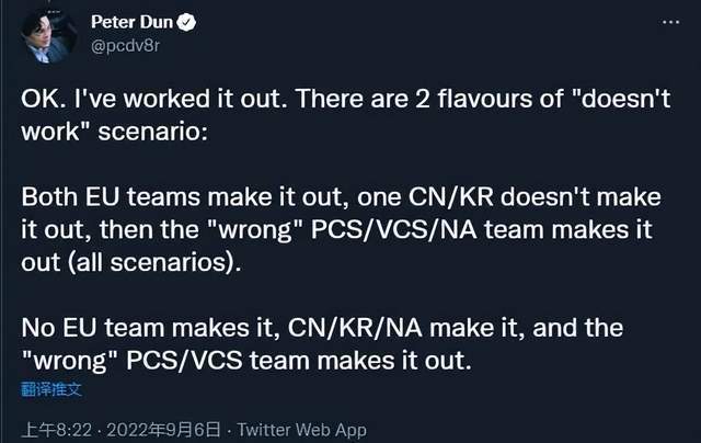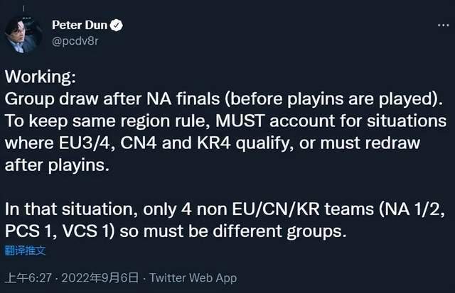 随着LPL赛区冒泡赛告一段落,四支代表LPL出征举世总决赛的队伍也已经全部决出。而外洋赛区也大多都已经竣事了夏日赛的全部赛程,现在已经有23支来自举世各大赛区的顶尖强队确认晋级S12举世总决赛,这也意味着本年S赛只剩下末了一个名额虚位以待。而EG作为拿到LCS赛区末了一张S12门票的队伍,他们的主锻练在克日发文谈到了关于抽签规则大概出现的抵牾之处。 这位LEC的锻练发文,先是扣问现在是否S赛尚有分组抽签同赛区队伍不能分在一个小组的规则限定,随后他增补如果出现每个组都有一个LPL、LEC以及LCK的队伍时,拳头应该怎么才气完成抽签分组。 按照EG锻练的模仿,有两种入围赛的晋级情况出现,会导致抽签分组一定会与同赛区规避的规则产生辩说。第一种大概出现的情况是LEC三号种子、MAD默认晋级,RNG/DRX两队有一支晋级,而且此时BYG/LCS三号种子/SGB中有一队出线。第二种情况是RNG、DRX以及北美三号种子晋级,加上BYG和SGB此中一支。如果入围赛两种情况出现,那么一定分组情况跟同赛区规避的规则有所辩说。 假设ABC三组都各有一支LPL与LCK的战队,入围赛RNG、MAD、LCS三号种子以及LEC三号种子晋级,那么RNG只能进D组,如果这个时间A和B组都有一支LEC的战队,那么LEC赛区从入围赛突围的三号种子和四号种子一定会出现和同赛区队伍遇到的情况,这就和同赛区规避的规则产生辩说。因此这位EG战队的锻练在末了也是发起拳头,要么改变同赛区队伍规避的规则,要么就在入围赛打完再举行小组赛的抽签分组。 网友们怎么看这件事呢?可以在下方批评区留言,分享本身的看法。 |