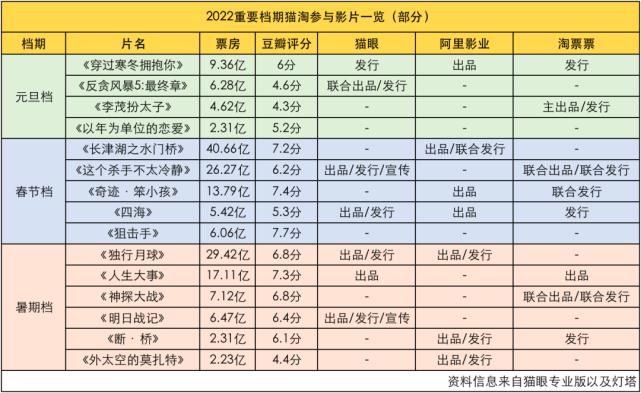 短视频|77、L.T 文|L.T 中秋档即将到来,《凡间有她》《妈妈!》《海的止境是草原》《哥,你好》《照旧以为你最好》《狼群》在内的6部影片打头阵。 你最想看哪部呢?成人的天下不做选择,可以的话,肯定是all in(全要)。 只是当影院线下售票处连续改建,观众打开购票平台的时间,曾经9.9元/19.9元的优惠票已然成为汗青,各种优惠券化身卖货平台的宣传利器,猫眼和淘票票在购票优惠方面,开始和影院自有平台举行“暗战”。 似乎全部统统都像是一个圈。 《阿凡达》上映初期,成为票务平台涌现的契机,只是转头再看,多少人还记恰当年的格瓦拉。如今,《阿凡达2》有望年底上映,曾经的微票儿(微影)也和猫眼归并5年有余。 猫眼和淘票票二分票务平台,渐渐转型宣发平台,乃至走上出品制作的上流。有人曾经预言,票务平台很难举行转型。 但如今翻看各个影片背后的影企,猫眼和淘票票,以致背后的阿里影业,时候饰演着出品/团结出品/发行等脚色。早已冲破了已往的预言,各家财报中,上映和待映的影片同样不在少数。那么,猫淘的转型之后,都交出了怎么样的效果单呢? 1.从票务到服务 根据艾媒咨询3月发布的陈诉表现,2022年淘票票和猫眼影戏是国内网民最常利用的在线影戏购票平台,占比分别为65.5%和60.8%(指两者之间存有肯定的共同点)。 就影戏行业如今的财产模式而言,网票业务的“金矿”并不是无尽的,前期的不停投入资金,通过低价票汲取流量的模式,无法恒久运行下去。这种方式的弊端,在网约车、外卖等电商业务同样存在。但影戏行业又差别于两者背后的存利空间,能连续发挥,存量用户所剩无几。 从票务性子转型,大概增值,是每个票务平台从初期就意识到的破局关键。 早在2015年,不少影戏背后就有各家票务平台加入团结出品的身影,当时格瓦拉成为第一个拿到发行执照的票务平台。但之后的各种效果一清二楚,当终极猫淘战局形成之后,在外界眼里,又是一场“A&T”(阿里和腾讯)之间的博弈。 在2019年,猫眼赴港上市时,CEO郑志昊公布调解公司战略目的,由票务平台升级为对标阿里大文娱的综合文娱平台,从产物、数据、营销和资金等范畴入手,布局全文娱财产链。 战略之下,作品数据或是最好的效果单。 我们整理了2022年元旦档、春节档、暑期档的重要影片,从中找到两者的影子,找到他们的选片门道。 团体来看,互联网发行已成常态。固然像《独行月球》属于阿里影业主控的项目,但是在出品方的名单中,同样出现了猫眼的影子;而猫眼主导的项目《这个杀手不太岑寂》中,不乏淘票票的“团结出品/团结发行”的身份。 很显然,对于不少项目而言,猫淘的关系并没有所谓的“排他性”,而是以更开放的状态,去拥抱市场,实现“1+1>2”的代价。 只是有的作品以淘票票的出现,有的则是阿里影业自己,乃至像《新神榜:杨戬》两者并没有出现,但出品方之一的小宇宙将来事件所,则是阿里影业旗下的又一个厂牌。 对于这些影片而言,“猫淘”始终不是真正的制作方,大概是第一出品方。《长津湖》系列背后是博纳影业,《独行月球》则以“开心麻花”的制作团队为核心,《这个杀手不太岑寂》也是以新丽传媒为第一出品。 6月初,阿里影业发布了《2021/22财年业绩》。财报表现,制止2022年3月31日,阿里影业的净利润为1.54亿元,客岁同期净亏损1.17亿元。营收规模从客岁同期的28.59亿元增长至36.52亿元,同比增长了28%。 此中,实现扭亏为盈的最大功臣当属内容业务,它的收入和毛利是全部业务中最高的。 而猫眼娱乐8月披露2022年中期业绩。财报表现,猫眼娱乐上半年实现营收11.91亿元,同比降落33.8%;经调解净利润为2.34亿元,同比降落51%。很洪流平上,由于疫情影响,在线娱乐票务服务业务受影响严峻。 猫淘从票务平台转型大文娱的过程中,成为宣发平台更是他们目的。 2017年上影节期间,时任阿里影业CEO俞永福提出,阿里影业要做行业的水电煤,根植行业服务;紧接着在猫眼、微影归并后,猫眼也开始对外夸大,其身份是“娱乐服务平台”,并在后续的招股书中指出,“我们于2016年开始加入影戏的主控发行并以敏捷成为中国排名第一的影戏主控发行方。” 2.不止服务 以大文娱为重要目的,阿里影业和猫眼始终不止服务。 在阿里影业最新的业绩陈诉中,同时披露了阿里影业巨大投资环境。此中,三项最大投资为博纳影业、乐华娱乐以及亭东影业。 究竟上,比年来,阿里影业和博纳影业相助频仍。 早在《红海办法》的时间,两者就有相助,2019年更是一同出品了“中国得意三部曲”《烈火豪杰》《决胜时候》和《中国机长》。乃至早在2015年,阿里影业公布,将通过旗下全资子公司加入买方财团,加入博纳影业的私有化生意业务。 在博纳出品的中秋档影片《海的止境是草原》中,同样会看到阿里影业的身影。而后续阿里影业出品的影戏《长空之王》,同样有博纳影业的身影。 乐华娱乐作为艺人管理业务,拥有大批艺人资源。此中,王一博为代表的艺人,比年和阿里文娱相助密切,从自制综艺节目《这!就是街舞》,到后续阿里影业的项目《长空之王》《热烈》中,均有其的身影。 至于实际控制人为韩寒的亭东影业,更是和阿里从《乘风破浪》开始,就有较为深度的相助。《长空之王》更是两者近期重点项目。亭东影业又不限于影视,定位则是泛娱乐管理。旗下的“ONE·一个”作为文娱IP开发平