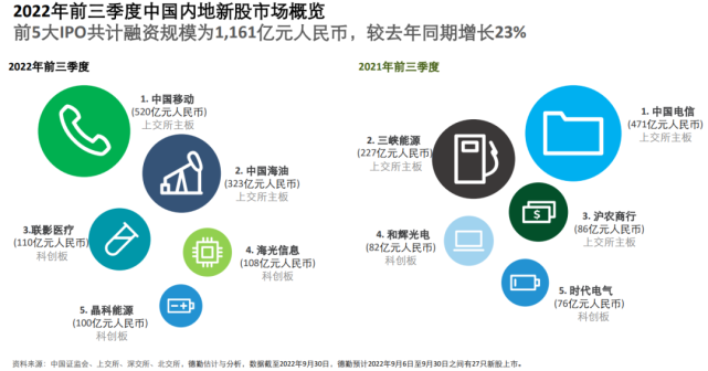 沪深买卖业务所融资额继续在环球重要买卖业务所保持冠、亚军职位,4只A股跻身年内环球融资额前十;港交所依附两只超大型新股位列第四。德勤最新发布的一份陈诉,勾勒出了A、H股停止现在的前三个季度的表现。 德勤9月7日发布的《2022年前三季度中国本地和香港IPO市场回首与远景预测》陈诉表现,迄今为止的前三个季度中,环球融资额前十的IPO中,4家公司来自上交所、2家公司来自港交所。中国移动(600941.SH)以520亿元的融资额,成为A股前三季度“募资王”,同时也是环球第二大IPO,仅次于韩交所的LG Energy Solution(融资额为843亿港元)。中国海油(600938.SH)、联影医疗(688271.SH)、海光信息(688041.SH)分列环球融资榜第四、第九、第十位。别的,光伏组件巨头晶科能源(688223.SH)年内上市科创板募资100亿元。 具体来看,停止现在,A股市场共计发行新股285只,合计融资4641亿元,IPO数目虽比上年镌汰23%,但融资额却上升了26%。 分板块看,创业板IPO数目在A股领先,科创板融资额领先,科创板及创业板融资额均凌驾主板。在科创板推动下,上交所年内以114只新股、约2960亿元的融资额居首,此中科创板共计发行83只新股,合计融资超1800亿元;厚交所则以140只新股、融资1627亿元的融资额紧随厥后,北交所31只新股融资54亿元。分行业看,科技、传媒和电信行业的融资金额遥遥领先,制造行业位居第二。 随着前三季度靠近尾声,市场对整年IPO市场关注较高。德勤陈诉表现,停止现在,247家企业已颠末会但尚未发行,尚有靠近900家企业正在申请上市。 “预计科创板、创业板、沪深主板前三季度的趋势,会在四序度得到连续,思量到经济刺激步伐,A股市场整年新股融资额有望继续攀升,大概会创下新的记录。”德勤中国资源市场服务部华东区A股上市业务主管合资人赵海舟说。 德勤预计,2022年整年,科创板大概将有140至160家企业上市,融资额到达2300亿元至2600亿元;创业板有190至210家企业新上市,融资额达1900元至2150亿元;沪深主板估计有约80至100只新股上市,融资约1400至1700亿元。北交所将约有50至80只新股上市,融资约100至150亿元。 港交所方面,“免税茅”中国中免(601888.SH、01880.HK)近期完成H股发行,合计募资162亿港元,为环球第六大IPO,该股有望成为港交所年内最大规模IPO。天齐锂业(002466.SZ、09696.HK)H股募资135亿港元。 陈诉分析,前三季度,港交所共计发行47只新股,合计募资547亿港元,同比分别下滑36%、81%。只管港交所前三季度有中国中免与天齐锂业2只大型新股“撑局面”,但团体新股市场和缓新经济行业估值降落,加上超大型和大型新经济新股数目骤减,令融资总额明显滑落。 |