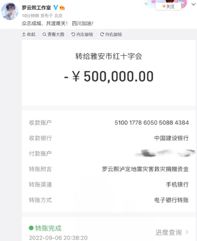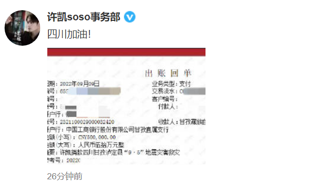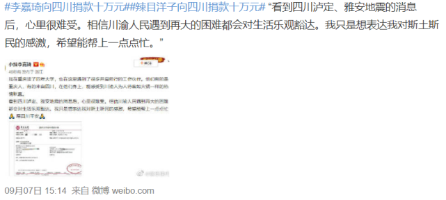 9月5日,四川甘孜洲泸定县发生6.8级地震,浩繁明星纷纷伸出援手。近百位明星第一时间转发微博为震区祈福,渴望接济职员平安全安,当地群众也不要再增长伤亡人数。 四川地震后灾情很严峻,很多明星都第一时间捐赠物资,在名贵的黄金接济时间内,捐赠物资更轻易资助灾区受害群众。好比黄晓明公益基金会,就第一时间接洽了一批物资,对四川灾区举行捐赠。黄晓明这次向灾区捐赠了帐篷150顶,防潮垫100张,应急灯500盏,这些物资当天就能抵达灾区一线。随后几天,黄晓明基金会又连续采购了其他灾区必要的物资,告急运往灾区。在慈善这方面,黄晓明可以说是娱乐圈的榜样,总是在第一线。 李宇春也是第一时间驰援故乡,她通过玉米爱心基金,告急接洽采购了灾区群众转移安置必要的12平米安置帐篷100顶和1000张户生手军床,根据灾区需求分配和起运,敏捷投入接济一线。 窦骁何超莲、李易峰、赵丽颖、张艺兴、吴磊、张天爱、赵露思、王一博、印小天、吴京谢楠、朱一龙等爱心明星纷纷通过“携手来日诰日”办法捐赠善款增援抗震救灾工作。 韩红基金会在得到灾情严峻后,告急增援灾区,向泸定县和雅安市分别捐赠200万,合计400万元,资助受灾环境办理困难。 贾乃亮也分别向泸定县和雅安市捐赠100万,他还写道:渴望灾情尽快已往,不要再有伤亡。 杨幂、杨紫、关晓彤、肖战、王源均捐赠一百万,资助灾区群众解困,他们都渴望这次可以大概“同心协力,一起共渡难关,四川加油! ” 林依轮率先捐钱50万,随后沙溢夫妇、戚薇、龚俊、罗云熙、许凯都捐赠了50万,龚俊相对低调,他是以自己公司名义捐钱。网友都对他们如许积极做慈善的活动感动满意,他们都称得上是正能量满满的艺人。 而郑云龙、蔡徐坤均捐赠30万元资助四川受灾群众,他们的善款会资助到很多灾区群众,云云大爱令人感动不已。 明星捐多捐少都是他们的自由,反而一些黑粉故意搞事变,好比辣目洋子捐钱10万、丁真捐钱10万、付笛声夫妇为四川捐钱10万、主持人王为念捐钱5万,都被道德绑架,指他们捐的太少。 这次四川受灾,很多网红也捐钱捐物,好比辛巴一次性就捐赠了500万,小杨哥兄弟也捐了50万,另有衣哥30万、四姐10万等等,给各人做好了榜样。渴望泸定、雅安的灾情可以大概尽快已往,各人都要平安全安! |