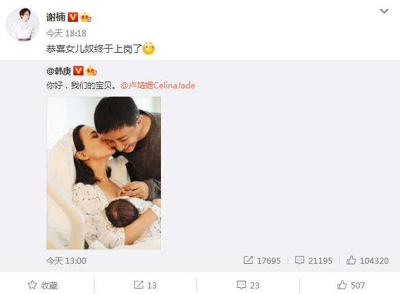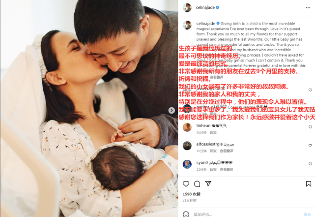 9月9日,韩庚和爱妻卢靖姗相继在个人交际平台发文官宣女儿诞生,夫妻俩还齐齐发文:“你好,我们的宝贝”,满满幸福不知道倾心到了多少人。 韩庚和卢靖姗还初次公开了一家三口的温馨合照秀幸福,给足粉丝惊喜。从晒出的照片看,韩庚与老婆女儿同框的画面,真的好有爱。 刚生产完的卢靖姗状态看上去非常好,她坐在椅子上一边抱着女儿,一边仰着头亲吻老公的面颊,嘴角还洋溢着幸福的笑脸,看着都以为好温馨、好有爱。而且从这个角度看,初升辣妈的卢靖姗这下颚线和天鹅颈也太精良了吧,完全和孕前没差。 刚刚升级当爸的韩庚全程乐得合不拢嘴,他低头共同娇妻亲吻,而且还伸脱手和女儿互动,看老父亲一脸“不值钱的笑脸”,真是隔着屏幕都被他和卢靖姗的幸福给秀到了。再次恭喜韩庚和卢靖姗! 9日晚,卢靖姗再度更新动态,她在另一交际平台发文泛论分娩履历。卢靖姗表现生孩子是自己履历过的最不可思议的神奇履历,她还向在孕期对自己支持、祈祷、祝福的朋侪表达感谢,她感性称女儿有了很多非常好的叔叔阿姨,令人非常动容。 除此以外,卢靖姗还感谢了家人和老公韩庚,她直言在自己分娩过程中,家人和老公的表现令人难以置信,只看笔墨都能感受到卢靖姗当时的感动心情了。文末,卢靖姗称自己太爱女儿了,一句“感谢你选择我们作为父母,永世爱小天使”太戳人啦。从卢靖姗连续两次的动态就能看出,她对女儿的到来开心到不能自制,既高兴又感动。 卢靖姗还贴出了一张一家三口的最新合照,合照中小公主握着小拳头,牢牢地抓着爸爸妈妈的手指,画面真的太有爱了。 在看到韩庚和卢靖姗女儿诞生的好消息后,网友们纷纷为他们奉上了祝福,而两人的好友谢楠也转发了韩庚的动态并写道:“恭喜女儿奴终于上岗了”。从曝光的一家三口百口福看,韩庚确实是实打实的女儿奴,真得蛮期待他之后的宠女一样平常。 不外谢楠这次转发韩庚的动态,并恭喜对方升级女儿奴,不知道她有没有筹划再追生女儿呢,让吴京也当当“女儿奴”? 卢靖姗和韩庚在母亲节的当天官宣升级准爸准妈,初为人父、人母的小两口高兴心情一清二楚。而之后卢靖姗便开启了孕妈模式,她也时常公开自己的孕期生存以及美照。 从卢靖姗之前的分享可以清楚看到,她的整个孕期的状态都非常好,生存中即便是肚大如箩,仍旧状态满满,一点孕期的疲态感都看不到,是十足的大气孕妈。 而在拍摄杂志大片的时间,卢靖姗的表现力更是亮眼。看到她顶着大肚做出各种差别pose,真的有被她的孕期状态给美到。 相识卢靖姗的网友应该都知道,她整个孕期都在对峙做运动,瑜伽、游泳、普拉提、骑单车等,卢靖姗都轻松hold住,锋利到不可。如今她终于顺遂生下女儿,确实要好好恭喜她了。 卢靖姗和韩庚不停都外界公认的榜样夫妻,如今他们顺遂升级为三口之家,更加的幸福羡煞旁人。那么就渴望韩庚和卢靖姗之后能继续频仍分享家庭幸福,也期待看到小公主的发展点滴。 图片源于网络 |