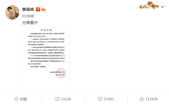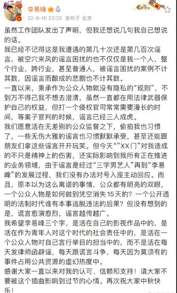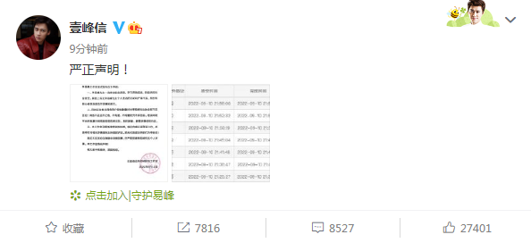 9月10日晚,李易峰和工作室先后发声明回应网上的爆料,声明中否认了网上的不实爆料,工作室还晒出了状师取证截图。 随后李易峰本人也发布了长文,称:由于谎言是颠末“三字男艺人”再到“李易峰”的发展过程,我们没有办法对号入座自动回应。而且,原来以为这么离谱的变乱,公众都有豁亮的双眼,一个公众人物是怎样做到凭空消散15天的?一个公开透明的法制期间谁有本事逃脱违法的效果?但没有想到的是,谎话愈演愈烈,谎言越传越广。 此前针对网上的各种听说和爆料,李易峰的经纪人稍早前在朋侪圈晒出一张狗的照片,并配文称:“造谣一张嘴”,还配上菜刀的心情,群聊中,李易峰的经纪人则表现:“不停在处理处罚标题,被黑”。 9月10日,某晚会删除了李易峰的节目。而此前“李易峰 最高检”的词条登上热搜榜首位,有网友发现学习强国和最高检都删除了李易峰的微博相干内容,引发网友热议。 李易峰在2019年10月31日被约请为天下查察构造“法治进校园”运动的形象大使,聘期是三年,到期时间应为2022年10月31日,间隔到期尚有一个多月的时间,这时间突然清空了全部的相干内容,网友们推测则和此前有关“三字艺人”的爆料有关。 9月2日有爆料称三字艺人嫖娼被抓,李易峰由于你缺席当天的运动,被指疑似爆料中的三字艺人,随后李易峰直播辟谣,说由于疫情不能到达运动现场,没想到仅仅已往了一个星期,这个爆料由于最高检删除李易峰的相干内容登上热搜榜,再度引发网友热议。 就在网友热议时,李易峰的微博上线了,然后有关李易峰的相干热搜全部被秒撤,但是李易峰并没有对此事举行发声回应,固然热搜榜被撤,但是变乱远远没有竣事。 之后又有网友发如今金鹰奖、华鼎奖的官方微博中也搜刮不到有关李易峰的相干内容,前几天被爆料时,李易峰立马就开直播举行辟谣,本日不但节目被删,最高检、华鼎奖、金鹰奖全部都查无此人了,李易峰却一反常态,仅上线,不敢发声回应,有网友就发文表明此中的缘故因由。 网友表现,工作室不会发微博辟谣,由于只要辟谣,就会被官方直接发声明实锤,此前艺人牛萌萌被曝丑闻时嘴硬发声辟谣,效果就被官方发声明实锤打脸,直接凉凉。但终极李易峰方面还是发声辟谣了。 前欢瑞高层姜磊也在微博发文写道:“唉”,被疑是在痛惜李易峰,姜磊是李易峰主演的《盗墓条记》《麻雀》《活色生香》《青云志》《古剑奇谭》的制片人。 由于此事,李易峰从前的一些负面消息同样被网友扒出来议论,2016年李易峰驾驶豪车发生车祸,之后肇事逃逸,李易峰因此登上央视消息,因两项交通违法活动,被罚2000元扣24分,由于其时娱乐圈并没有如今这么严酷,李易峰很快就没事了,假如放到如今,恐怕会直接凉凉。 尚有就是2019年李易峰和网红胡湾的恋情了,网友扒出了李易峰晒出的照片和网红胡湾晒出的照片有许多一样的配景,而且时间点也根本重合,不外,胡湾之后否认了恋情,但是胡湾和韩国艺人李胜利相识,而李易峰也被扒出和李胜利有交集,其时李胜利事故闹得沸沸扬扬,还扳连到了国内的几位网红,李易峰也跟着躺枪了。 如今,随着李易峰最高检、华鼎奖和金鹰奖被删除相干微博内容,内娱的瓜真的是越来越劲爆,果然,大瓜从来都没有预报。 |