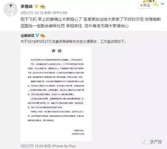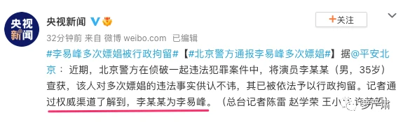今晚5点多安全北京的转达确认了李易峰多次嫖娼并行政拘留的消息。 昨天也就是9月10日中秋节下战书,关于李易峰的八卦已经开始发酵。 先是一些官微删除了李易峰干系内容,而最初李易峰粉丝还在积极发布中秋晚会干系预告以辟谣。 没想到,下战书5点,央视发了中秋晚会确认节目单,没有李易峰。 啊这,啊这。小道消息说是嫖娼了。 传言四起时,李易峰经纪人于晚大将近7点时在朋侪圈发文:造谣一张嘴。 本日,中秋节后的第二天,李易峰干系内容还在连续下架中,相助品牌也开始删内容了…… 终于由于安全北京的转达而有告终论,他不光是嫖娼,照旧多次嫖娼。央视记者直接李某某全名都点出来了。 不明白这些人为什么硬要表明自己没事,以后辟谣就快酿成“等警方转达的意思了”,几个经典回顾↓ 向阳区的前顶流已经越来越多了…… 《老炮儿》这个戏,因此连片名都有了深意…… (△早就感觉李易峰对吴亦凡还挺热络。) 他跟李云迪也挺有缘分。 如今李易峰因多次嫖娼已被行政拘留,但更多网络爆料又来了。 网传一位密斯的朋侪圈,说自己在海口陪李易峰拍戏,想不到他不光嫖娼还选妃。 爆料者不光晒出了2021年6月在海口订旅店的短信截图。 更有李易峰两张私下照片为证。 他看的屏幕中有不雅内容,已打码。 就在李易峰和一女子在旅店约会并看了不雅内容的2021年6月6日,粉丝在接他拍戏放工。 许多人都要问,男明星什么都有,为什么一个两个三个都要去嫖? 大概就是由于,他们的日子云云容易。 本年35岁的李易峰,2007年到场《加油!好男儿》而走红。其时他是“倾城四少”之一,跟乔任梁是CP,别的两位井柏然和付辛博是BOBO组合,固然也是CP。 选秀竣事后,几位好男儿发展平平,李易峰开始因《古剑奇谭》翻红,并因该剧和陈伟霆成了越苏CP。 《古剑奇谭》乐成的几个要素包罗古偶、弹幕、男男CP、粉丝创作,那几年又在外交网络灵敏娱乐化的节点,当偶像的人气被具象化为“流量”时,李易峰就是微博初代“四大顶流”之一。 已往我们总结“四大顶流”是:两个EXO返来的,两个演国产剧红的。 如今我们总结四大顶流是:已经进去俩了。 成为“顶流”之后,李易峰遭遇过反复巨大负面消息。 起首是驾车逃逸。 2016年5月27日破晓,李易峰驾驶着一辆无挂牌白色兰博基尼撞上了大郊亭桥东四环辅路上的桥墩,事发后他没有等候交警,而是立即脱离现场,把变乱交给公司工作职员处置惩罚。 除此以外,他的车牌也有标题,临时牌照逾期了半个月。 车祸当天,李易峰飞往摩纳哥到场某手表品牌运动。他给出的逃逸来由也是由于他早就定好了那天要出国。 由于交通变乱并不严肃,没有职员伤亡和巨大财产丧失,其时就有人推测大概是酒驾或毒驾等更须要逃逸的来由。但是也没有更多证据。 本变乱的终极处置惩罚结果是李易峰肇事被扣24分罚款2000,如果还要开车须重考驾照,但没有对李易峰的职业生存造成严肃影响。 (△2016年李易峰肇事逃逸后在摩纳哥到场运动) 别的一个私生存负面就是2019年他被爆料和网红湾湾(原ID@blase湾湾,现ID@胡湾ONE)苏梅岛绯闻变乱。 简单说就是李易峰脱粉的粉丝,通过一系列图片和微博行踪,对比推测出湾湾和李易峰2018年年底一起到苏梅岛度假。 2018年12月,网红湾湾自称和一个“生日是5月4日”的夫君一起在苏梅岛跨年; 她在苏梅岛晒出如许的景致; 而李易峰本人在跨年夜晒出了这张照片。 看起来是毫无关系的,但是湾湾微博公开表现过对李易峰的喜欢,湾湾说过的男友叫“54老师”,李易峰生日是5月4日,大概粉丝就是如许雷达响了。 湾湾曾在吴亦凡小G娜变乱发作后发微博表现:如许的男偶像是下凡天使。 其时粉丝回踩最震撼我的就是:真爱粉都是福尔摩斯。看到一张李易峰的浴袍照,粉丝就能推断出他跨年在哪儿和谁做了什么,简直消息五要素齐备。 简单回顾一下:李易峰2018年2月25日晒过苏梅岛的萨穆嘉纳旅店。这里跟湾湾跨年在IG上晒出的景致是一个地方。 来由是,李易峰和湾湾的照片里,配景的两座山的外形和位置相似,但是拍摄上下角度稍有偏移。 粉丝又动用了舆图软件,再团结别墅泳池边沿外形逐一排查,发现出只有该旅店的20号别墅可以对得上湾湾跨年所在。 再上网搜这个20别墅的资料图片详细对比…… 别的另有粉丝知道存在一个长期为李易峰规划行程的计某某,称计某某外交网络晒的内容也能看出李易峰去了苏梅岛等等。 一个神奇的征象:粉丝能通过各种信息搜集和分析方法推理出偶像跟谁来往跟谁过生存;却不信托一个根本究竟,偶像是老板,工作室员工都只是员工,骂员工真的没用。 这桩绯闻被李易峰澄清了,但他其时的澄清语言非常奇怪。其时间杨幂刚仳离不久,李易峰先澄清了自己几年前和杨幂的绯闻,末了才澄清了湾湾的,因此李易峰被骂没继承,拉杨幂出来挡枪。(杨幂和李易峰的粉丝还都叫蜂蜜。) 延伸知识点是,湾湾和李雨桐是闺蜜,在李雨桐大撕薛之谦的时间辅助打击。 湾湾也跟多个男明星有交集。 黄景瑜没红的时间帮她拍“让男民气动小动作”讲授。 湾湾自称促成了王嘉尔单曲 王嘉尔穿过她订制的衣服。 胡彦斌看起来跟她关系不错。 另一个意想不到的是,这桩苏梅岛跨年绯闻还挖出了李易峰和韩国艺人李胜利的关系。 湾湾和李胜利是四年挚友,她自己晒过。 李易峰和李胜利是2018年11月4日微博