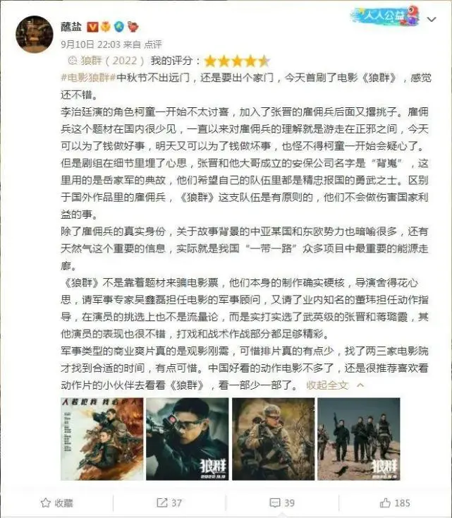 张晋新片《狼群》上映4天,票房委曲过1500万,上座率固然有6.4%,排片占比却仅有2.7%,有点惨。 看片名,网友有话说了:“又来碰瓷《战狼》?” 毕竟在吴京的《战狼2》爆火之后,又有林超贤拍出了《红海举措》,唐季礼和成龙拍出了《急前锋》。 厥后《反击》、《战毒》、《狼鹰》、《雷霆追击》、《毒战生死线》等,一大堆连海报都差不多的影戏,纷纷来碰瓷,观众早已对这种“战狼”题材片审美疲劳了。 而这部《狼群》早在预告片发布时,就打出“战狼成群”四个大字,不偏不倚正撞在枪口上,观众有如许的质疑,也可以明白。 翻翻影片从准备到制作的那段汗青。 它的原名倒不叫《狼群》,而是叫《我的佣兵生活》,简称《佣兵》,是应影戏局的要求,才改成如今的名字的。 影戏由此前专攻网大的导演蒋丛编导,除了张晋领衔主演之外,尚有李治廷、蒋璐霞的加盟。 男的耍帅、女的能打,这套阵容倒是不差。 本着支持和鼓励的态度,皮哥在所在都会当天只有1家影戏院排了2场情况下,还是积极挤出时间看了这部影戏。 话不多说,下面皮哥就来为各人排雷,看看这部“战狼成群”的《狼群》,到底成色怎样,是否值得一看。 一、 先说故事,皮哥以为蒋丛导演写的脚本,倒是花了不少心思。 故事既与如今中亚地区现状有所接洽,也分身故事性和人物塑造,虽说故事并不复杂,倒也能做到人物性格光显,故事层层推进。 这部影戏的故事,实在可以分成两条线。 先说第一条故事线—— 这条线是以第一位男主角张晋,与大反派艾克拜尔的终极对决,为主线索。 由刁缠(张晋扮演)向导的背嵬安保公司“狼群小队”,为了掩护从库利国延伸到我们国内的自然气管线,与中亚非常构造“神奴206”之间,发生了武装辩论。 故事因由是我国某自然气公司,与库利国当局签署了相助协议,从库利国建一条自然气管线,将其自然气运送到我们国内,为我们国家的发展提倡能源支持。 这个项目影响了东欧地区某能源团体的长处,因此他们扶植非常构造“神奴206”暗中搞粉碎。 起首,神奴206制造了一批盗窟阀门,用来更换掉自然气管线中的正规阀门,想以次充好,粉碎管线。 于是由刁缠(张晋扮演)向导“狼群小队”,潜着迷奴206的基地,用强酸将这批盗窟阀门腐蚀掉。 这次举措固然乐成了,但此中部分盗窟阀门已经被安装到自然气管线上,必要花时间举行排查。 自然气公司派出专员曲峰,和库利国当局签署了新的协议,为排查盗窟阀门夺取到了时间,“狼群小队”负担了掩护曲峰安全和包管协议签署的使命。 神奴206无计可施之下,只好由头目艾克拜尔带队倾巢而出,在自然气管线的压力调治器上安装炸弹,想引爆整条管线。 “狼群小队”亦再次出动,与神奴206正面临抗,终极粉碎了其筹划,包管了自然气管线的安全。 “狼群小队”与神奴206的3次比力是贸易片中,范例的三幕戏布局。 其接洽细密,一环扣一环,此中泯灭了大量笔墨在反气魄目艾克拜尔与当地布衣小孩的塑造上,在摆设动作戏之余,编剧还试图分身对战争的思索。 再说第2条故事线—— 这条线,则以另一位男主角柯童(李治廷扮演)参加“狼群小队”动机,为紧张线索。 柯童的父亲本是背嵬安保公司的创建人之一,和刁缠是好兄弟,但在一次事故中丧生。柯童为了找出父亲去世的本相,才以医生的身份来到中亚。 刁缠找到了柯童,邀其参加“狼群小队”,但柯童一开始并不容易就范,颠末连续串辩论与磨合之后,才渐渐融入这个团体。 期间与小队中的妖怪(蒋璐霞扮演)、弹壳、塞亚人、火球、苍蝇等人创建起战友谊谊,使这些人物的性格特点都得以塑造出来。 柯童这个人物被塑造成带着“圣母心”的楞头青,开头时为小队制造了不少贫苦,有点令人讨厌。 但厥后在战友弹壳断送后,被引发了“洪荒之力”,又表现得非常英勇,与神奴206头目艾克拜尔缠斗一段,令人印象深刻。 二、 有真实原型可依,“库利国”暗指实际中哪个国家? 片中的张晋“狼群小队”所在的“背嵬”安保公司,大有来头。“背嵬”一名,取自岳家军,有特殊寓意。 实在从故事上来看,《狼群》是花了很多心思的。 反恐精英保卫“地下长城”自然气管线如许的故事,在我们当地影戏中也属首例,并非故意碰瓷《战狼》。 微博上某军事大V在看过影戏后,也给出了正面的评价,说导演蒋丛花了心思,制作上还是很硬核的。 设定的故事配景中亚地区和东欧权势实际中也是存在的。 中亚地区的“五国”就是哈萨克斯坦、乌兹别克斯坦、土库曼斯坦、吉尔吉斯斯坦和塔吉克斯坦,固然并不存在“库利国”这个国家,但其在实际中对应的,正是哈萨克斯坦。 影戏在开机前,蒋丛曾带着剧组远赴巴基斯坦和哈萨克斯坦这些国家实地观察,又得到那扎尔巴耶夫总统的约请前往哈萨克斯坦取景。 但厥后由于疫情的缘故因由,原先的拍摄筹划被迫取消,改在新疆的克拉玛依拍摄。 中亚五国的面积有400万平方公里,此中有1/4是油气地质,蕴含大量油田和自然气田,是实打实的能源宝库。 我国是举世最大的能源入口国,在2013年“一带一起”相助倡议提出后,与中亚五国的能源相助日益频仍,大量自然气开采站和运输管道也随之创建了起来。 有创建,就有粉碎,特殊是在那些局面动荡的地区,中国企业的外洋长处维护尤为紧张。 2014年5月16日,在喀麦隆共和国搞创建的中国水利水电第16工程局营地,就曾遭武装
