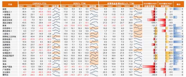 业绩陈诉的十大关注点: 本年局部疫情对重点行业及干系中小企业影响怎样?部门斲丧服务和出行行业根本面仍未及疫情前程度,航空机场和旅游及休闲收入为疫情前40%和55%左右,策划现金流走弱,但上市中小市值企业债务和现金流压力或好于实体团体。 上游涨价对中卑鄙制造业的影响是否靠近拐点?一季度国际地缘局面引发商品涨价的影响在中报会合表现,原质料占比高的制造业毛利率和净利率均受影响,但值得关注的是二季度家电的毛利率逆势改善,家居、白电、小家电、新能源动力体系、电源装备等前期受影响略大的细分行业也同比改善,电力和部门机器环比4Q21改善。将来重点关注能源代价韧性和中卑鄙自身需求修复,我们预计在下半年上卑鄙的利润率差随着商品代价回落有望进入向上拐点。 房地产根本面下滑环境及对地产链影响怎样?房地产行业红利指标继续走弱,资产端货币资金、短期金融资产有所降落,存货渐渐转为负增长,负债端反映房企偿债活动显着,策划和筹资活动现金流下滑带来净现金流一连四序度为负。地产链上游的装饰质料和修建装修等行业策划和现金流指标走弱,但卑鄙家居、家电有肯定韧性且部门指标好转。 怎样对待中国的资源开支周期?A股资源开支弱反弹紧张来自汽车财产链和高端制造同比增长57%和15%支持,团结红利周期、存货、产能利用服从和筹资现金流的干系性,我们预计A股资源开支团体扩张的意愿、需求和条件仍缺乏。 怎样对待中小市值公司的根本面?按市值分拆,本年一、二季度均出现大市值公司红利韧性、ROE好于中小市值,二季度中等市值公司红利边际下滑较多,中小市值的债务布局和偿债本领仍相对康健大概意味着体系性风险有限。进一步从行业和发展赛道层面分别,半导体及电子元器件、汽车零部件、白酒和医药医疗等行业中小市值中报业绩占优。 出口链的行业趋势和景心胸怎样厘革?1H22出口链行业外洋收入占比广泛提拔,新能源动力体系、电源装备和工程机器等高端制造和新能源车财产链上游外洋收入增速高出30%;出口行业广泛资源开支增速安稳或小幅下行、ROE提拔放缓,下半年大概徐徐面临外洋收入增长回落压力,有数金属、农用化工、电源装备和其他电子零组件指标趋势较好。 制造发展范畴景心胸有何厘革?当前制造发展的高景气范畴进一步稀缺,光伏财产链(太阳能、光伏装备)、新能源动力体系、电机电控、武器兵装和其他电子零组件等根本面质量较高,半导体和乘用车较前期有所降落。 斲丧范畴根本面改善环境怎样?斲丧范畴景心胸指标团体仍偏弱,耐用斲丧品存货回落较为有利,综合根本面得分较高范畴大概包罗照明电工及其他、酒类、纺织制造、白色家电,家居、纺织制造行业得分改善较多。 周期行业根本面分化后的趋势怎样?周期上游和部门中游行业指标趋势较好,煤炭开采洗选、有数金属、工业金属、化学质料、农用化工等景心胸较高。关注上游煤炭、石油开采和工业金属等传统能源质料行业资源开支维持低位,自由现金流/全部者权益为汗青新高,为高分红创造条件。新能源质料需关注需求一连性,部门范畴存货周转率有所降落。 “专精特新”的中报表现怎样?我们梳理的600多家专精特新“小巨人”1H22营收、净利润和资源开支增速为26%/22%/34%,毛利率和ROE相对稳固,固然业绩增速有所放缓,但无论增长趋势和质量均显着好于制造业团体。 正文(节选) 房地产根本面下滑环境以及对地产财产链的影响怎样? 房地产行业团体红利本领降落,资产负债表布局厘革较大,现金流出压力加大。随着2021年下半年以来房地产板块投资以及贩卖走弱,和部门光荣风险事故发生,出现以下特性:1)红利本领方面,房地产行业受计提存货跌价丧失以及贩卖下滑拖累毛利率影响,净利润率开始逐季下滑并在4Q21出现亏损,拖累行业ROE(ttm)下滑至二季度的1%,为近10年最低水平,权益乘数和资产周转率仍较为安稳。2)资产负债表方面,房地产行业资产负债率较为安稳但内部布局厘革较大。资产端货币资金、短期金融资产大幅降落,预付资金大幅降落大概反映拿地镌汰,同时存货降落反映当前团体库存大概并不高;负债端则黑白期乞贷规模均大幅下滑,反映房企的资金偿债活动,预收账款增速也回落并转负,相比汗青状态不佳。3)现金流方面,随着2021年以来策划性现金流占比下滑和筹资现金流一连6个季度净流出,房地产上市公司的净现金流占营收比重一连下滑而且自3Q21开始一连4个季度转负,相比汗青状态压力较大;进一步选取非国有中小房企样本,由于筹资现金流一连净流出多个季度,净现金流已出现多个季度的净流出。将来必要重点关注政策发力改善需求以及供给侧的支持,对房地产资产负债布局和现金流的改善。 房地产财产链干系行业上市公司根本面分化,卑鄙好于上游。装饰质料、家居、白色家电、厨房电器和修建装修等房地产卑鄙行业,受上游资源涨价以及地产贩卖下滑导致需求偏弱影响,广泛自3Q21开始出现ROE下滑,此中修建装修受计提减值丧失影响而处于显着亏损状态,白电和家居已有企稳迹象。策划层面看,房地产链干系行业资源开支广泛走弱或较为低迷,毛利率广泛出现逐季下行,但家居和白电毛利率率先有所改善,存货周转率也紧张反映装饰质料和修建装饰走弱。资金层面看,地产链各行业广泛策划现金