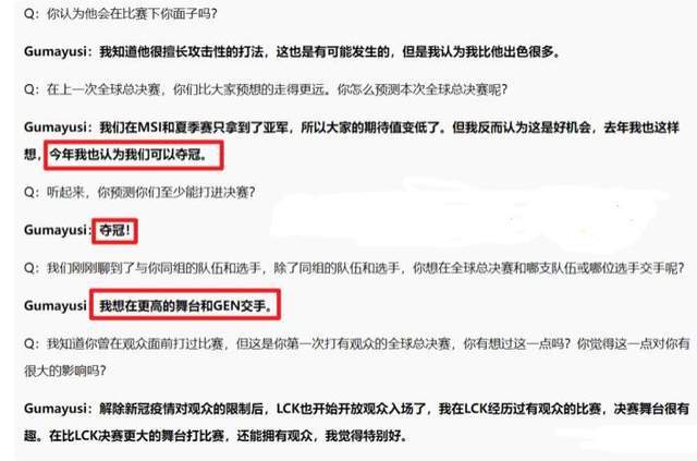 近来关于电竞圈的热度是各人有目共睹的,就现在这个情况来看,天下赛确实是很多人在讨论的话题,现在角逐正在积极的举行中,各大战队都摩拳擦掌了,本年对于我们赛区的战队来说是很积极会夺冠的,由于团体力气确实已经到达了顶峰。 哪怕是客岁S11的冠部队伍,大概是本年Msi的冠军战队,在我们赛区也执偾三四号种子而已,可见我们赛区的一二号种子有多强了,以是我们有信心是正常的,不外话说返来,不管面临谁,我们赛区是肯定必要认真对待的,绝对不能轻敌。 近来小组赛立刻就要开始了,以是各大赛区的选手们有很多采访,于是近来的采访中就发生了很多好玩的事变,也有一些让人非常反感的事变发生,也有一些担心的内容,比如牙膏就在采访的时间就表现,本年假如没有打出好效果,来岁就直接退役。 尚有近来T1战队的AD选手Gumayusi担当采访,效果在采访的时间他还是一如既往的喜好口嗨,而且这次又讽刺LPL了,直言GEN是唯一对手,LPL对本身没有威胁,详细事变是如许的,他们和EDG分到了同一组,效果采访的时间,主持人问他小组赛内里哪支战队对T1威胁最大。 而他的答复是:并不以为对手很有威胁,由于组里有C9和EDG,他们的AD都很出色,以是角逐应该会很风趣。风趣和威胁两个词的差异就是:威胁是指对手很有大概会击败了,你大概会打不外,而很风趣则是对手力气不错,但也仅仅是不错,还威胁不到我们的晋级。 然后背面被问道:听说你们本身猜测是能进决赛?而他来了一句:夺冠。而且背面还表现本身想在更高的舞台对阵GEN。言外之意很显着了,就是想要在决赛的舞台和GEN再打一场,究竟他们夏日赛刚输过一场,这次也想要报仇,但是他好像好了伤疤忘了疼。 本年msi的时间,他就扬言要在RNG下路组合的头上拉翔,效果末了输的很惨,而这次他又来秀智商了,再次不把我们赛区放眼里,看来又是欠摒挡了,小组赛让EDG给他们点颜色,背面尚有其他战队会摒挡他的,对此你们有什么想说的吗? |