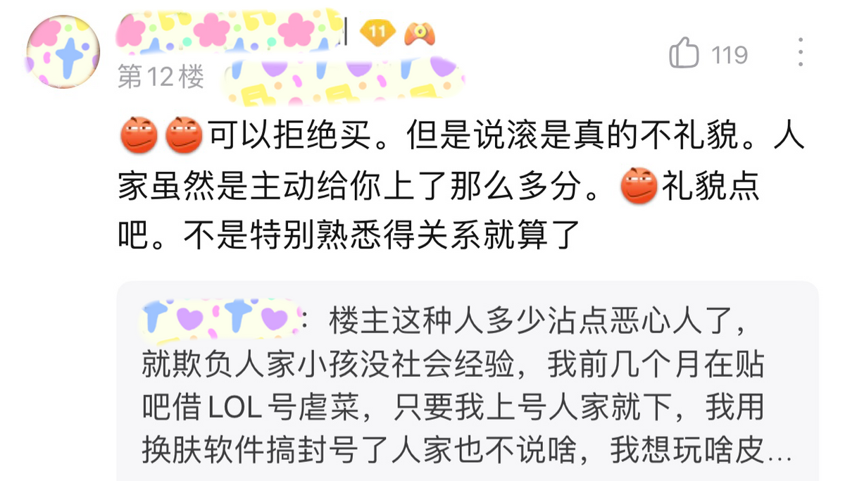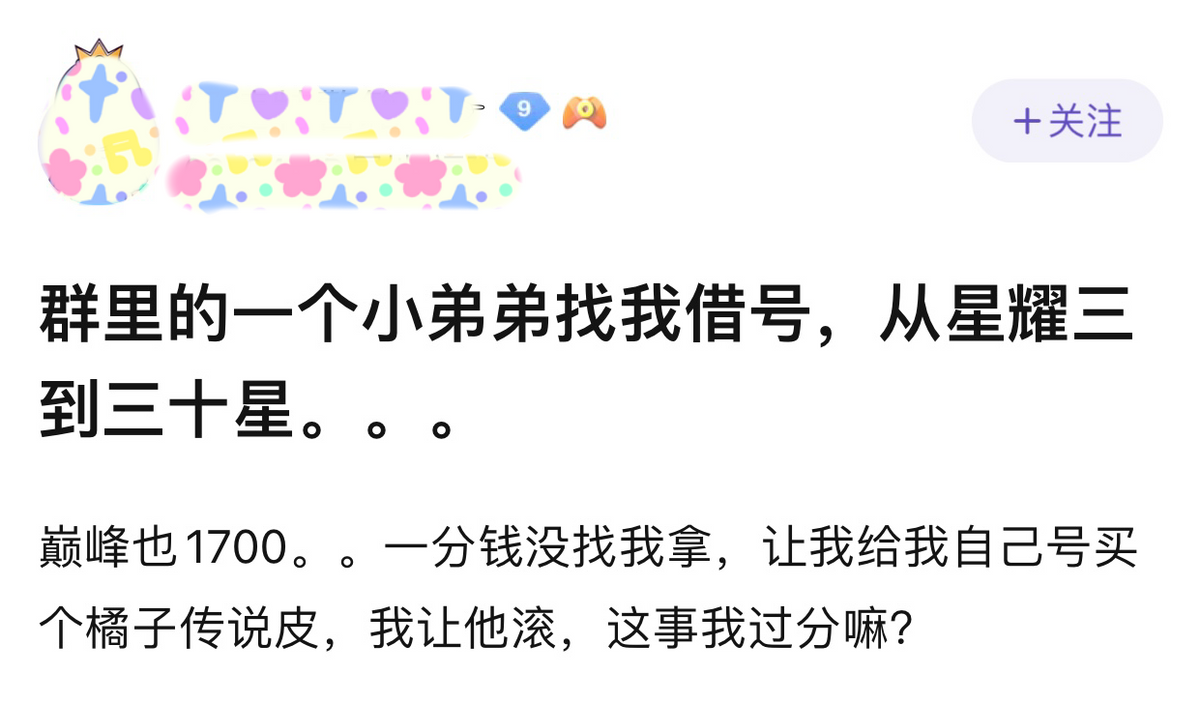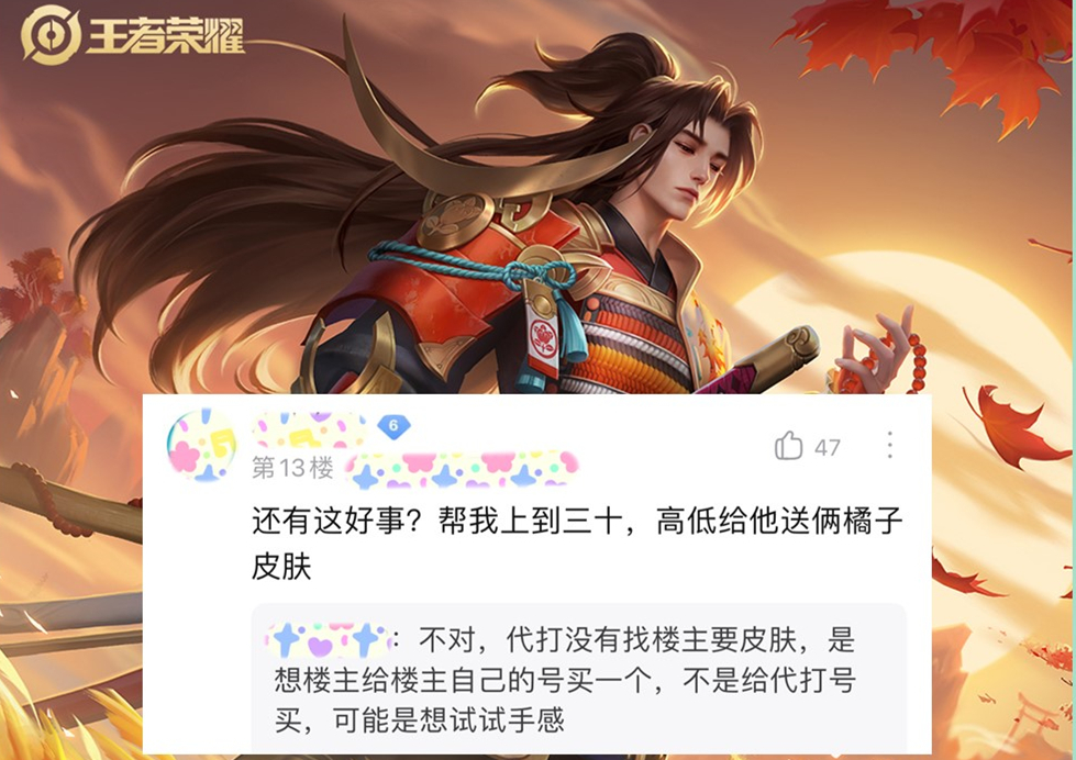 媒介:各位小搭档各人好,这里是不但游戏打得6,长得还很帅的熊猫哥哥~ 王者光彩中代打这一活动信任玩家们都不陌生了,“代打”大抵可以分为两个范例,范例一是费钱找代练帮助上分;范例二则是把号借给段位高的朋侪玩,可以大概帮助上分。 一样寻常来说,费钱找代练上分比力常见,毕竟乐意帮朋侪打号的固然有,但相较而言照旧不多。 然而这几天,某玩家碰到一个弟弟,帮自己从星耀三打上了最强王者30星! 谁人弟弟表现想让玩家在他自己的号上买一个皮肤,可以玩一玩,却遭到玩家无情拒绝,直接喊滚。 这一活动引来吃瓜群众热烈讨论,快来和熊猫哥哥一起相识一下! 某玩家共号给弟弟,弟弟帮打上王者30星,想玩个皮肤,玩家让他滚先来简单相识一下事变的颠末: 该玩家偶遇一个弟弟借王者光彩号玩,于是把自己的号借了出去,弟弟一起帮助把号从星耀打上了最强王者30星,还打了顶峰赛到1700分! 这时弟弟提出让号主买一个橘右京传说皮肤,号主不乐意,让弟弟直接滚。 这里必要夸大一个重点:弟弟是让号主买一个皮肤到号主自己的号上,而不是上分之厥后索要皮肤。 无图无原形,为了证实自己所说是真,该玩家还贴出来段位截图,简直是30星。 该玩家表现,不愿意买,但为了上更多分,先哄哄弟弟,等打上了50星光彩王者,立马拉黑。 看到这里,熊猫哥哥都不得不吐槽一句,这也叫得太绝了点! 吃瓜群众:真有这种功德?谁帮我上王者30星,我就给他买皮肤加鸡腿看完该玩家发出来的事变颠末,路人们纷纷表现:尚有这种功德吗?如果这弟弟来帮自己打到王者30星,别说买一个皮肤到自己号上,就算直接送这弟弟两个皮肤,那也是小事。 毕竟,就拿找代练来说,要打到这么高的段位,那也不是一个皮肤钱能办到的,正常情况下都会给加鸡腿。 各人纷纷感叹道:快点把这个弟弟推给我吧! 一个皮肤能看出来玩家品行,可以不买,但请不要直接叫人家滚蛋! 总的来说,玩家这种直接喊帮助上分的弟弟滚的活动,惹来各人的不承认。 如果不想买,说真话也很正常,但是弟弟毕竟帮助打了那么多分,喊人滚太太过了。 再者说,弟弟并不是来要钱,只是让号主把皮肤买在号主的号上,说白了皮肤照旧号主的,没须要态度这么差。 不管怎么样,喊人滚确实没规矩,这一波弟弟着实惨。 熊猫有话说:这位弟弟帮助打到了王者30星,只是说想玩玩某个皮肤,如许的要求真的不外分,就算自己不想买、做不到,也要跟人家好好说,而不是一个“滚”字,着实是太伤人了! 好了小搭档们,对于上述事故,你有什么不一样的见解呢?接待来品评区留言讨论,大概你有别的故事也可以私信告诉熊猫哥哥噢,爱你萌,比心~ |