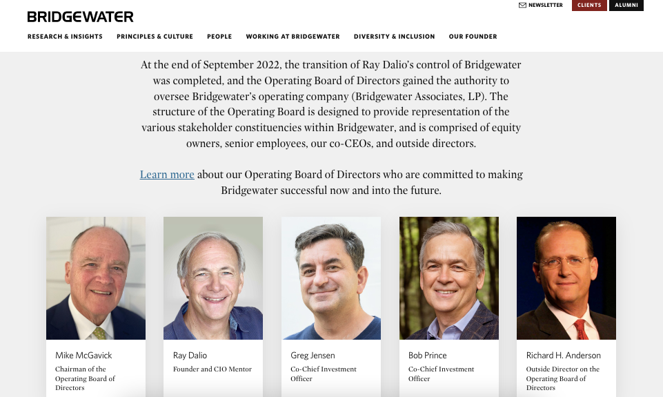 投资界一代传奇,优雅告别了。 本周,举世最大对冲基金桥水基金公布,首创人瑞·达利欧(Ray Dalio)已辞去公司三位联席首席投资官之一的职务,并将全部投票权转让给公司运营董事会。这意味着,在执掌桥水基金47年后,达利欧不再拥有桥水基金的控制权。将来,他将以首席投资官导师、运营董事会成员的身份继续为桥水基金效力。 达利欧与桥水基金无疑是投资圈的一段传奇。1949年,达利欧出生在美国一户中产家庭,从小便体现出异于他人的做生意业务头脑,12岁时就投资了第一支股票,荣幸地尝到了长处。1975年,26岁的达利欧在美国纽约一所两居室公寓中建立了桥水基金。今后,他向导桥水基金穿越危急、逆势红利,至今掌管资金约合15000亿元人民币,是举世最大对冲基金之一。 寻觅交班人12年之久,73岁高龄的达利欧如愿隐退,但传奇永不落幕,这位投资教父走过的风风雨雨皆是启示。 73岁官宣退休 桥水基金,告别达利欧期间 达利欧的“交班筹划”终于画上了句号。 早在12年前,这祖传奇对冲基金便开始酝酿交班筹划——2010年,达利欧开始筹划退出。在之后的几年里,前后曾有7人继承桥水基金的唯一或团结首席实验官,达利欧也徐徐移交了一样平常管理、投资监督以及公司的多数股权。 但探求继任者并非易事,他的交代筹划也不停未能完成。谈及退休,达利欧曾在继承采访时公开体现:“我对我的人生蹊径有清晰的规划。具体而言,在我60至70岁的时间,我须要有一个过渡——造就一个可以大概脱离我举行独立决定的交班人。最初的我太灵活了,以为两年就可以做成这件事,但厥后我把探求交班人的进度条拉长至十年,由于此中的不确定因素着实太多了。” 直到近两年,事变徐徐有了端倪。2021年12月,桥水基金公布建立运营董事会,该运营董事会负责桥水基金一样平常运营,这一董事会由首席投资官、独立董事、职工代表董事等构成。2022年1月,董事会选择Nir Bar Dea和Mark Bertolini继承联席首席实验官,随后的2月,桥水基金完成末了一步,敲定权利过渡协议,并称会在接下来的时间完成一些法律步调和羁系要求。 9月的末了一天,达利欧决定放弃桥水基金控制权,将全部投票权转让给了董事会,并辞去桥水基金三位联席首席投资官之一的职务。几天后的10月4日,桥水基金公布,该公司的控制权已经从达利欧转移到运营董事会。“瑞已不再拥有终极决定权,”联席首席实验官Nir Bar Dea在继承采访时体现。“这是一个巨大厘革。” 图源:桥水基金官网 官宣后,达利欧曾在领英(LinkedIn)上坦诚,权利交代过程并不轻易,“这是天然而然的发展;我们一做好准备,便向前推进了,”现年73岁的达利欧体现,“我不想到临死还不退下来。”即便卸任,达利欧还将会生存董事会席位,新的头衔是:首创人兼首席投资官督导。 “这一紧张里程碑是十年历程的顶点,巩固了桥水基金从首创人向导的公司向员工拥有和控制的长期机构的转型。”桥水基金在消息稿中称,“这对桥水基金来说是一个紧张的时候,尤其是对达利欧来说,标志着桥水基金的首创人和他向导了这么久的公司之间新关系的开始。 至此,桥水基金正式告别达利欧期间,“纵然桥水没了我,我仍旧以为它能成绩一番大奇迹。”达利欧曾如是说。 47年执掌15000亿 人生最艰巨的时间,一度差点停业 达利欧的传奇故事,被人津津乐道。 1949年,达利欧出生于美国长岛的一个平凡的中产阶级家庭,父亲是一名职业爵士乐手,母亲是家庭主妇。幼年时期的达利欧曾一度对学习毫无爱好,效果也很糟糕,看不出任何大概乐成的潜质。 “当我不想做什么事变的时间,我会抗拒,而当我乐于做什么的时间,什么都拦截不了我”。不喜欢学习的达利欧,热衷于打零工赢利,从8岁起开始送报纸、铲雪、做球童,还去餐馆洗碗,去百货市肆做理货员等等,并因此积聚了一些可以独立支配的钱。 12岁那年,达利欧靠做球童赚来的薪水买了第一支股票——美国东北航空,只因在听过的全部公司中,只有东北航空发行的股票低于5美元一股。厥后美国东北航空被收购,股价翻了3倍。 这是他初次涉足股市,其最初的粗浅的计谋是——买富足自制公司的股票,买的股票越多,赚的钱就越多。厥后在他的初中和高中期间履历并参加了60年代的美国股市,也让他对市场与投资产生了连续一生的爱好。 因对市场以及金融的热情,边上学边看投资的达利欧仿佛开了挂,终极以全班第一名的效果进入大学,今后进入哈佛商学院就读。从哈佛毕业后,达利欧辗转去了几家公司,任职了几份短暂的工作。 直到1975年,达利欧在他的两居室小公寓里建立了本身名为“桥水基金”(Bridge Water)的公司,斗志昂扬地拉开了本身职业投资的生活,但却在1982年迎来了人生中最大的一次失败。 这一年,由于石油代价不测下跌、墨西哥比索贬值、利率上升等缘故起因,拉美债务危急发作。彼时的达利欧断定1982年美国银行已颠末度借债给新兴市场因此带来风险,他因此大幅做空股市,但美联储的乐成兜底在达利欧的意料之外。这场判断失误险些让他输光了齐备,公司濒临停业,只剩他一人。最困难时,他向父亲借了4000美元维持生存,又卖掉家里的两辆车才熬已往。 这次低谷成为达利欧人生中最紧张的一课。“转头来看,我的屁滚尿流是在我身上发生过的最好的事变之一,由于它让我变得谦善,而我正须要谦善来均衡我的打击