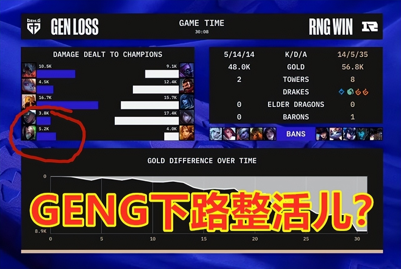 好汉同盟S12环球总决赛的小组赛,已经正式开赛。在首日的比赛中,来自LPL的三支战队JDG,EDG和RNG将率先表态。此中10月8日上午8点,将迎来JDG和EG的比赛,随后是EDG大战T1,以及RNG与GENG的对决! 在率先竣事的比赛中,LPL一号种子JDG,轻松击溃EG斩获开门红;EDG在对阵T1的比赛中,小爆冷在23分钟内,被T1轻松击溃。RNG大战GENG的比赛,又将会是一个什么样的场景呢? GENG是瞧不起RNG,还是在藏东西?对于GENG和RNG的比赛,囧王者在之前的推测文章中曾经讲到过,这场比赛的精彩之处,不但在场上。尚有一个精彩的点,在讲授台上,听听管泽元的讲授,着实也蛮故意思的。 RNG对阵GEGN,GENG蓝色方,禁用破败之王,剑姬,小炮,泰坦,卡莎,选用Doran剑魔、Peanut波比、Chovy沙皇、Ruler赛娜、Lehends炼金;RNG赤色方,禁用女警,猫咪,猪妹,滑板鞋,尼菈,选用Breathe武器大家、Wei男枪、Xiaohu冰女、GALA厄斐琉斯、Ming日女。 RNG作为LPL的四号种子,他们在入围赛上的体现,差能人意,首秀战不敌LCK的四号种子DRX。但是在晋级小组赛后的RNG,在面临LCK一号种子GENG时,貌似梦回了MSI,全程重拳出击。而反观GENG,貌似犯了EDG上一把的错误,还活在夏季赛季后赛的样子。又大概是看不起RNG?下路选出了赛娜和炼金这种不常见的组合,炼金打辅助可以,但是别配塞纳啊。否则怎么补兵?结果GENG就像S9 MSI时的SKT一样,直接悲剧了! 整场比赛看下来,RNG从比赛一开始,就轻松掌控了比赛的节奏和局面走向。GENG整活的下路双人组,并未显现出独特的差别于通例路数的攻击性。反而是整场比赛,都在隐身,以至于Ruler的赛娜只打出了3.8K,炼金术士也只打出了5.3K的输出。也便是说,GENG整场的输出,端赖超威一人,惋惜的是虎大将军大概打不外天下冠军中单,但拿捏个抖一中超威,还是轻轻松松的。 坦率地讲,RNG对GENG还真是血脉克制,不但赢下了比赛,还帮LPL在小组赛第一天克制住了LCK。而且故意思的是,囧王者在赛前就提示各人,关注讲授席上的管泽元。在RNG打决胜团时,不停负责嘴巴输出的管泽元,这一次完全进入了无声讲授模式。很有点“人类的悲欢并不相通,我只以为他们喧华”的意思了! 小组赛首日,LPL三号输LCK二号,四号赢一号。第一天,LPL不亏!在RNG击败GENG后,小组赛首日的比赛就全部竣事了。FNC和T1分列A组前两名;DK和JDG分列B组前两名;CFO和RNG分列D组前两名;C组首日轮空。也就是说,小组赛首日,LPL三号输LCK二号,四号赢一号。第一天,LPL不亏,乃至尚有点小赚! |