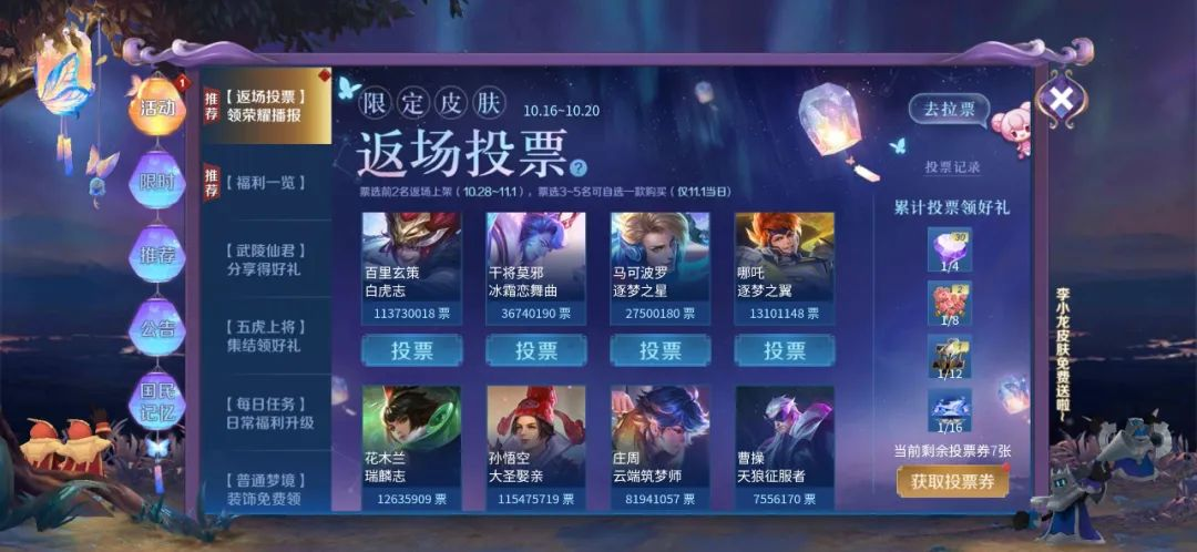 王者光彩将在本月尾举行七周年庆,而本日已经正式开启相干预热,接下来将连续曝光周年庆的新运动。根据以往的运动规律,有几个大运动是必上的,我们一起来看看: 1、周年庆返场运动 王者预计将在下周开启返场投票运动,届时会根据票数返场前五款限定皮肤,但每位玩家限购三款。(下图为客岁投票运动) 2、蔷薇之心运动 玩家通过累计登录和完成使命得到蔷薇之心,可在珍宝阁兑换永世专属皮肤,每次运动至少产出25个蔷薇之心,这次大概会产出35个。 3、永世皮肤运动 玩家通过完成指定使命,即可必得永世皮肤/好汉宝箱,使命比力简朴但每年都不一样。 4、周年限定皮肤运动 到场周年庆专属运动,免费必得全新周年限定皮肤,该皮肤属于史诗风致,有大概是鬼谷子的新皮肤。 别的,下一款FMVP皮肤已经正式官宣,子阳在操控三个篮球围绕本身,以此暗示:东皇太一将推出首款传说皮肤。(打篮球的东皇太一真是太棒了,画面感已经来了) 综上,四大周年庆运动将在本月尾全面开启,届时还会有充值运动和积分夺宝运动上线助阵。而东皇太一的FMVP皮肤预计将在来岁上半年推出,首周运动扣头962点券,属于传说风致。更多王者光彩最新资讯,请关注玉面小白狐! |