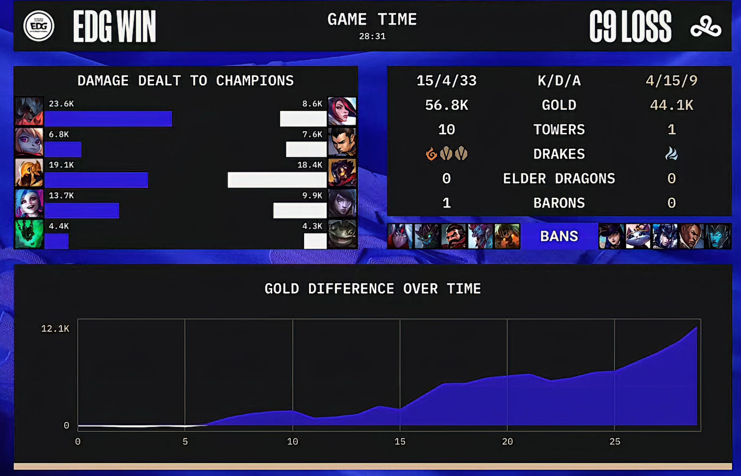 本日10月9号好汉同盟S12小组赛,由EDG战队对抗C9战队。上场T1战队输给FNC,使得A组局面变得非常严肃,成为名副实在的殒命之组!幸亏EDG战队不再掉链子,轻松碾压C9取得天下赛首胜,圣枪哥用剑魔暴打剑姬,让我们看看双方阵容! EDG战队选用剑魔、波比、沙皇、金克丝、锤石;C9战队选用剑姬、赵信、维克托、厄斐琉斯、塔姆。 前期EDG战队轮番帮中,帮Scout沙皇拿到一血四杀。圣枪哥玩剑魔一偶尔机就游中给压力,效果他的补刀还能领先对面剑姬,也是让人看不懂了。 中期EDG队员轮番开秀,剑魔TP增援反杀赵信,锤石预判闪现钩加极限灯笼,沙皇造墙共同波比壁咚,直接把C9战队打麻了,经济瞬间拉开差距。后期C9战队已经没得打了,剑姬单带打不外剑魔,打团没先手没伤害,EDG轻松碾压赢得天下赛首胜! 总结:这场角逐EDG战队根本全线碾压,每个位置都是完爆,特殊是上路位置最为显着,剑魔打剑姬能连续游走三波中路,补刀连续领先压抑,末了打出全场最高输出!昨天EDG上单被T1剑姬通关,网友还担心圣枪哥应付不了剑姬,现在看来岂非只是奥恩的标题?呼吸哥乐成证明本身,粉丝体现剑魔的每一刀都劈在茂凯锻练的脸上,以后别再给上路选肉抗压了! 而Meiko锤石也是动员全场节奏,各种灯笼及时救难,钩子跟有磁铁一样,对方螺旋走位末了都要往钩子上撞,不愧是职业生活高达80%胜率的锤石! C9战队两连败估计凉了,而北美队伍在主场已经小组赛五连败,感觉他们都已经被打懵了。赛后C9辅助晕乎乎地摒挡键盘,他似乎还沉醉在Meiko的钩子里,忘记跟EDG队员握手,末了照旧Meiko绕到他眼条件示他的。 EDG战队取得天下赛首胜,队员状态有所好转,盼望他们接下来的角逐还能继承打出这种体现吧! |