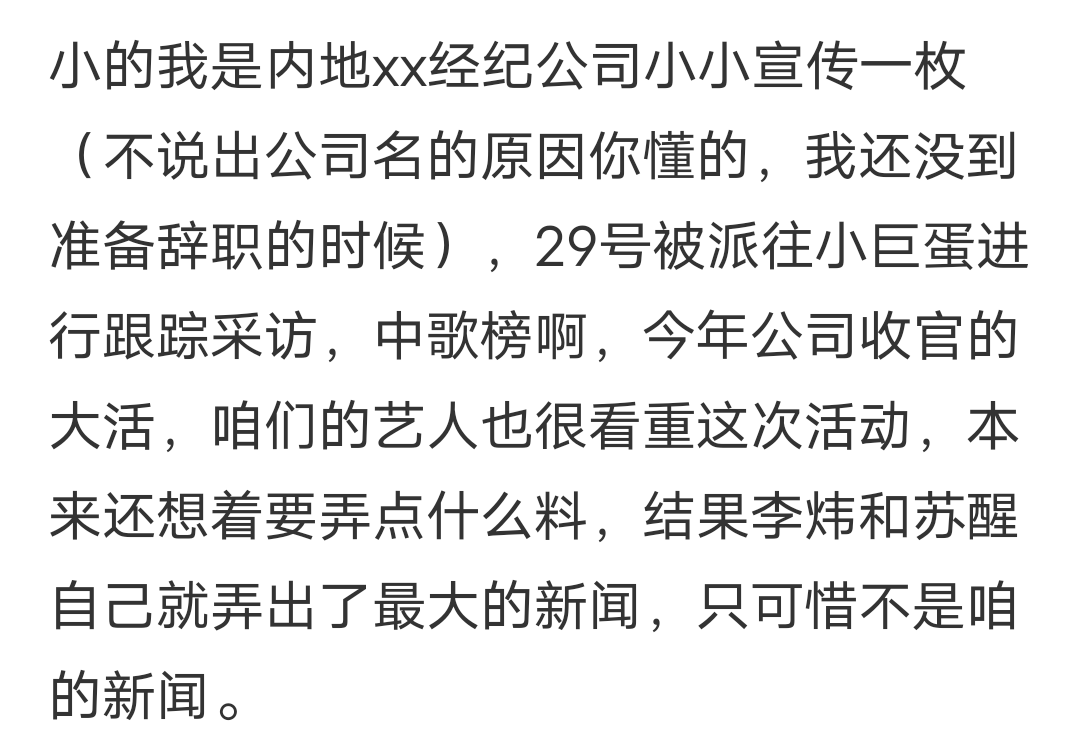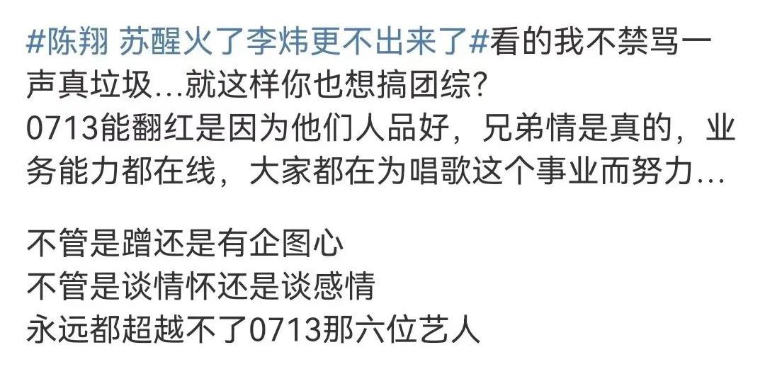 废姐是真的没想到啊,2022年了,竟然还能看到陈翔、清醒、李炜这三个名字并倾轧现 点进去一看,原来是10月6号,陈翔和曾经一起到场10届快男的武艺、李行亮、谭杰希、刘心等人一起连麦直播。 不知道是不是近来0713男团的翻红让陈翔看到了渴望,他说他们也可以搞个团综,还大言不惭地让武艺投钱 说着说着就聊到了那一年的冠军李炜,陈翔说近来李炜挺佛系,李行亮接了一句:冠军嘛,神龙见首不见尾。 原来以为只是任意提一句,说说近况,没想到陈翔忽然蹦出来一句:清醒火了之后,李炜就更不出现了 清醒和李炜!?废姐一瞬间都不敢信托本身的耳朵,这是可以说的吗? 陈翔不但要说,乃至还似乎恐怕别人没听清一样,又重复了一遍 看小框里的两位,李行亮的笑容都僵硬了,武艺乃至尴尬到玩起了头发。 就连陈翔旁边的刘心都不由得入镜吐槽:你这话让人怎么接 屏幕外的废姐也已经尴尬到抠出了一套城堡。 然而,就算是如许,陈翔也依然不肯放过这个让全部人都尴尬的话题。 他表现团综是他们本身的,跟清醒无关,还硬cue了一句本身是西北人以是语言就是直 被代表的西北人:别来沾边。 最尴尬的是,李炜厥后真来了,陈翔仍然不肯停下,竖动手指让直播间的观众不要刷谁各人(清醒)的名字 还教导观众,说李炜和清醒之间的恩怨都是夫君的小变乱,不要过头其辞 不是,怎么还倒打一耙了?最早提起李炜和清醒,不是你本身吗? 2012年的鱼圈还没有被“税”和“睡”刷屏,瓜的口胃都还比力小清新。 在如许的大情况下,“配景打人变乱”的横空出世,可以说是引起了轩然大波,至今回过头去看都以为极其精彩。 2012年,中歌会竣事以后,有媒体爆料说清醒和李炜在配景打起来了 另有当时在场的艺人爆料,说清醒打人的时间,苏息室另有其他十几个艺人在,但是没有人出来劝架,就连被打的李炜,厥后都只是回到本身座位上坐好,没有其他任何反应。 而当时的苏息室,根本都是芒果台的艺人。 这事刚出来的时间,有人说是炒作,究竟两个人都是明星,没须要在这么大型的运动配景干架。 而且当年李炜到场快男的时间,清醒是他的帮唱高朋 两个人厥后还一起到场过其他运动,看起来关系不错,不像是会打斗的样子。 但是很快,就有自称是圈内人的网友出来爆料,说这件事是真的。 不但云云,该网友还爆料说,着实当时打起来的时间,是有人想要去劝架的,但是被疑似知道本相的人拉住了 而整个打人过程中,李炜始终没有还手,不停到安保过来把清醒拉走,他才从地上爬起来,眼中还含着泪。 这画面感还怪强的…… 至于到底为什么打人,很简朴,由于一个女人。 李炜当时有一个小号,用来发发工作和一样平常生存中的怨言 至于为什么能确定这个号是李炜的呢? 是由于2011年1月破晓2点,小号发了一张衣服照片,半个小时后,李炜的大号也发了 顺着这条线索,李炜的小号被挖了个底朝天,内容都很劲爆。 而此中最劲爆的,是他和一个女生的合照,原图有点少儿不宜的那种。也不知道他怎么想的,给本身的脸打了码,却没给女生打。 于是就依附着女生暴露来的这半张脸,网友很快扒出,这个女生是清醒当时的女友夏航燕,曾经出演过清醒的MV。 以这种方式知道本身被绿,清醒的愤怒可想而知。 他发了一条动态说本身要以最猛烈的方式完成2012年末了的演出。 不得不说,打人这种方式确实很猛烈…… 过后,李炜发文,说整件变乱和本身不要紧,究竟本身都没有还手。 清醒则是用苹果的比喻说了下他眼中变乱的原委,大概就是本身和李炜是兄弟,李炜劈面和他说只身,背地里却偷他的女友。 厥后这条动态删了,清醒又写了首“藏头诗”:wb为公司而撤,打小三决不手软。 李炜不甘示弱,也玩起了“藏头诗”:新年另有许多事,我没空和小人玩。 至于夏航燕,则是痛骂李炜不是夫君。 劈叉、艳照、快男、殴打、写“藏头诗”开骂,一系列的buff加持让这件事成为了2013年年初最大的瓜。 乃至还衍生出了“张杰关门”这种神传言。 废姐吃完这瓜,感觉陈翔这人真的一点X数都没有,不说李炜这事闹得有多大,就他本身一个被锤进地心的出轨男,竟然还想出来搞团综!? 他出轨江铠同,结果被毛晓彤当场捉住的事,可比“配景打人变乱”还要近几年呢。 点击上图即可回首文章 更何况,他想要复制再就业男团的乐成,也要看看他们的塑料兄弟情够不敷分量吧? 2019年的时间,武艺在综艺节目说快男角逐竣事九年,各人从来没有聚齐过 各人天南海北的,又各自都有工作,聚不齐也未可厚非,私底下不停有接洽也是好兄弟。 可陈翔本身都说过倾心清醒他们那届快男的感情,说10届快男私底下根本不怎么接洽 不怎么接洽的“好兄弟”凑在一起录节目,真的不会尴尬吗?照旧说到了镜头前,统统都靠“演”? 可他演得好吗? 借武艺的光,他上《我家那小子》,大张伟很奇怪他们俩为啥不坐商务舱 陈翔:武艺太抠了,给我们订了经济舱。 隔壁维嘉的手都没能克制陈翔的口无遮拦...... 乃至,他还骗武艺把面膜扔了,然后又从垃圾桶里捡起来让武艺重新敷 真就陵暴武艺人傻呗 就像网友说的,0713男团能乐成“再就业”,靠的是积极、朴拙、才气,以及一点点情怀 他们是真的相识相互,以是玩梗也玩得恰到长处,不会让人尴尬,只会让人以为可笑。 玩过笑过,也有让人感动和泪目标时间,但那也不是硬煽情,是这么多年来,他们对音乐,对本身,对朋侪的真情表露。 