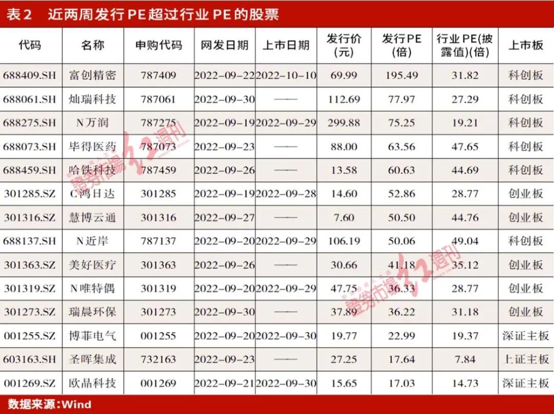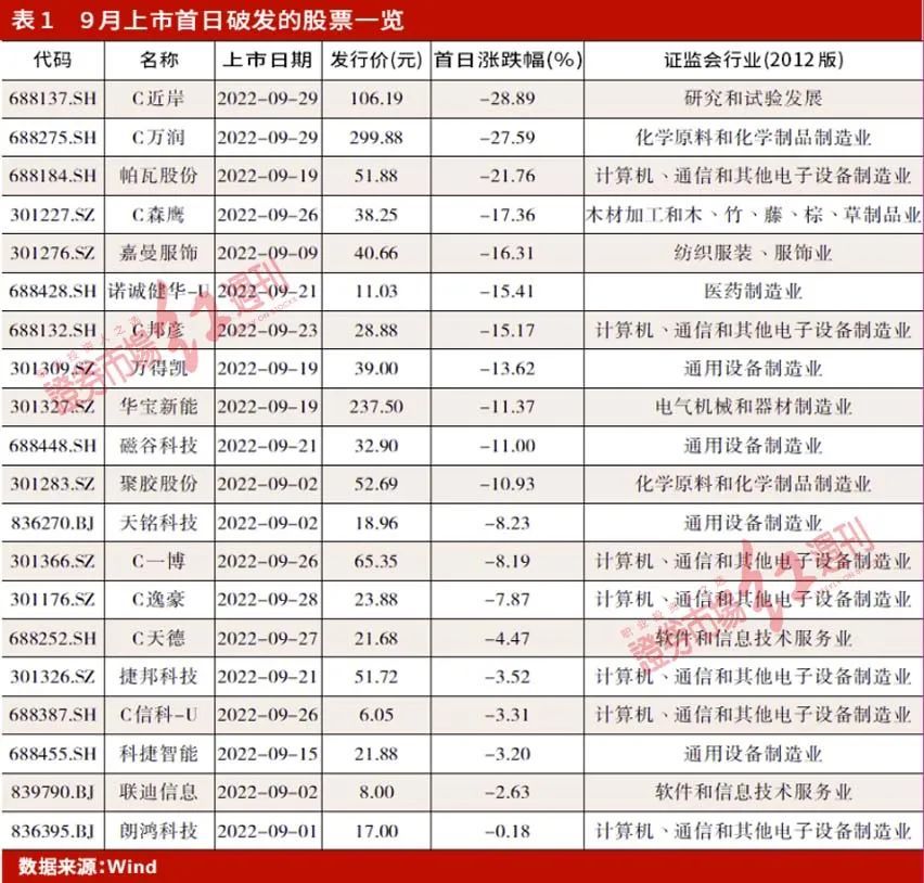 红周刊丨汪佳蕊 本年9月以来,A股市场新股上市首日破发的征象增多。以本周发行的新股为例(9月26日至9月30日),A股新发行的17只新股中,出现上市当日破发的有7家,破发率到达41.18%。国元证券以为,市场行情是新股破发的一大影响因素,在市场行情较好时,不易出铣善发征象,而在市场下行期,破发潮更易出现。 《红周刊》留意到,近期受市场情况、宏观经济、行业颠簸等多重因素影响,二级市场避险感情升温,叠加注册制新股中存在市盈率与发行价相对过高等因素,都成为了新股出现上市首日大面积破发的背后推手。更加值得留意的是,在市场感情较为低迷的情况下,业绩表现不佳的个股破发几率更高,须要多加留意。 9月新股首日破发率达四成 根据Wind数据表现,A股在9月份共有50只新股上市,此中有20只股票在上市当日破发(具体名单见表1),破发率到达40%,远超7月23.53%和8月10.2%的破发率。 仅从本周发行的17只新股来看,就有7家公司出现首日破发的征象,此中,近岸卵白发行首日的下跌幅度最大,跌幅达28.89%。而周一(9月26日)上市的4只新股中,有3只破发,此中“木柴加工和木、竹、藤、棕、草成品业”公司森鹰窗业当日下跌幅度最大,跌幅达17.36%。 值得留意的是,新股再次出现大面积破发,与询价新规的修订或有肯定关系。2021年9月18日,证监会、上交所、厚交所及证券业协会同步发行一系列文件,对注册制板块承销制度举行修订,重点对网下询价制度举行了修订,将高价剔除比例由原来的“不低于10%”降至“不凌驾3%、不低于1%”,同时简化投行突破“四数孰低”定价的流程。 在询价新规下,“高剔”比例低沉以及突破“四数孰低”定价使得新股定价权由原来的买方市场向卖方转移,新股定价中枢上移,使得新股的发行价与发行市盈率相比之前有所抬高,而这便是新股破发征象增多的重要缘故原由之一。 华金证券宏观战略团队李蕙表现,我们倾向于以为注册制新股大比例破发征象,大概将成为倒逼一级市场发行定价回归的告急推手,而发行定价渐趋平抑或将真正打开新股打新及二级市场的投资空间,新一轮的新股趋势性投资时机大概将在不久之后迎来曙光。 市盈率与发行价过高是破发重要推手 新股破发征象的出现每每与高市盈率、高发行价脱不开干系。李蕙指出,从8月首周注册制新股开板市盈率见顶以来,在定价博弈加剧的配景下,开板市盈率已经渐渐回归,新股定价下修周期显着可见开启,但停止当前,新股定价博弈尚未真正传导至发行端,新股发行市盈率仍然未有明显走低迹象。 回顾近两周新股网上申购情况,《红周刊》留意到,部门公司的发行代价和发行市盈率存在“双高”的情况。 以表2所示企业为例,富创细密、近岸卵白等企业均是发行市盈率与发行代价双高的新股,慧博云通、哈铁科技等企业的发行市盈率也处于较高状态。此中,本年最贵新股也位列此中,9月29日上市首日及破发,股价一度下跌30%。 富创细密是国内半导体装备细密零部件的领军企业,也是环球为数不多的可以或许量产应用于7纳米工艺制程半导体装备的细密零部件制造商,公司产物为半导体装备、泛半导体装备及其他范畴的细密零部件。富创细密基于半导体装备国产化趋势,公司积极开发境内市场,产物已进入包罗北方华创、中微公司、拓荆科技、华海清科、芯源微等主流国产半导体装备厂商,保障了我国半导体产业供应链安全。而富创细密本次的发行代价为69.99元/股,发行市盈率195.49倍,行业匀称参考市盈率为31.82倍,发行市盈率凌驾行业匀称市盈率6倍,是近两周网申发行市盈率最高的企业。 从发行代价的角度来看,近两周处于20元以上的高价股也不在少数,突破百元的也有数家,且会集于“双创”板块。以一博科技为例,其上市板块均为创业板,此中,一博科技的发行代价是65.35元,属于高价股范畴,其发行首日开盘即下跌12.78%,收盘时报60.00元跌幅为8.19%,亏钱效应显着,若投资者在盘中最低点55.7元卖出,中一签将亏4825元。 近期,新股反复破发,而且在破发的新股中,有很大一部门都是发行代价和市盈率偏高的公司,这意味着高发行代价和高市盈率企业上市后,破发风险会更高,在而这部门企业是否具备高发展性和投资代价以维持当前股价是值得投资者审慎评估的。 业绩表现不佳个股需留意 重新股破发特性情况来看,红利本领仍然是告急影响因素,未红利的公司破发比率更高。而且,新股破发占比会随着发行代价、首发比行业市盈率、前20个买卖业务日发行新股数量和前20个买卖业务日发行新股的首发召募资金总额的上升而增大。别的,市场行情也是新股破发的一大影响因素,在市场行情较好时,不易出铣善发征象,而在市场下行期,破发潮更易出现。 从市场情况来看,近期A股连续调解,在肯定水平上导致投资者避险感情升温,发行代价及发行PE较高的企业首当其冲受到打击。但须要留意的是,纵然大盘感情颠簸加剧,新股定价颇高,但假如新股自身谋划状态、业绩表现较好,且具备发展空间和投资代价,恒久来看,破发的个股照旧会赢得市场认可。因此,在低迷市场下,业绩表现不佳的个股须要多加警惕。 以上周网上申购的星环科技为例,星环科技是一家大数据底子软件开发商,由于陈诉期内三年净利润皆为负值而备受市场关注。 星环科技围绕数据的集成、存储、管理、建模、分析、发掘和流通等数据全