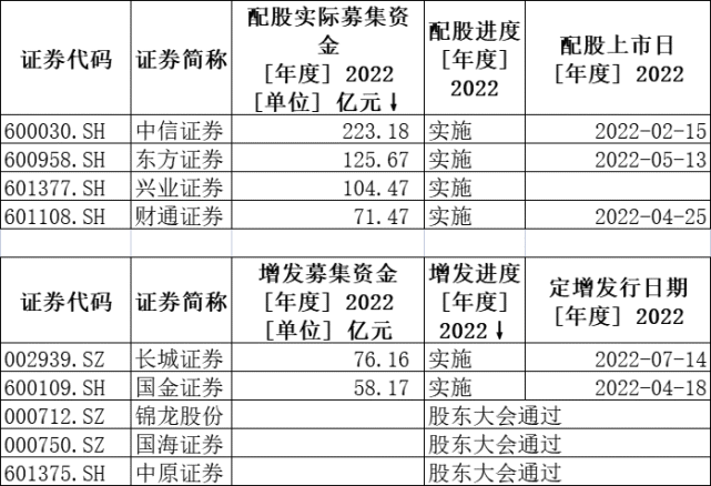 证券行业又有百亿级融资操持正在推进。 8月17日,兴业证券(601377.SH)配股发行进入缴款期,此次配股召募资金总额140亿元,配股代价为5.2元/股。客岁8月,兴业证券发布配股预案,历时八个月获批。 140亿的配股募资规模,在行业里排名火线。记者关注到,2020年至今,仅有中信证券(600030.SH)、招商证券(600999.SH)、东方证券(600958.SH)完成百亿规模以上配股。 在行业竞争日趋白热化的配景下,券商比年来加速增补资源金,定增、配股、短融齐上阵。记者统计发现,年内至今,长城证券(002939.SZ)、国金证券(600109.SH)定增落地,东方证券、财通证券(601108.SH)、中信证券完成配股。别的,部门券商已发布再融资预案,涉及中原证券(601375.SH)、国海证券(000750.SZ)。 资笔菩介业务和投资交易业务业务,成为多家券商募资的重要投向。北方某券商非银分析人士告诉记者,增补资源金、扩大规模是行业趋势,比年券商着力发展资笔菩介业务及创新型业务,这对券商的资源力气提出了更高要求,各家机构融资动力富足。 半数募资款投向两融业务 据配股阐明书,兴业证券此次配股代价为5.2元/股,拟以实验本次配股方案的股权登记日(配股股权登记日)收市后的股份总数为基数,按照每10股配售3股的比例向全体股东配售。若以公司停止2021年12月31日的总股本66.97亿股为基数测算,此次配售股份数目总计20.09亿股。 从发布预案到获批,兴业证券配股历时近八个月。配股方案经客岁8月24日的董事会、9月9日的股东大会审议通过。本年4月28日,证监会答应兴业证券配股事项。 值得一提的是,兴业证券配股消息公布后,该股股价曾大幅下跌。配股预案发布越日(2021年8月25日),兴业证券盘中跌停,当日市值蒸发逾70亿元,券商板块当日也团体下行。此前,东方证券客岁3月披露配股预案后,也曾履历大跌。 从募资规模来看,兴业证券操持募资总额达140亿元,规模在行业中排名火线。据配股阐明书,此次配股召募资金总额预计为不凌驾140亿元(具体规模视发行时市场情况而定),五成募资额投向两融业务。 具体来看,百亿募资款的分配上,发展融资融券业务不凌驾70亿元、发展投资交易业务业务不凌驾45亿元、投资银行业务不凌驾18亿元,别的不凌驾7亿元将用于加大信息体系和合规风控投入。 兴业证券称,近些年,公司构建多条理券源体系,多渠道扩充融券券源,两融业务市场份额一连提升,构建了较好的增长态势。 据公司2021年年报,公司融资融券业务期末余额 335.87 亿元,较2020年年末增长9%;客岁整年实现融资融券利钱收入20.75 亿元,同比增长35%,市场份额提升至1.81%。 “但是融资融券业务是资源斲丧型业务,受净资源规模限定,公司业务一连增长面对较大瓶颈,亟需增补净资源,打开业务增长空间,保障业务规模一连增长。”兴业证券称。 业绩体现方面,2021年整年,兴业证券实现业务收入189.72 亿元,同比增长7.92%;净利润58.55亿元,同比增长27.74%。本年一季度,兴业证券营收、净利润双双大降,实现业务收入16.88亿元,同比降落69.34%;净利润1.56亿元,同比降落86.93%。 “补血”消息反复,部门券商调解方案 比年来,券商纷纷通过定增、配股等方式增补资源金。年内至今,已有5家券商实验定增或配股。 此中,长城证券、国金证券已实验定增,前者募资76.16亿元,后者58.17亿元。中信证券、财通证券、东方证券完成定增,实际募资额为223.18亿元、71.47亿元和125.67亿元。 若兴业证券配股顺遂完成,有望成为中信证券之后年内第二大规模的券业再融资项目。 值得一提的是,部门券商曾调解再融资方案,募资总额缩水。 客岁7月,长城证券发布定增操持,拟以非公开发行方式召募资金不凌驾100亿元,当年9月获证监会受理。 本年2月19日,长城证券发布了《关于调解公司非公开发行A股股票方案的公告》,募资总额从100亿元降至86.64亿元,50亿投向资笔菩介业务,25亿投向证券投资业务,9.64亿用于归还债务。 彼时,公司两大股东深圳能源、深圳新江南退出定增认购。 “券商调解再融资方案大概有多方面缘故因由,市场情况影响、个别公司情况变革等。”上述非银分析师表现。 近期,百亿定增停止两个多月后,新三板挂牌券商粤开证券(830899.NQ)重启该事项,但募资额大幅缩水。 据粤开证券7月29日发布的股票定向发行阐明书,公司拟发行股份数目30.3亿股,拟召募资金50亿元,逾半数募资款拟投向以两融为主的光荣业务以及自业务务。 该定增方案较此前版本有大幅修改。早在客岁4月,粤开证券发布定增方案,拟发行股数约83.33亿股,拟召募资金150亿元。 |