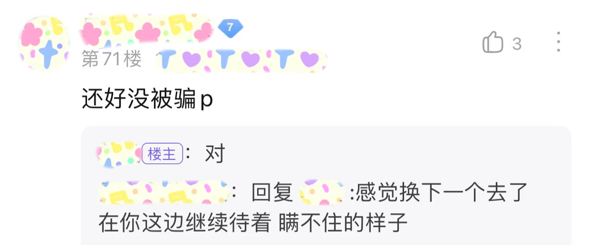 前言:各位小同伴各人好,这里是不但游戏打得6,长得还很帅的熊猫哥哥~ 王者光彩中网恋处cp是再常见不外的事,有许多玩家都想找一个人和自已一起玩,甜蜜双排,岂不乐哉,也简直有不少玩家在王者峡谷里找到了另一半。 但网恋的玩家这么多,不大概每一对都圆圆满满,信任各人瓜也吃了不少,最多的就是渣男、渣女、骗钱等等,都已经是见责不怪。 然而,这几天就有一个女玩家,网恋遇到的事还真挺离谱。 女玩家表现本身和国服露娜奔现,奔现当天甜蜜蜜,当晚本身回家睡觉,第二天睡醒就发现被删了,顺藤摸瓜还找到了许多“受害者”,到底怎么回事,快来和熊猫哥哥一起相识一下! 女玩家和国服露娜奔现,奔现时甜甜蜜蜜,之后被秒删女玩家详细地陈诉了事故颠末,熊猫哥哥来为各人梳理一下时间线: 起首,两人是在贴吧熟悉,女玩家发帖找对象,这位国服露娜恰悦目到,两人看对了眼,顺理成章在一起。 在一起之后,两人相处得很甜蜜,国服露娜打票据时会给女玩家开直播,寻常还少不了红包。 听女玩家的形貌,熊猫哥哥都不得不说一句,这是什么神仙爱情! 相处得比力开心,再加上两人间隔比力近,一个多月之后,女玩家就答应在国庆期间和国服露娜奔现,国服露娜还“亲手”做了礼物送给女玩家。 熊猫哥哥乍一看,这不是上某刀刀淘的吗?女玩家还是太单纯了点! 接着,女玩家形貌了一些奔现时的细节,看起来还是挺甜蜜的,也没有见光死。 当晚女玩家选择回家睡觉,没有和国服露娜在一起。 接着令人不明白的操纵来了,第二天女玩家收到国服露娜发来的小作文,并发现已经被删了挚友。 惊现国服露娜前任,一样的套路骗了好几个女孩子,真的绝!女玩家表现没想明白,怎么就变成如许了呢?发帖来问问,没想到遇到同样的“受害者”——谁人国服露娜的前任。 两人加上聊了一会,才发现千篇划一的套路,同样是奔现之后立马分手。 奔现时送的礼物也是一样的“纯手工”,奔现后发的小作文也是千篇划一,真的绝。 女玩家这才明白过来,原来这国服露娜最善于的就是奔现后分手,说好了,就是诱骗感情。 吃瓜群众:还好没受骗,也算是不幸中的万幸,真适当心看完女玩家的遭遇,路人们纷纷表现,真的太可骇了,居然有人能伪装这么久,就为了那不堪入目标一些警惕思。 装蜜意,实则玩弄感情于股掌之间,分手之后无缝下一个女生,这岂非就是国服露娜的“月下无穷连”? 唯一值得光荣的是,女玩家没有真的受骗什么,就当长个教导,以后不要轻易信任别人。 熊猫有话说:爱情是很精美的事儿,网恋也一样。 不外熊猫哥哥还是要奉劝各人,纵然在实际中爱情都会遇到故意不良的人,更别提游戏中的网恋! 固然这都是个人的选择,但是隔着网络,真的更轻易遇到心思不纯正的人,肯定要警惕区分,否则大概会因看错人而带来很不好的结果! 好了小同伴们,对于上述事故,你有什么不一样的见解呢?欢迎来品评区留言讨论,大概你有别的故事也可以私信告诉熊猫哥哥噢,爱你萌,比心~ |
