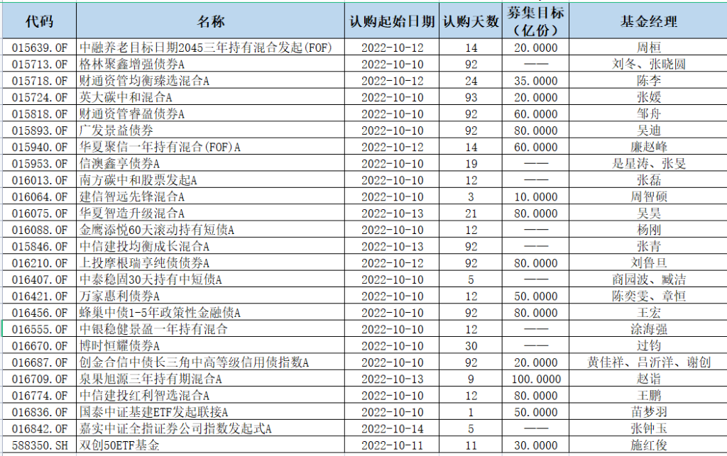 国庆节后首周,“债热股冷”的局面初现端倪。 这固然是由于债基在数目与品种的热度双双攀升;但亦“沾恩”于股基的批量缺席。 不外,下周登场的基金大佬不少,既有债市大佬,也有新锐基金王者。不谋而合结构新债基,好像要在本月决一胜负。 四序度首月的基金王者大概下周就要呼之欲出。 债热股冷据Choice数据统计表现,未来一周(10月10日至10月14日),将有26只新基金进入发行步调。此中,近2/3的新基“扎堆”节后首日(10月10日)发行。 从投资范例来看,此次发行的新基中,债券型基金为11只,肴杂型基金为9只,股票型基金为4只,FOF为2只。 从肴杂型基金来看,中信建投在未来一周推出了“组合牌”:张青管理的中信建投平衡发展肴杂A和王鹏管理的中信建投红利智选肴杂A。 别的,债券型基金发行品种最为丰富。除常见的纯债、短债和积极性债券范例外,另有利率债和名誉债,分别为王宏管理的蜂巢中债1-5年政策性金融债A和黄佳祥等人管理的创金合信中债长三角中高品级名誉债指数A。 大佬上场结构从10月已确定的46只新基来看,债基不光在数目上“吊打”9月,也吸引了着名基金司理的蜂拥结构。 此中,不乏大佬的身影。10月10日,从业18年的公募宿将过钧将发行新债基——博时恒耀债券A。 自2016年以来,这位债基大佬渐渐将自己的工作重点从债券型基金发散到肴杂型基金,这次不啻为其的重磅回归。 而且,从汗青上看,过钧的债基排名乃至要高于他名声在外的肴杂类产物。 除了过钧外,新锐权益类基金司理群体中也上演着“加码”债基的剧情。 10月10日,万家惠利债券将登场。近两年业绩突出的章恒这回跨刀出战争。章恒在已往两年内,权益类基金业绩进入行业“三甲”。 相比于上述两位基金司理,是星涛加入管理即将发行的信澳鑫享债券A颇为风趣,这是他任职基金司理6年来首只新债基。 斲丧发行回暖四序度的新基不再拘泥于新能源和半导体,新的赛道面貌纷纷涌现。 未来一周(10月10日至10月14日),寂静许久的金融地产赛道基金迎“新”。10月14日,张钟玉管理的嘉实中证全指证券公司指数发起式A将进入发行步调。 9月中旬以来,碳中和赛道渐渐升温,发行数目根本到达以周为单位。 10月10日,张媛管理的英大碳中和肴杂A以及张磊管理的南边碳中和股票发起A同时进入发行步调。这两只风格、赛道和发行节点“相撞”的新基,谁体现得会更好,值得推测。 从10月已确定的46只新基来看,前三季度饱受业绩打击的斲丧赛道也不再陷入发行“停滞”,在10月下旬迎来2只新基。 别的,主打养老赛道的FOF基金虽在发行数目上厘革不大,但相对于9月扎堆的一年期,10月的养老FOF新基产物根本上以长周期为主。 10月的养老FOF新基体现,相比于9月会怎样呢? |