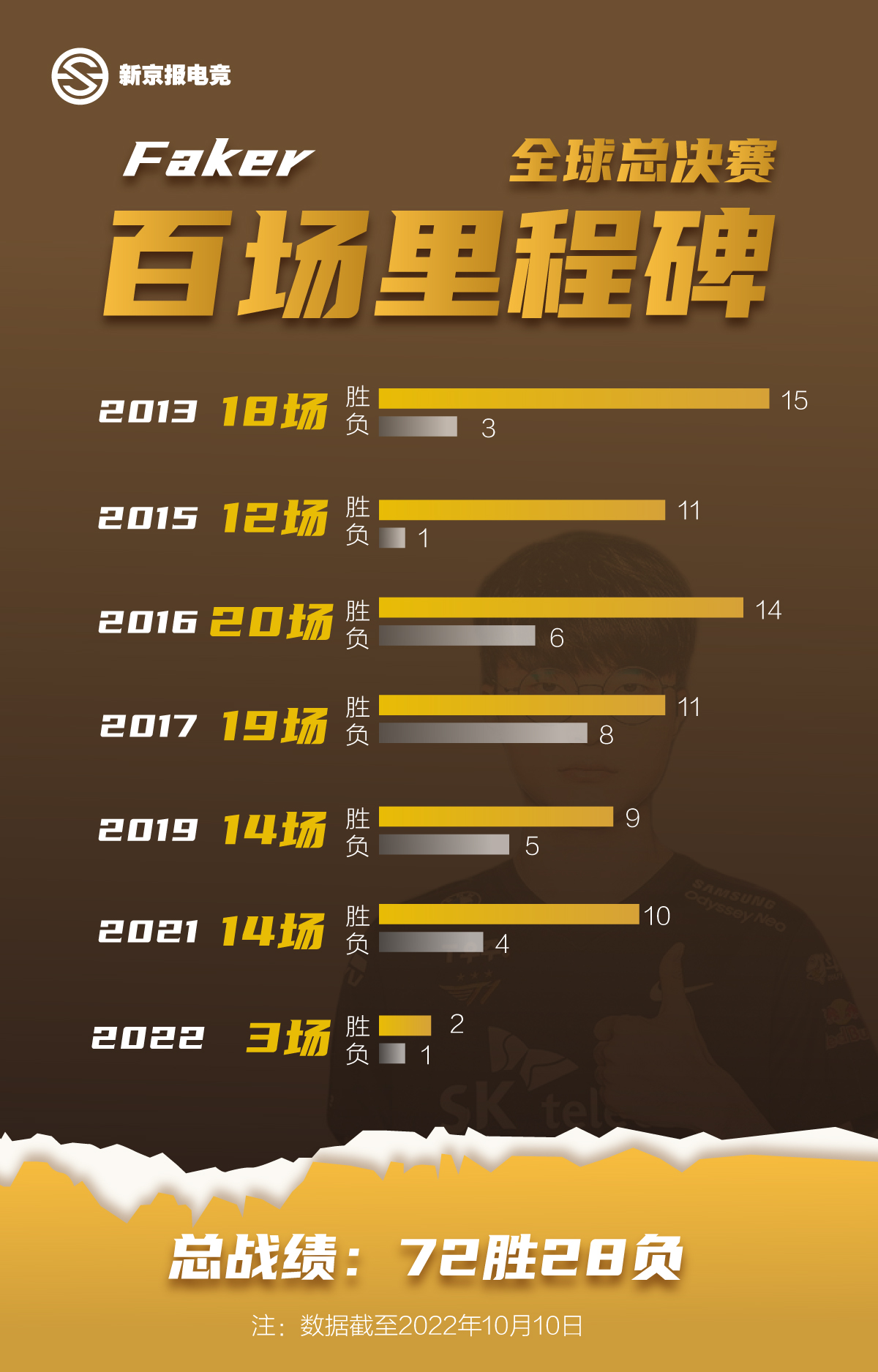 新京报讯 (记者赵雪)北京时间10月10日,2022豪杰同盟环球总决赛S12进入到小组赛第三个比赛日的争取。在当日第四场对决中,来自韩国LCK赛区的T1战队中单选手李相赫(ID:Faker)解锁了个人在环球总决赛的新结果:总进场数到达100场,他也是首位在环球总决赛舞台上告竣这一结果的选手。 回顾李相赫在环球总决赛舞台的体现,不难懂白其外号“大魔王”的由来。S3赛季,初出茅庐的他就捧起了总冠军奖杯。S5、S6连夺两冠,李相赫成为“三冠王”。S3赛季至今,他仅在2014年、2018年和2020年缺席过环球总决赛。本年再度出征,李相赫开启了个人的第七次环球总决赛之旅。值得一提的是,迄今为止,“大魔王”在环球总决赛上拿到的最差结果是四强。 作为LCK二号种子,本年T1直通小组赛。首轮四个比赛日的比赛,T1仅在前三日各有一场对决。这让环球总决赛登场次数已达97场的李相赫恰恰能在小组赛首轮实现第100次表态。 在这个极具意义的比赛日,T1被安排在第四场出战,与其比武的队伍是来自北美LCS赛区的C9战队。李相赫使用豪杰丽桑卓资助队伍拿下胜利。赛后采访中李相赫表现,能成为第一个进场百次的选手感觉非常故意义,同时,能以胜利告竣这一结果也非常开心。 编辑 张云锋 制图 张瑶 校对 赵琳 |