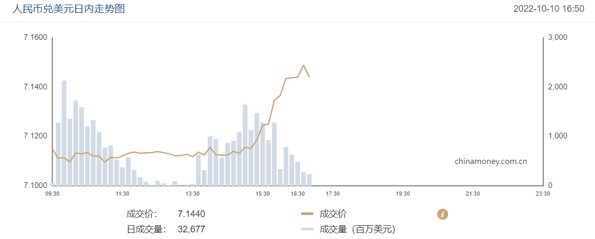 国庆假期后的首个生意业务日,人民币对美元即期汇率在邻近白天收盘时扩大跌幅至超500点。 10月10日,人民币对美元即期汇率以7.1135开盘,午后跌幅扩大,16:30白天收盘报7.1440,较上一生意业务日跌509个基点。 人民币对美元即期汇率10月10日走势图(泉源:中国钱币网) 在人民币对美元即期汇率走低的同时,美元指数直线拉升,大涨超0.4%并升破113关口,最高至113.31。 中国外汇生意业务中央的数据表现,10月10日人民币对美元中心价报7.0992,调升6个基点。 “从本日中心价表现看还是表现出维稳的意味,不外9月非农数据表现略超预期支持了美元指数走高。”某股份制银行外汇生意业务员表现。 “本次国庆期间离岸人民币对美元先贬后升,团体维持区间震荡。共同远购风险准备金调升以及官方市场沟通等逆周期工具,节后美元兑人民币的上行速率料将放缓。”兴业研究在最新研报中预计,维持本轮美元兑人民币尚未见顶的判定,行情再次启动大概在远购风险准备金率落地后的1-3个月。 该机构同时指出,市场已充实定价美联储年末加息至4.5%,美元指数短期内上行乏力。但美国相对非美发达经济体更优的根本面将继续支持美元指数维持高位。 |