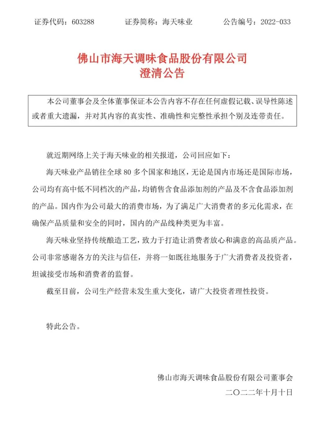 ■华为大佬突然离世!背后藏着一个机密财产 ■王一博背后的女人贫苦了!疯狂烧钱之后,还能撑多久? 泉源 | 深蓝财经 撰文 | 吴瑞馨 对于海天来说,这个国庆假期过的是真的糟心。 整个国庆期间,海天味业陷入添加剂“国表里双标” 的争议之中,面临网上此起彼伏的舆情,海天味业连续发布两则声明,表现全部产物中食品添加剂的利用及其标识均符合我国干系尺度法规要求。(深蓝财经此前曾发布《海天酱油“中外双标”背后:是酱油尺度草拟人,市值蒸发超3000亿》、《海天再回应“双标”,中国调协支持追究造谣者责任!两者关系很深》两篇文章,对此事举行跟踪,点击回顾前情) 10月9日晚间,海天味业(603288.SH)也发布澄清公告,再次对“双标”一事举行回应:无论国内市场还是国际市场,都贩卖含食品添加剂的产物及不含食品添加剂的产物。 和最初第一则声明相比,这次的澄清公告直接回应的舆情争议的焦点,但本日的股市,却仍然没给海天味业一个“好心情”。 本日上午,海天味业开盘大跌近8%之后连续下跌,跌幅在9%上下浮动。最新总市值为3483.3亿元,市值较开盘时蒸发了300多亿元。 而同为调味品股的千禾味业、莲花康健却相继涨停。 股民没担当海天的澄清阐明,用脚投票。另一方面,网友也在反抗海天。有的网友说要换掉自家的海天酱油,尚有的网友称,幸好早就不吃海天了,有的以致把家里的海天酱油倒进下水道...... 但究竟上,即便云云,你大概仍然逃不外海天酱油。 1 “有火食的地方就有海天” 海天味业的官网曾经有句广告词:有火食的地方就有海天。 这句话并不是浮夸本领,而是纪实文学。 海天味业是国内调味操行业的龙头企业。据其2021年年报称,海天味业整年酱油产量265万吨,贩卖量为266万吨,产销量连续二十五年稳居天下第一,并遥遥领先,品种覆盖高中低各个条理、各种口胃和多种烹调用途。 而这一年,中国的酱油产量为788.15万吨,出口量为18.34万吨。也就是说,仅海天生产的酱油,就占中国2021年整年酱油产量的三成以上。而这还不包罗海天味业外洋的贩卖环境。据海天味业官方表现,如今公司产物已经出口环球80多个国家和地区。 别的,据东兴证券干系研报表现,2020年,国内酱油市场中,海天的市占率高达17.7%。固然看起来貌似并不是很高,但必要知道的是,我国酱油市场会合度较低,17.7%的市场率已经是行业第一了。是第二名中炬高新的4.7倍,是第三名李锦记的6.1倍,是千禾的11.8倍...... 云云来看,市占率遥遥领先其他品牌的海天味业,在街匦露畴毫无疑问是绝对的龙头。 海天味业的产物还不止是酱油而已,耗油、调味酱也同样产量巨大。年报表现,海天耗油是海天味业的第二大单品,总产量达96万吨;海天调味酱也是处于领先职位,总产量达30万吨。 有网友大概不平了,市占率高怎么了,我不买不就行了。 那只能说太灵活了。 中国酱油市场三大消耗渠道分别为餐饮、家庭消耗、食品加工,此中可以自动选择的家庭消耗只占了30%,别的70%只能被动消耗。也就是说,就算消耗者主观上不选择海天酱油,但是在外堂食、点外卖的过程中,都极有大概被动的消耗海天酱油。 而海天味业在餐饮渠道的贩卖占比高达60%左右。据东兴证券研报分析,我国餐饮业的发展告急由餐饮连锁化以及外卖所推动,企业更器重调味品的普适性和性价比,也更倾向于一站式购买。而在餐饮渠道,海天味业的职位难以被撼动。 △商用大桶海天耗油 更绝的是,海天以致还和新东方厨师烹调学校告竣互助,学校讲授利用的产物全都来海天,这也意味着,从学校造就出的浩繁厨师们,也风俗于利用海天的产物,毕业后,这些厨师分散到天下各地的餐馆工作,也将利用的海天产物,带向各地的餐饮界,喂进各地消耗者的嘴里。 据新东方烹调学校统计,如今,学校已经造就出了高出60万名厨师。 “有人之处,就有海天”。在消耗者不知不觉的时间,海天已经遍布人们生存的角落了。 2 卖酱油卖出千亿富豪 民以食为天。而要食之有味,调味品必不可少。油盐酱醋均是可以抗周期的消耗必须品。而在资源市场上,调味品股也是备受股民关注的白马股。 自海天味业2014年上市以来,其股价就不绝走高。尤其是2020年,在消耗股涨势惊人的配景下,海天味业股价从2020年年初的68元左右暴涨至年末的153元左右,涨幅高出125%。也因此,海天味业在资源市场上有了“酱油茅”的称谓。 2020年8月,海天味业市值一度到达5300多亿元,高出万科和中国石化,在A股市场中市值排名第12位。 彼时有股民讥讽万科,“卖房的比不外卖酱油的?”郁亮则回应:“我是服气的!” 但在40年前,海天味业也不外是佛山地区一家由25家古酱园归并重组的酱油厂而已,贩卖范围始终还是在广东一带。如今,海天却把酱油卖到天下以致天下,其乐成离不开一个人,海天味业如今的掌舵人,庞康。 1982年,大学刚毕业,26岁的庞康被调到了海天味业的前身,佛山市珠江酱油厂,担当副厂长。1988年,酱油厂改制后,海天变成了一家民营企业,积极研讨业务的庞康历任海天味业副总司理、总司理等职务,终极提升为公司的董事长兼总司理。 掌舵海天后,庞康主张规模化和专业化生产,在上个世纪90年代,庞康就耗费3000万元引进国外先辈的生产线;2003年,又从德国引进国内第一条全自动包装生产线;2005年,他又投资10亿元,建成了年产量超100万吨的海天高明生产基地。2008年,海天