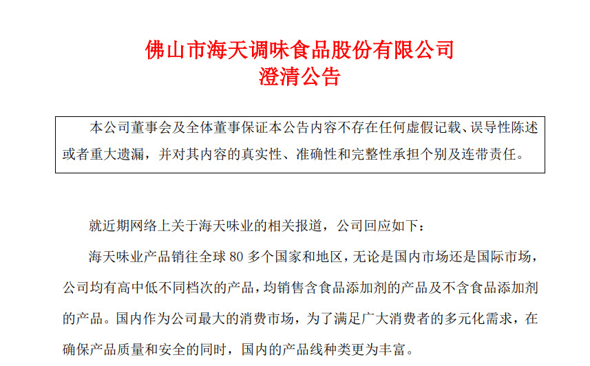 择要:“双标”添加剂风波连续(接待关注闺蜜财经) 撰文|蜜姐&编辑|凯 这是@闺蜜财经的第1141篇原创 海天味业又又又澄清了。 10月9日晚,海天味业发布澄清公告,针对近期被舆论热议的“双标”及食品添加剂标题再次回应。9月30日、10月4日,海天味业也分别举行了回应,但舆论却是越吵越凶。 海天味业从在交际平台发声,转而以上市公司名义发公告,可见此事的影响之大。 故意思的是,在“双标”风波连续的环境下,克制本日(10月10日收盘),有酱油公司股价当天涨幅超10%,而海天味业当天跌了9.35%,一天市值蒸发超300亿元。 反差的背后,市场和投资者除了思量“双标”风波的影响外,恐怕也有着对“酱油茅”本身的担心:市盈率比贵州茅台还高,相比客岁1月其股价高点靠近215元/股,如今的回撤幅度超65%,跌到位了吗?上涨的空间在那里? 01 此次风波因由在国庆节前。 在某交际平台上,有人发布了关于酱油产物的食品添加剂及国表里产物标准不一的内容,引发热议。之后不停有媒体及自媒体跟进关注该话题,舆论发酵。 9月30日,海天味业官方微博发布《严正声明》,称部门视频账号“妖魔化食品添加剂,黑化中国食品安全”,回应海天味业的产物严格按照《食品安全法》生产;全部产物中的食品添加剂使用及标识符合国家标准;并将追责恶意造谣者、流传者。 然而,这份声明并未平息大众的关注和讨论。 10月4日,海天味业再发《中国品牌企业的责任、继承与号令》,回应了所谓“双标”的标题,并表现自家的产物大多高于国家标准。 海天味业的本意是澄清究竟和科普下食品添加剂的标题,但说教的倔强语气和主动代表中国品牌企业的姿态,引发了更多网友吐槽。 有人乃至表现,本身会继续买海天的产物,但无法继承其公关团队的态度和处置惩罚方式。 10月5日,中国调味品协会发声明称,支持因舆情受到影响的调味品企业依法维权。这份声明未提及企业名字,但也不言而明。 不外,对于处于舆论风暴中心的海天味业而言,此举大概没多少资助,更像是“推波助澜”,有网友直接质疑“协会是否长处相干”? 舆论热议居高不下,这才有了昨晚以上市公司名义发公告的后续。相比此前交际平台的声明,公司的公告则理性平和,回应了其国表里贩卖产物都存在含食品添加剂、不含食品添加剂产物,并表现“坦诚继承市场和消耗者的监视”。 02 只管公告提示投资者理性投资,“克制如今,公司生产筹谋未发生巨大变革”,但这一“防备针”也未能起效,克制10月10日收盘,当天海天味业市值蒸发超300亿元。 客观来看,此次网友们的热媾和团体“打酱油”,反应了消耗者食品安全意识的广泛提拔,只管对于食品添加剂的恐慌没须要,但也确实起到了全民科普和对企业的监视作用。 而对于投资者和投资市场的反应,一方面是感情使然,一方面依然是对酱油茅存在担心。 海天味业的前身是一家国企,1994年搞了产权结构改革,2014年上市,发行价51.25元/股。 上市后的海天味业,踏上了造富之路,不但是企业、大股东,小股东们也劳绩颇丰。 2015年海天味业的董事长庞康初次登上了新财产500富人榜,排名第71位。到2020年,庞康在该榜单上已跃升至第18位!5年上升了53位。 2019年,海天味业的程雪、庞康同时上榜新财产《2018—2019年财产最快发展50人》榜单,分别排名第29和第30位,财产同比增长高达27.9%和27.8%。 海天味业上市6年,市值翻了10倍之多!市盈率超贵州茅台,是妥妥的“酱油茅”。2014—2021年,其累计分红高达191.40亿元。 然而对比上市以来的业绩增速,则不禁让人迷惑,海天味业的业绩能撑得起云云高的估值吗? 即便是履历了客岁到本年的大幅回撤(超65%),克制10月10日收盘,海天味业的市盈率为51.84倍,贵州茅台为38.95倍,估值仍然高于后者。 然而,2014年—2021年,海天味业的营收增长仅1.5倍,净利润增长仅2.2倍。 图片泉源|东方财产(特此感谢!) 2014—2020年,海天味业的营收同比增速在10.31%—17.06%之间,同期其归属净利润同比增速在13.29%—30.12%。 2021年,其营收和归属净利润增速降落较为显着,分别为同比增长9.71%和4.18%。现实上从2017—2020年,这两项增速均在连续迟钝下滑。 03 相比食品饮料公司匀称市盈率20-35倍,海天味业可谓是佼佼不群。比年来,关于其估值是否过高的质疑之声从未克制。但看好海天味业的机构和投资者依然浩繁。 据东方财产Choice金融终端数据表现,克制本年二季度,475只基金持有海天味业,持有总市值约97亿元,占总市值比重为2.5%。 海天味业的上风概括来说,重要凸显在如下几方面: 具有肯定的品牌代价;渠道上风:2020年财报披露,海天味业的贩卖网络覆盖天下31个省级行政地区,320多个地级市,2000多个县份市场,并出口环球80多个国家和地区;产能使用率高:2021年财报表现,海天味业公司团体产能使用率保持在95%以上,同年产销量分别为430万吨和433.5万吨。 加之海天味业线下渠道重要是餐饮和商超,相对业务量大也较为稳固,且回款政策较为强势等,海天味业的市占率进一步提拔。 凯度消耗者指数《2022 品牌足迹》中国市场陈诉表现,海天味业以6.17亿消耗者触及数、79.2%的排泄率,排名中国快速消耗品品牌第4位。 值得注意的是,比年来海天味业的一些新变革,比如毛利率下滑,增收不增利等。 2021年,海天味业的酱油、调味剂和耗油产物毛利率分别同比下滑4.47%、4.68%和0.75%,团体毛利率同比降落3.73个百分点