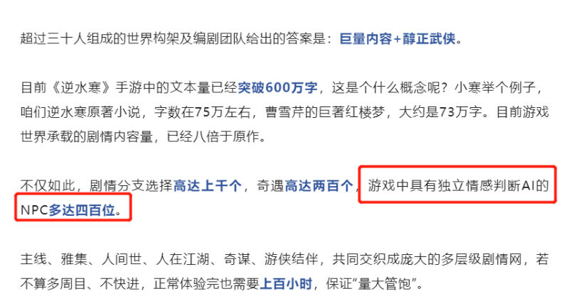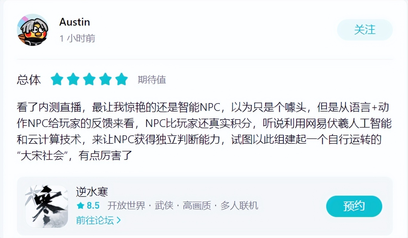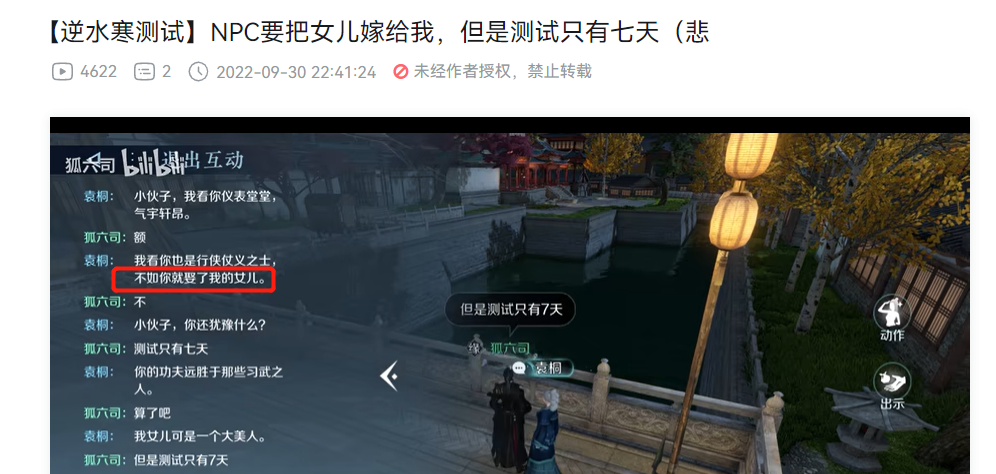 2022年对你来说代表什么?对于无数画师朋侪来说,它已经被赋予了“AI作画元年”的称呼。前几个月,尚有很多人讽刺AI作画程度像是“人工智障”。由于AI的明白角度比力枯燥,根本上只会围绕关键字天生内容,没有本身的思考。 结果如今AI在各种升级下,画画程度越来越高,已经可以或许赶上真人的水准了。如今的AI画作,除了可以或许做艺术绘图、搞出靠近于商单的内容之外,还可以或许准确天生各人都喜好的二次元图片。让人惊奇的是,AI程度提拔也就是这几个月的事变。 除了感叹一下以后想看悦目的图可以不消求大手子这种表象之外,AI绘画的爆红也让人们很难不注意到,人工智能堪称可怕的学习本领和算力,还能应用在哪些场景。国内的游戏行业在这方面也是给出了非常精彩的结果——网易旗下的开放天下武侠游戏《逆水寒》手游,就在国庆期间的首测里给广大玩家们展示了AI在开放天卑鄙戏里,叙事、氛围、互动等三个场景上的惊人结果,从这次首测,Tap、B站等各种玩家社区的反馈来看,《逆水寒》手游的AI表现已经相当精彩。 简单来说,按照现在游戏已经破万万的预约量来估算,当游戏正式上线时,很大概带给玩家一万万个差异走向的故事,叙事本领相当强大。 比如有些玩家在首测里做“大恶人”,攻击NPC,大概偷窃他们的财帛,得到的反应就黑白常嫌弃。以致放火烧人时,NPC也会落荒而逃,互动非常丰富。 但假如玩家表现的人畜无害,就能劳绩NPC们的善意以待。连玩家不鉴戒跑到水里都会为玩家的人身安全担心。这点大大增长了游戏里的沉醉感和氛围。 以致当玩家和NPC们充实相识以后,还能和他们直接开启打字谈天模式。在这个机制里,NPC的反应更是超乎想象。比如有位玩家就由于和NPC关系相处的好,以至于对方直接把女儿许配给玩家了,看来要不是测试时间只有七天,这位玩家还能劳绩一段不测的感情。 与之相对的,有玩家刻意骚扰NPC,结果被NPC吐槽有病,就像是真实天下里的对话那样自然。 以致撩妹过程中,还会有路人过来吐槽玩家。 不外这不代表全部NPC都对玩家冷眼相看,比如下面你这位玩家走在路上碰到NPC,玩家说本身受伤了,而对方发起送他回堆栈,感觉有个爱情故事正在举行时。 看到这里你大概以为,差异台词,差异反应,这不就是脚本吗?实在还真不这么简单。游戏对于NPC的智能方面非常器重,游戏里有400位NPC配备了专门的智能AI,而且听说是通过了“图灵测试”的级别,这些NPC拥有独立的感情判定,不管是哭是笑,完全看玩家在游戏里的反应。 而之以是能让NPC“活起来”,有别于其他游戏脚本设定的传统NPC,起首得归功于网易自家的“伏羲”人工智能。从本年中期的一些科技媒体报道来看,人工智能不但能实现互动玩法,还能充当助手、客服,以致还能在美术动作方面帮大忙。 要知道,用上了人工智能的“捷径”不但能加强NPC的互动。还可以很大程度上增补开放天卑鄙戏开辟任务冗杂,大量斲丧人力资源的题目,可以让这款号称投入7亿研发资金的游戏,把更多人和时间放在开辟丰富内容上,游戏品格有了很大包管。 别的,开放天卑鄙戏的魅力,在于玩家差异的反应就有差异的感触,《逆水寒》手游的天下里有包罗气候、NPC作息、差异的出身等复杂设定,每个玩家打仗到的NPC大概都不一样,这么多位NPC带来的蝴蝶效应,自然可以给每个玩家代入截然差异的故事体验,再加上官方写了富足的剧情选择,差异分支都能衍生出差异故事,一万万个差异故事也是大概出现的。 更何况,在早先几年的《逆水寒》同名端游,以及主打爱情的《遇见逆水寒》等游戏里,网易已经熟练地应用了NPC对话的体系。在端游,玩家可以领养人工智能小宝宝,在《遇见逆水寒》则可以和NPC沟通和爱情,有这种踏实的根本,自然能做收支迷入化的作品。 看到这里,各人对于《逆水寒》手游精彩的人工智能体系有什么样的看法呢?接待在品评区留下你的想法哦。 |