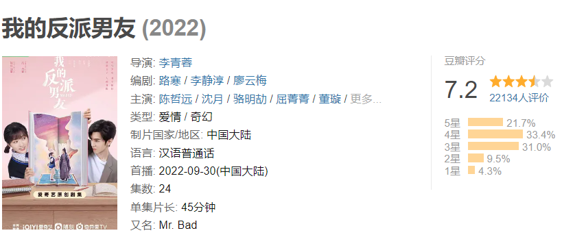 一个帅,一个甜。 身高差戳到观众的少女心。 男友力MAX。 女友力同样MAX。 《我的反派男友》初开播时,大部门网友并不在意,待到大了局时,却有不少网友却直呼“嗑疯了”,热度低开高走,豆瓣直接拿到7.2分。 不要小瞧这个7.2,网友对现言国剧打分一直克制。 本年度现言黑马《一闪一闪亮星星》与热度颇高的《两个人的小森森》,以及三年前的现言爆款《酷爱的,热爱的》,都没能迈入7分大关。 7.2分已经是2022如今已播现言甜宠里的第一位,《我的反派男友》拿到这个效果委实稀有,七话带着好奇一口吻刷完全集后,也冷静给出高分好评。 客观来说,这部剧如果宣发给力点,完全有时机博一博爆款坑位。 甜宠的部门,养眼又撩人。 七话曾总结过甜宠剧发糖套路:壁咚、KISS、不测拥抱,十部甜宠剧里至少有9部能包圆这些招术,编剧们屡试不爽,但效果却南北极分化。 失败的甜宠中这些套路通常能撩到脚色却撩不动观众,乐成的甜宠却能在脚色还未产生火花时便靠这些套路勾出观众的姨母心,甜蜜气味挡都挡不住。 两者之间的区别,通常由演员的CP感与画面氛围感决定,简单来说就是想让套路得民气,须要视觉与情绪触动都富足有张力,否则再好的招术也白搭。 《我的反派男友》在这方面便是选手级的存在,沈月搭配陈哲远,一个娇小甜蜜,一个高大帅气,反差萌GET,养眼度GET,同框酷似言情画报。 CP感顺势而来,偶然候,作品选角乐成,便能拿到观众承认的捷径。 脚色并没有刻意给观众发糖,乃至男女主前期并没有产生爱情火花,却总能不经意间让观众化身尖叫鸡,一个撩而不自知,一个自带玛丽苏泡泡。 傲娇男主顺手一个“戏弄”,对当事人来说只是顺其天然的操纵,大概不经意的动作,对观众来说,却如一个小钩子,暗戳戳地搅动粉红氛围。 再颠末与甜妹沈月的碰撞,氛围感瞬间被拉感,是熟悉的爱情酸臭(甜蜜)味没跑了,养眼又有氛围感的甜宠CP,又有谁能拒绝的了呢? 爱情火花够足,甜蜜氛围够有感染力,这是《我的反派男友》乐成的根本,但这部剧能脱颖而出,不光是爱情戏够撩,还因脑洞与逻辑够新奇、踏实。 与“纸片人”谈爱情?焦点设定很带感。 在《我的反派男友》中,女主南星是爱写小说的运动少女,男主萧无名是她笔下的大反派,放在小说界,两人的关系是“妈妈”与她的“大儿”。 熟悉写文梗的观众看到如许的组合便已经忍俊不禁,编剧更深谙此道,给两人操持了不少逗趣的台词,好比女主用人物关系“安慰”男主。 当事人很端庄,男主一脸懵,观众要笑喷。 当“妈妈”面临本身设定的“纸片人”却要被拿捏时,更让人捧腹,作者写文时有多爽,实际中过招就有多悔恨,恨不得把“儿子”塞归去回炉重造。 人类与“纸片人”怎样走感情线?要加点轻神话色彩。 为了满意南星想拥有一段“铭肌镂骨的爱情”愿望,非主流仙子(王自健饰)灵机一动,选中了最恰当南星的男子——她笔下的脚色萧无名。 小说中让人闻风丧胆的大反派,就这么掉落实际天下。 与过往古穿今作品主角一时间难以恰当当代生存差别,萧无名拥有南星为他设定的智慧、狡猾性格,险些瞬间便反客为主,不动声色的套取了各类信息。 然后,他悲催地发现本身的出现是由于南星。 想要回到本身天下,似乎要为南星完成“一段铭肌镂骨的爱情”愿望,他不得不化身红娘为南星物色爱情人选,过程中男女主频仍过招,笑点相称麋集。 调皮大反派与元气少女啼笑皆非的拉扯就这么开始了,整个故事不入俗套,编剧的脑洞经常让观众迎来意料之外的惊喜,不由得上头追剧。 言情是最易产出脚本的题材,却也是最难写出希奇感的题材,由于大热过的套路险些都有热门代表作存在,拾人牙慧很轻易让观众审美疲劳。 想要作品乐成,创意至关告急,爆款网剧《传统中的陈芊芊》便是凭创意博得喝采,《我的反派男友》同样云云,好的创意,观众永久不会忽略。 流通的故事,逻辑线不让观众扫兴。 “甜宠无逻辑”险些是大部门观众的印象,似乎这个题材只要甜就可以,但人物举动与剧情发展有没有逻辑,都毫无关系吗? 非也,网友经常用“无脑小甜剧”来讥讽,但这之中的“无脑”却不是指脚本无逻辑,而是故事逻辑不须要那么严谨,观众不须要过分用脑来观看。 固然,刻意反通例逻辑的沙雕剧是破例,正常环境下,良好的脚本肯定拥有合格的逻辑线,甜宠故事怎样有流通、缜密的逻辑线支持,也会更加出色。 《我的反派男友》最有诚意的地方,便在于整个故事递进的都很流通,男女主从高兴冤家到相互吸引再到告白、降服困难、HE…… 剧情层层递进,情绪升华天然丝滑,每个节点的操持都很公道,待到大了局,编剧还将前期为女主埋的心结伏笔贯穿起来,美满圆了“穿越梗”。 这个梗七话临时不剧透,没看过的观众不要错过,肯定会让人以为多了一份甜与感动,完全没预推测临到大了局编剧还能加一份与主线自洽的新看点。 整个故事看下来,观众完全能感受到主创团队的朴拙,他们有在用心打磨脚色,人设风趣又有火花,更器重创意发挥与逻辑自洽,每个点都只管分身。 而这些,恰恰是当下许多甜宠剧都短缺的。 许多制作团队把“无脑小甜剧”真正地当成了“无脑”,不恭敬脚本的流通性,也不恭敬观众的智商,经常该有火花的时间没火花,没有粉红的时间强发糖。 乃至,许多脚本还热衷用非常俗套或稚子的方式走剧情,好比强行让本来相