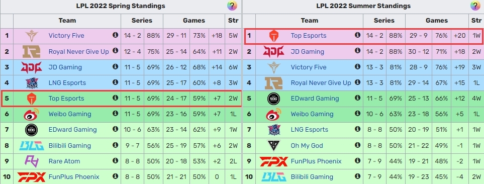 北京时间10月11日,S12举世总决赛小组赛第四日,TES在对阵欧洲LEC一号种子RGE中,败阵下来。 这场角逐TES的上路纳尔成为了RGE的突破口,固然TES在角逐中也有些末节奏,但是TES一波上路抓人让RGE看到时机直接反打,RGE拿到上风妥当运营,终极将TES斩于马下。 回首客岁S11举世总决赛LPL战队,本年的TES竟然与客岁的FPX有诸多相似之处。 起首TES与FPX都有一名打野选手Tian。 FPX和TES都是春季通例赛位列第五、夏季赛通例赛第一。 春季赛、夏季赛输掉决赛屈居亚军 S赛都是夺冠热门 都在天下赛上输给有Beryl的战队 (FPX不敌DK,TES不敌DRX) 都输给RGE |